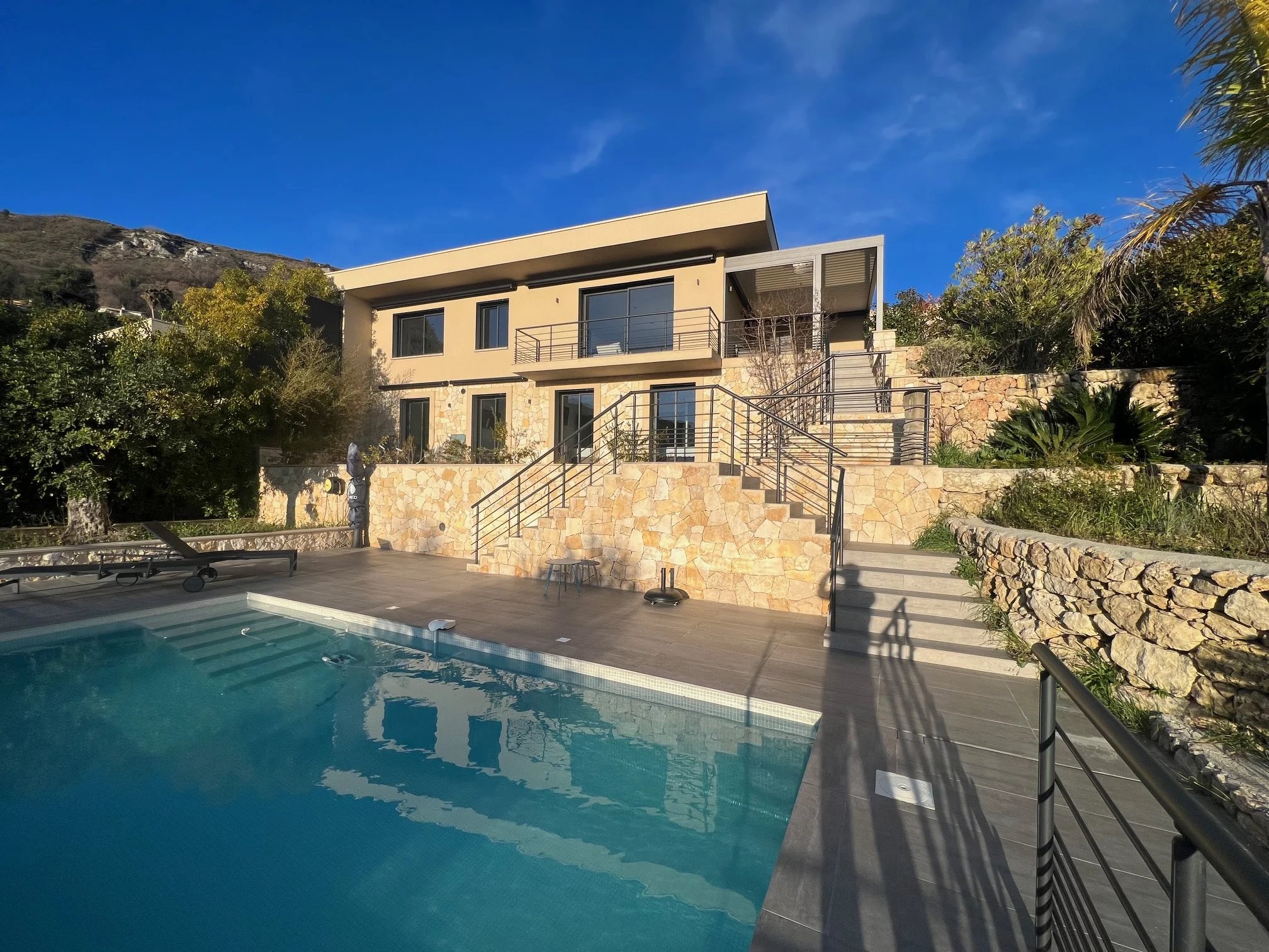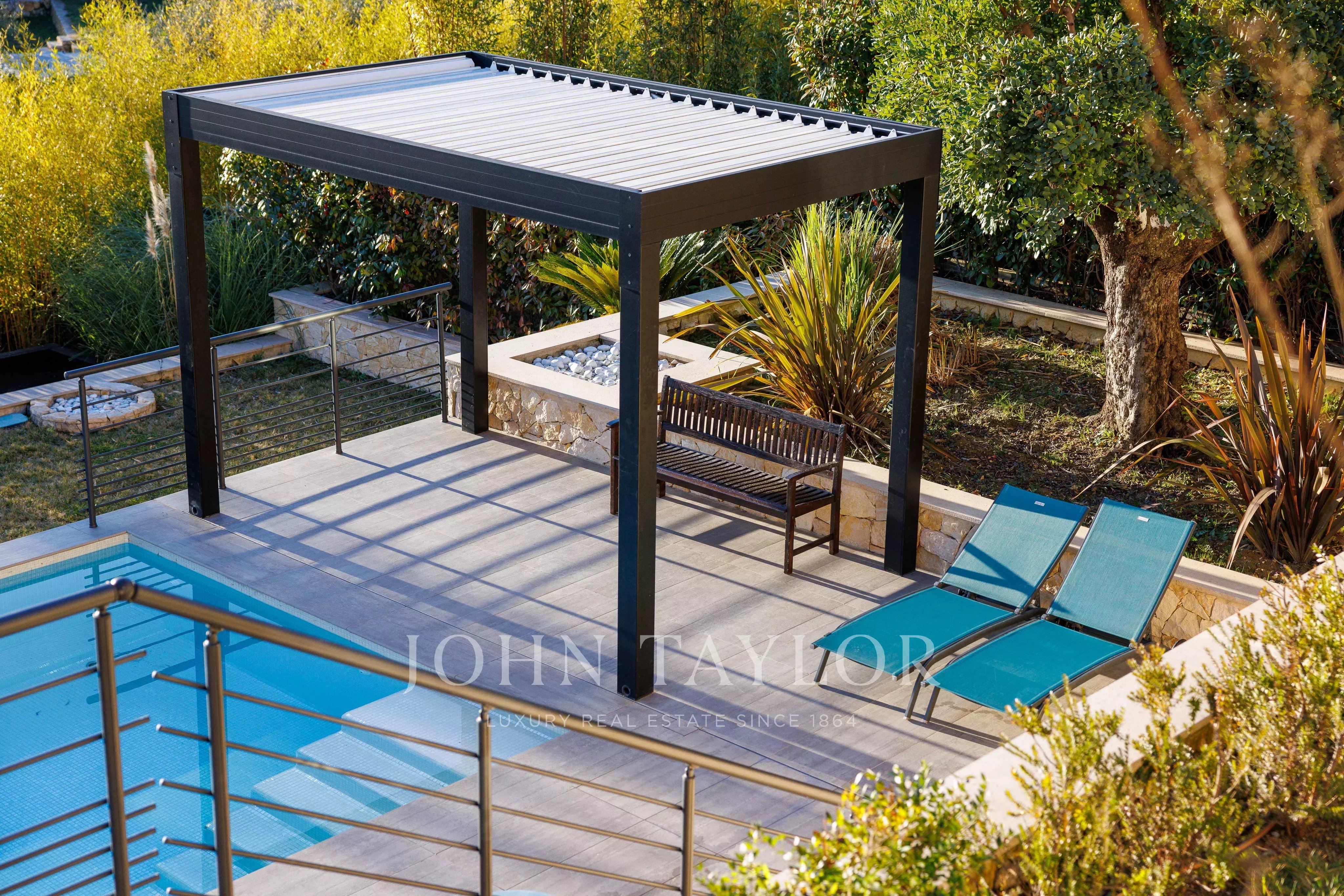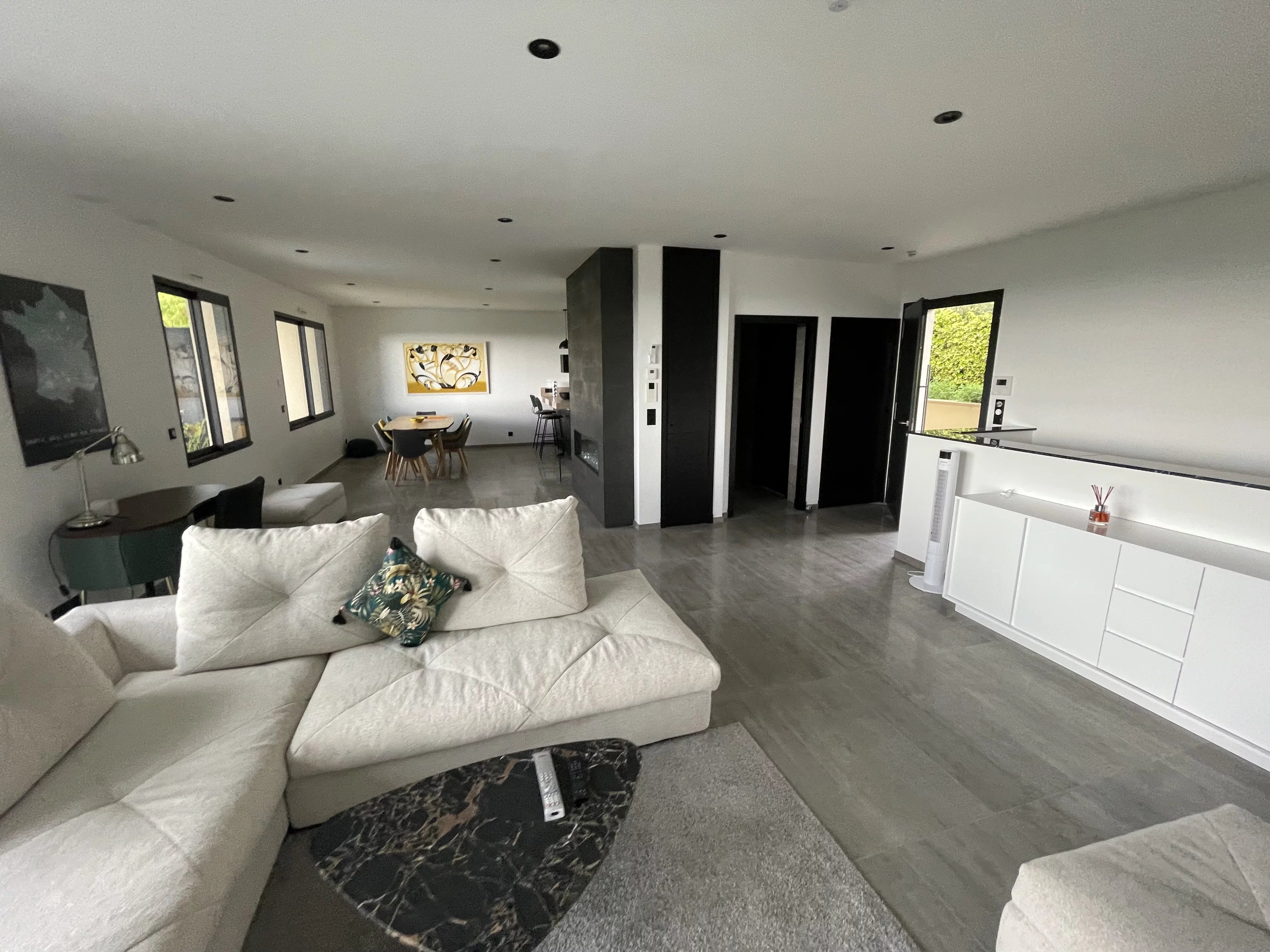 Il tutto con servizi di alta gamma: Riscaldamento a pavimento, aria condizionata reversibile, tutto in pompa di calore, camino elettrico, finestre in alluminio con doppi vetri, tapparelle elettriche centralizzate, allarme, vmc, videocitofonia, fibra ottica, illuminazione a led con dimmer, impianto rj45 in tutta la casa + usb, illuminazione esterna a led, pergola bioclimatica, piscina 7,5x4 con illuminazione a led e riscaldata da una pompa di calore e pergola bioclimatica, scarico di rete, finitura del tetto in alluminio sull'acroterio del tetto per una facciata impeccabile che dura nel tempo, tende da sole elettriche.
