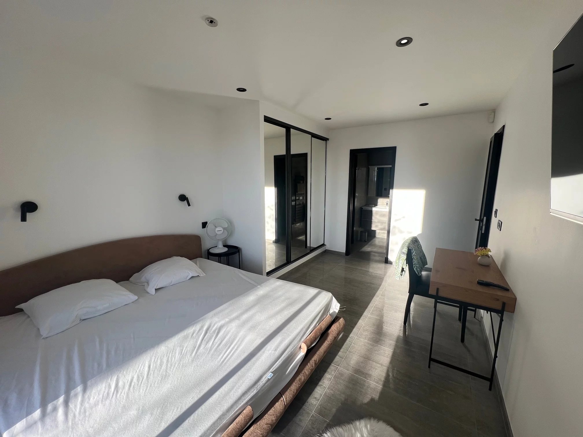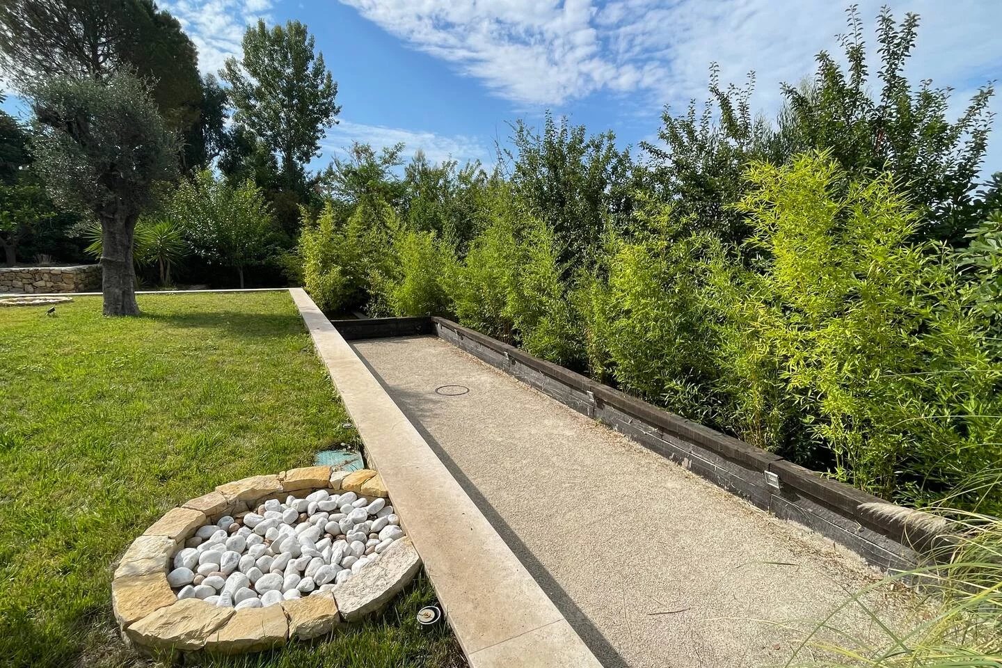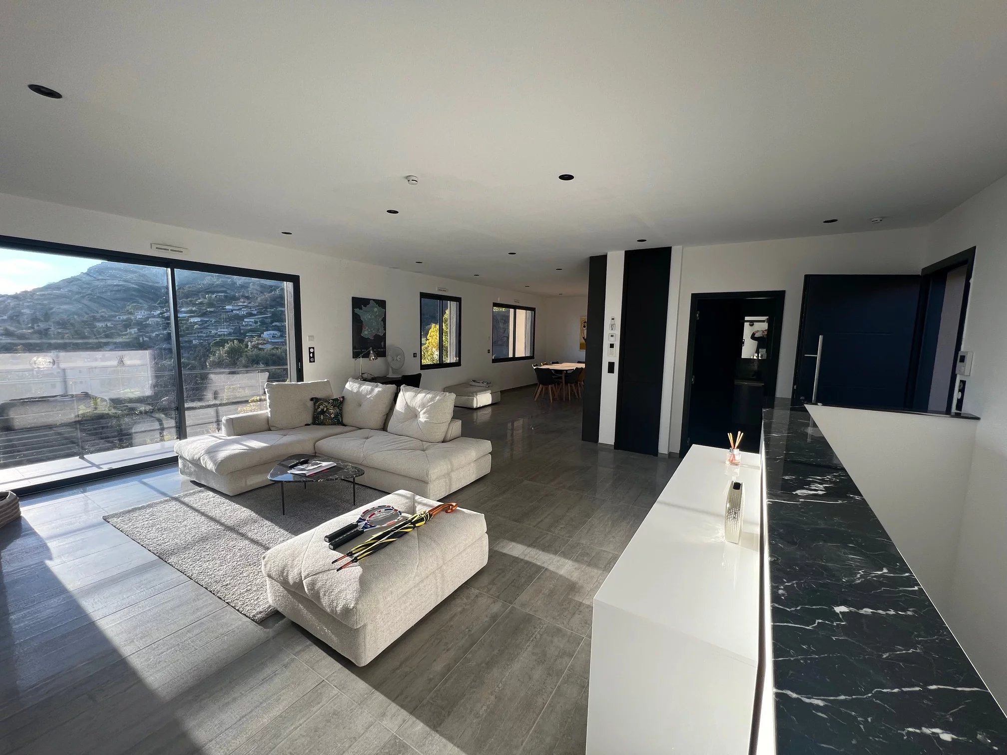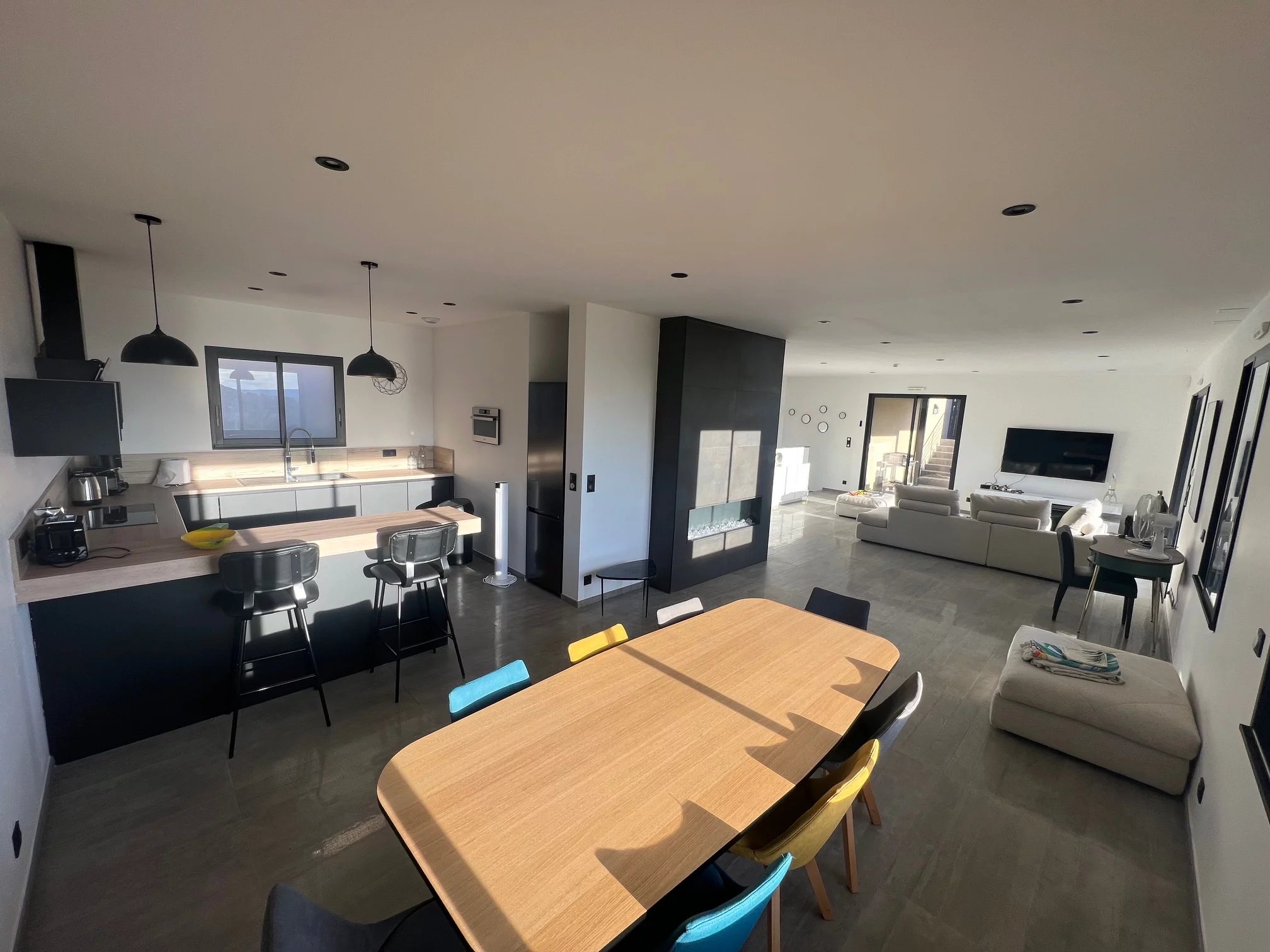 Il tutto con servizi di alta gamma: Riscaldamento a pavimento, aria condizionata reversibile, tutto in pompa di calore, camino elettrico, finestre in alluminio con doppi vetri, tapparelle elettriche centralizzate, allarme, vmc, videocitofonia, fibra ottica, illuminazione a led con dimmer, impianto rj45 in tutta la casa + usb, illuminazione esterna a led, pergola bioclimatica, piscina 7,5x4 con illuminazione a led e riscaldata da una pompa di calore e pergola bioclimatica, scarico di rete, finitura del tetto in alluminio sull'acroterio del tetto per una facciata impeccabile che dura nel tempo, tende da sole elettriche.