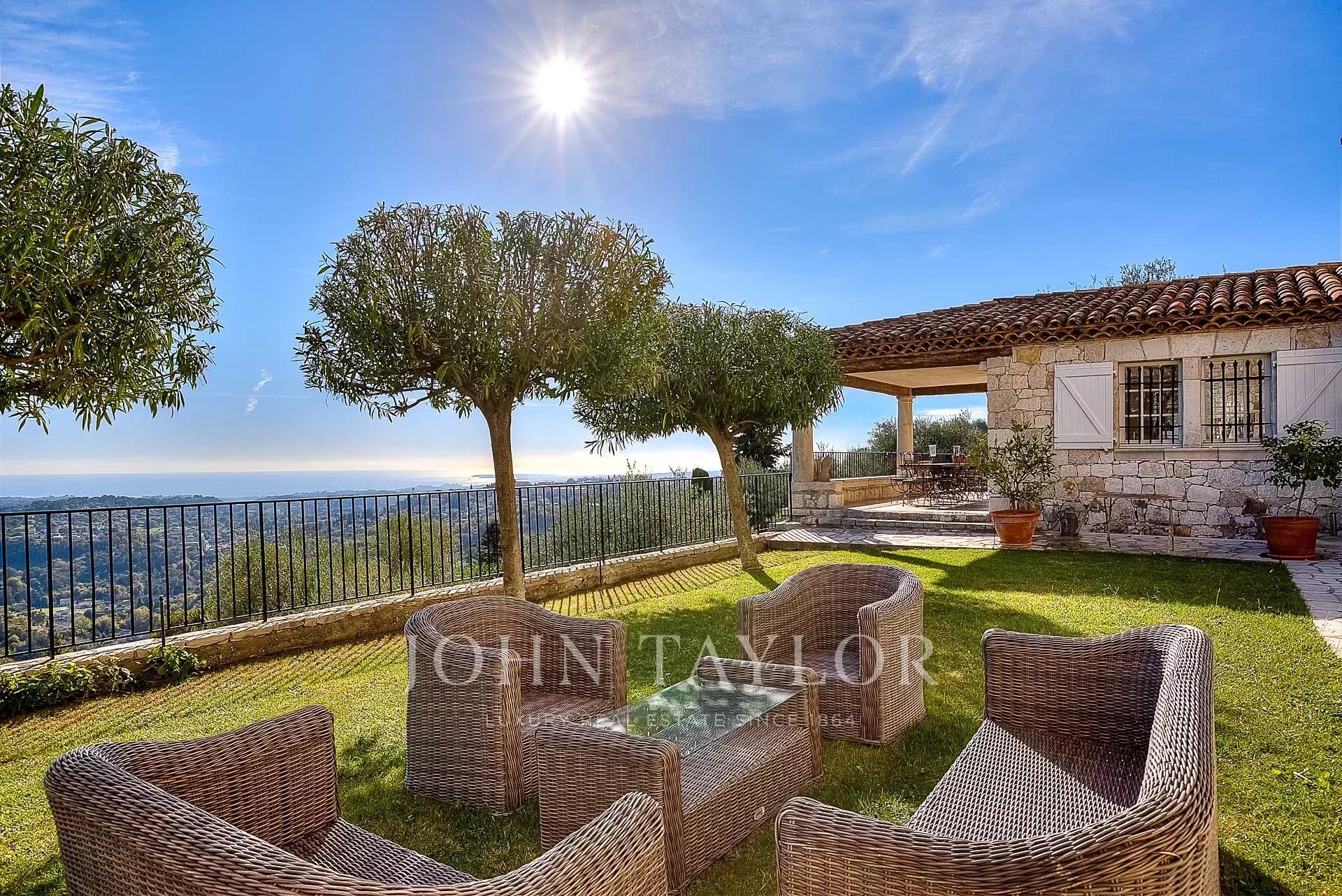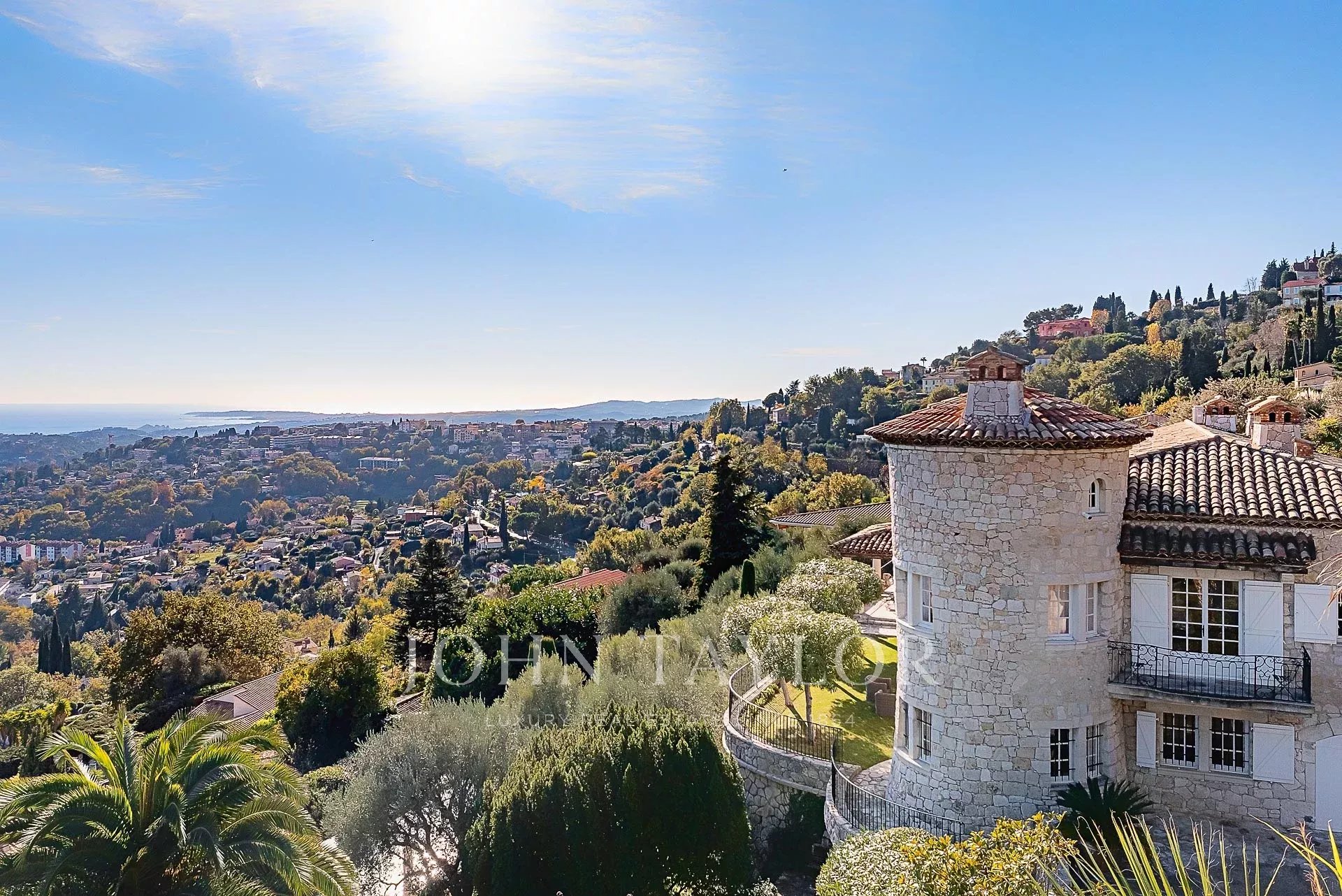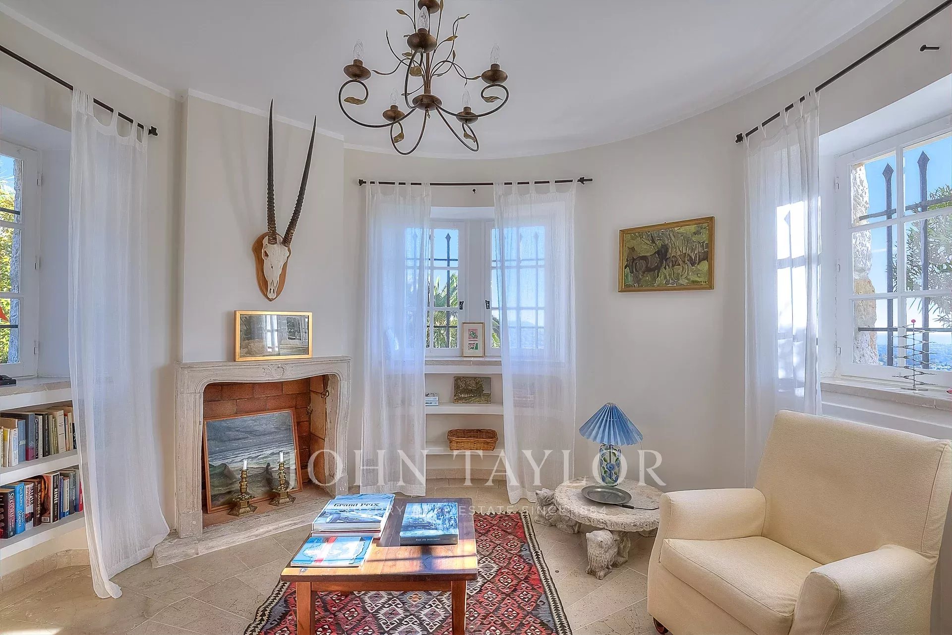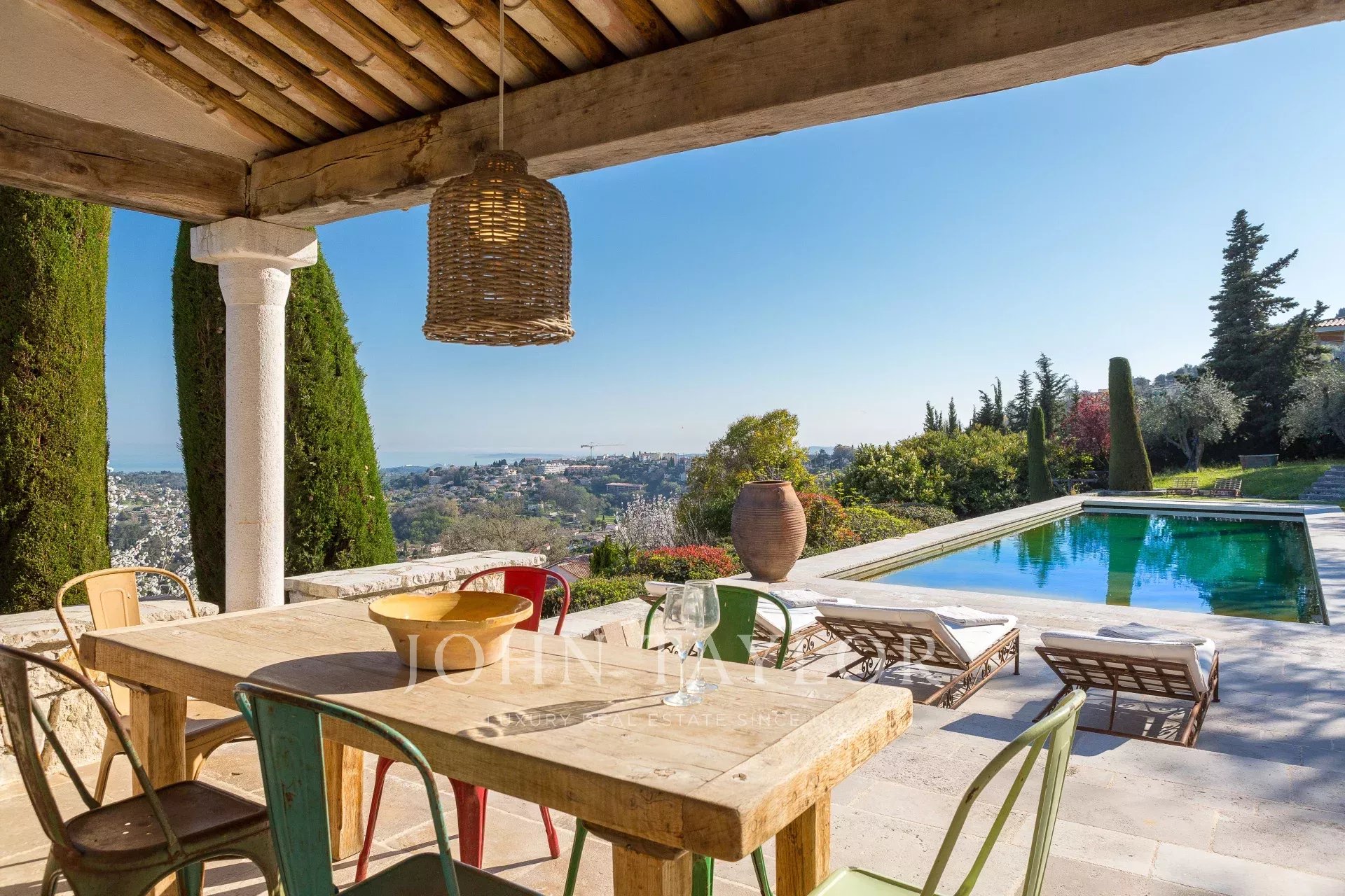 In una zona ricercata con vista sul mare e sul Cap d'Antibes, questa sontuosa residenza in pietra di 600 m² offre ambienti spaziosi e luminosi immersi in 3.950 m² di parco mediterraneo punteggiato di ulivi, con un'enorme piscina a specchio e pool house.