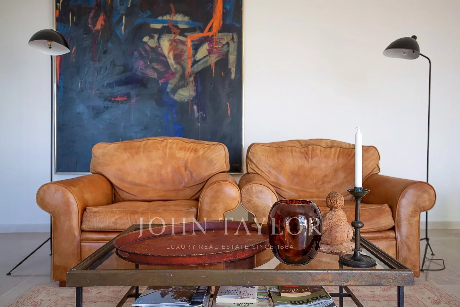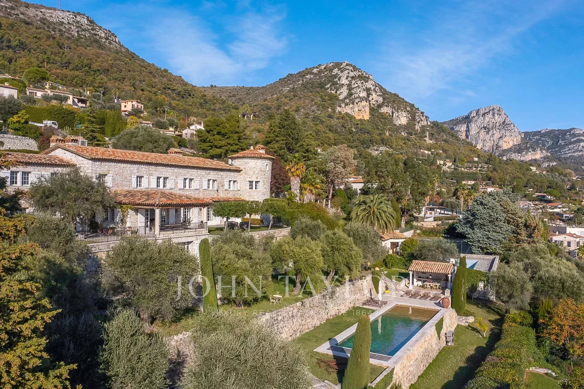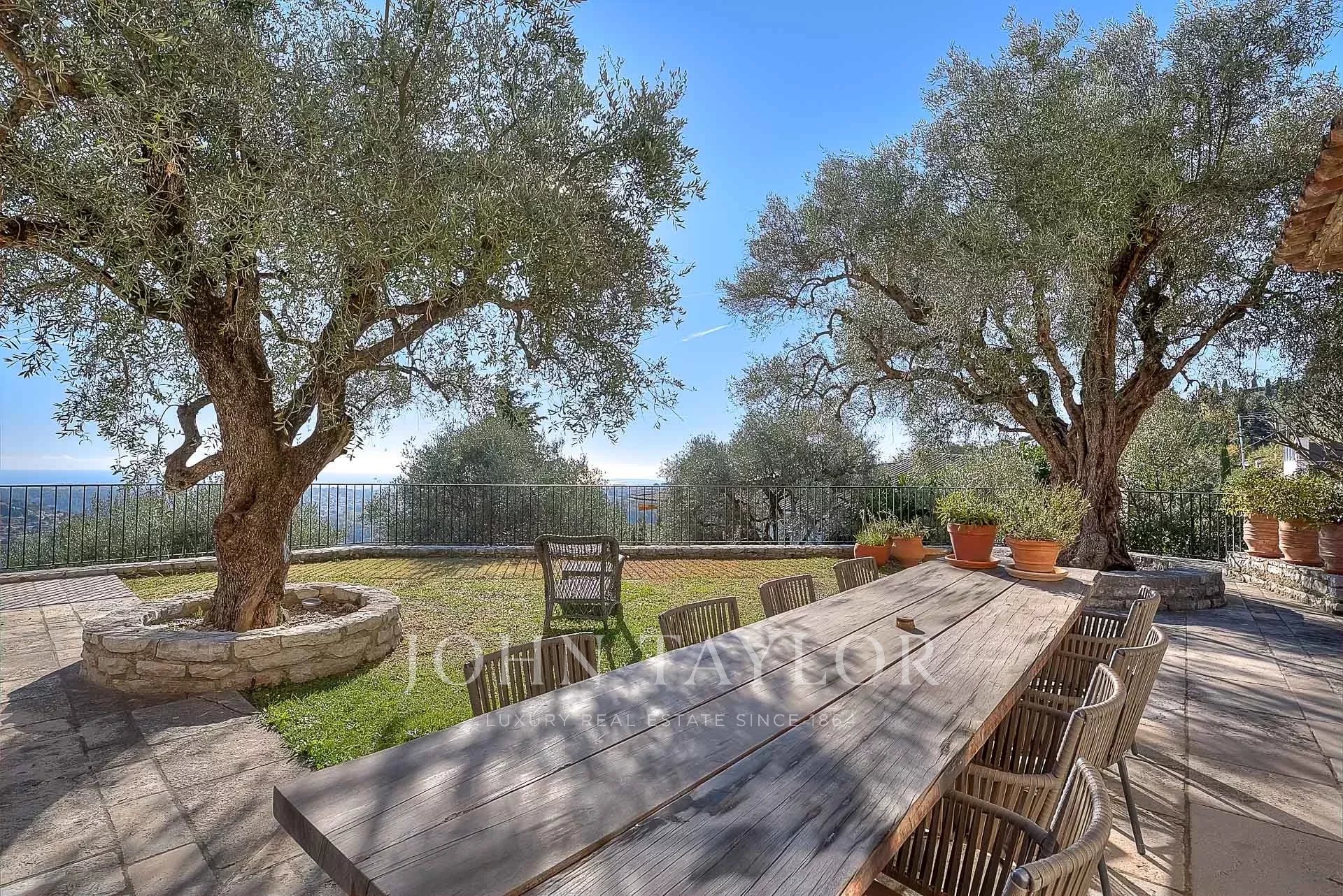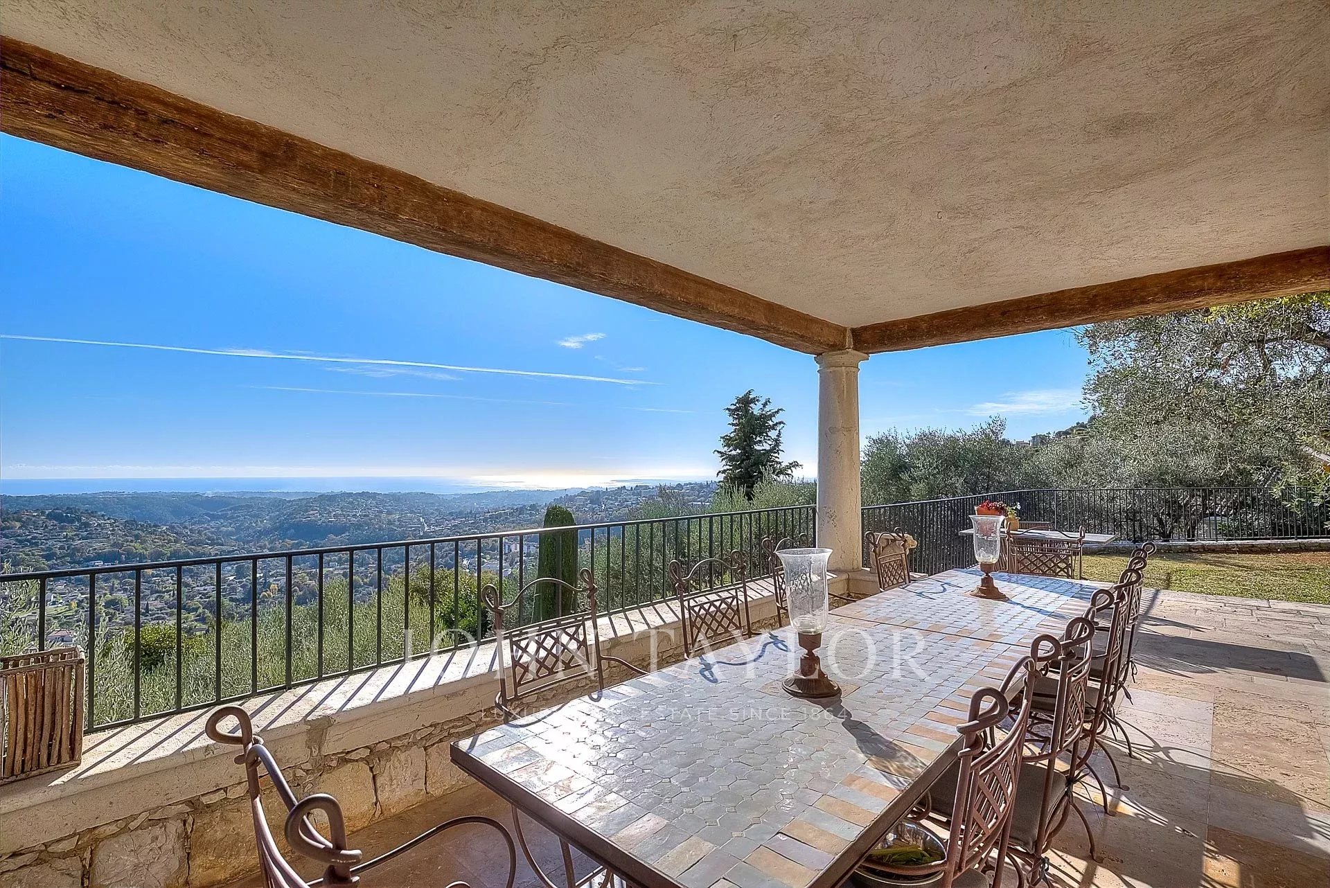 In una zona ricercata con vista sul mare e sul Cap d'Antibes, questa sontuosa residenza in pietra di 600 m² offre ambienti spaziosi e luminosi immersi in 3.950 m² di parco mediterraneo punteggiato di ulivi, con un'enorme piscina a specchio e pool house.
