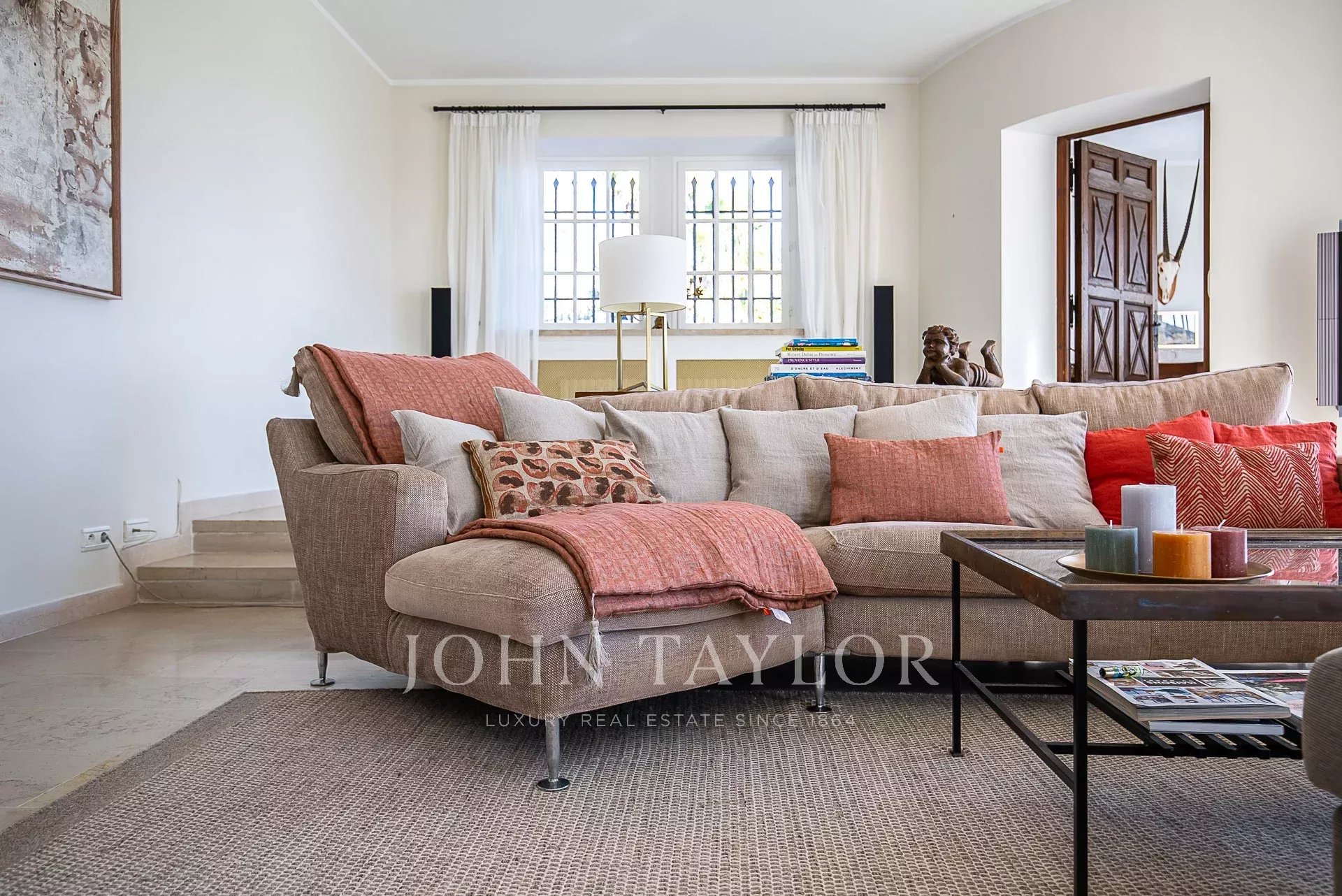 La villa comprende un bellissimo ingresso, un enorme soggiorno con camino, una sala da pranzo, una grande cucina, 6 ampie camere da letto con bagno privato, uno studio e una grande stanza di 60 m² che potrebbe essere convertita in un appartamento indipendente o in una grande sala giochi che si apre su una terrazza nel giardino; lavanderia, 2 cantine, caveau, garage per 10 auto e 6 posti auto aggiuntivi.