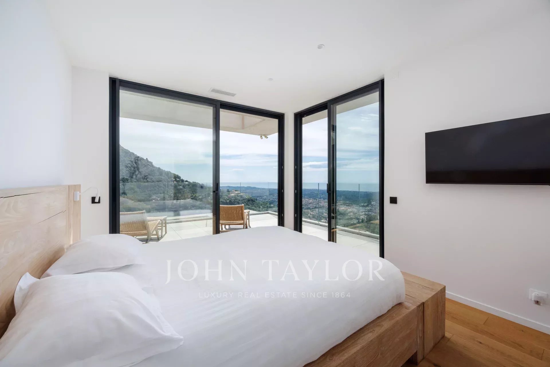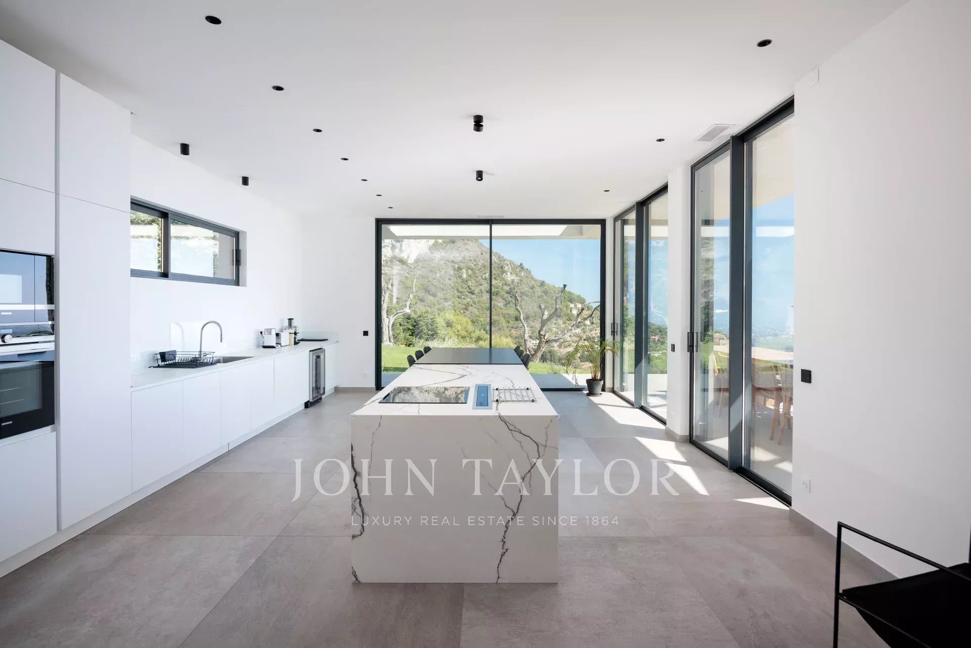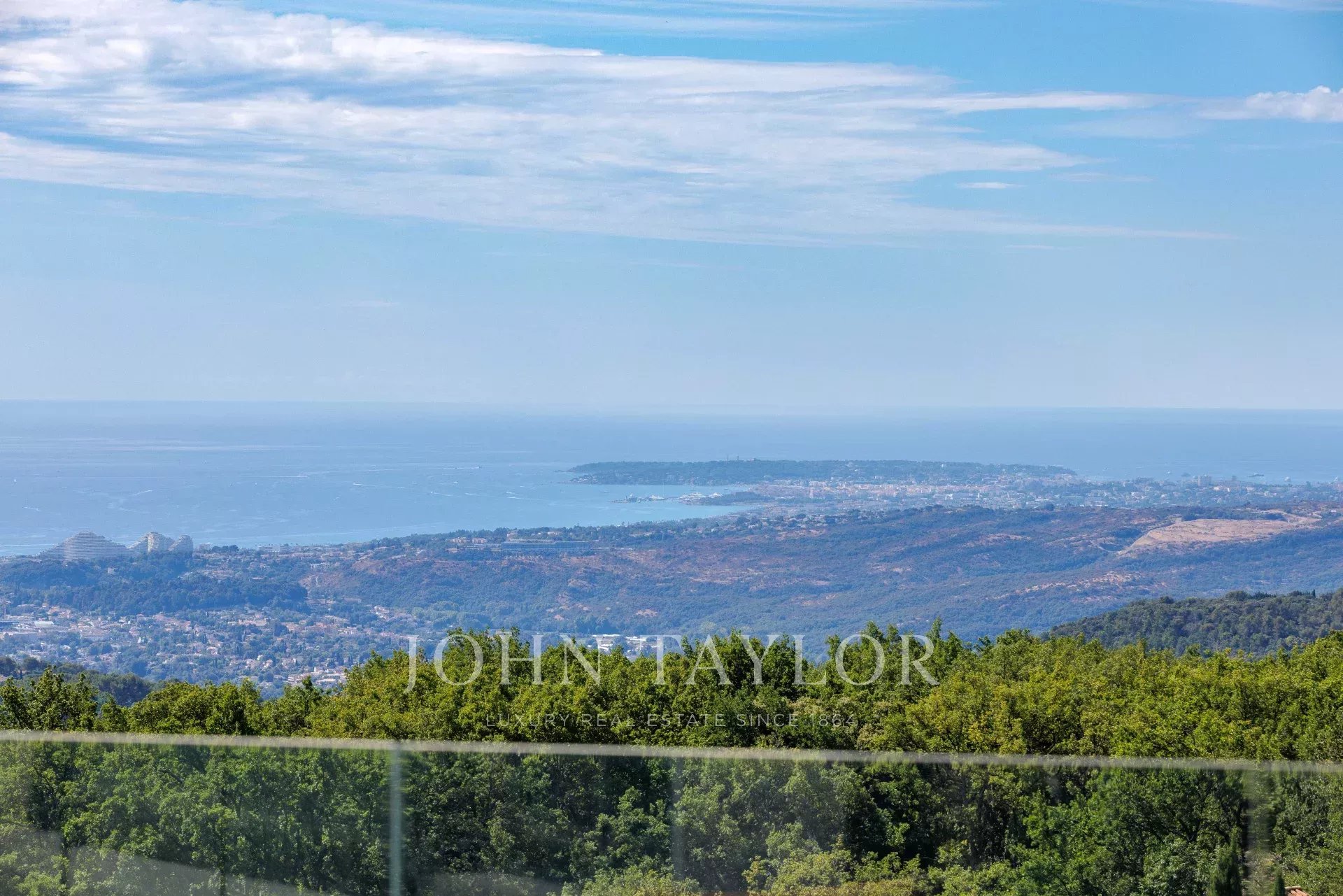 Questa superba villa contemporanea di recente costruzione (355 m²) è situata in posizione ideale sulle colline sopra Vence, nel cuore di 4.000 m² di terreno paesaggistico. Offre un ambiente eccezionale con una vista da cartolina sul mare - da Cap d'Antibes alla Baie des Anges e fino a Cap Ferrat - e sulle montagne circostanti.