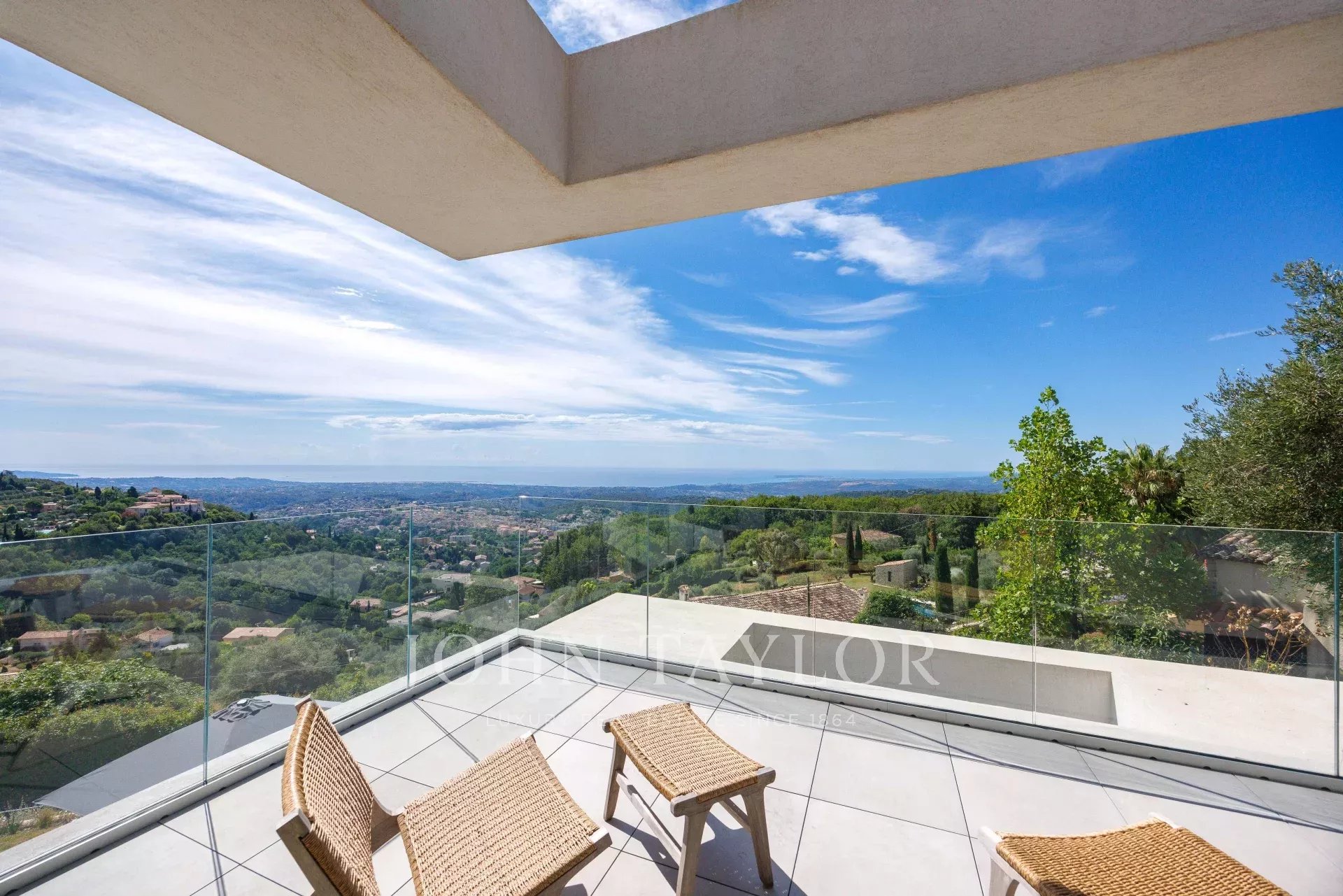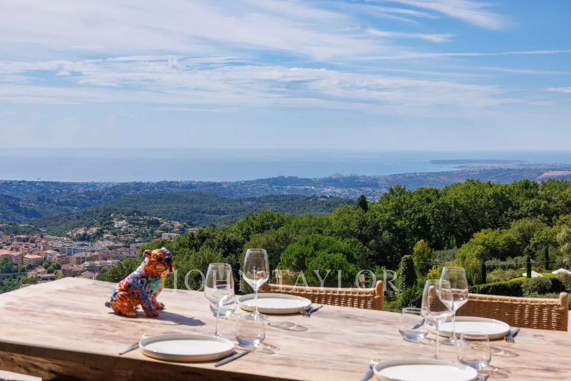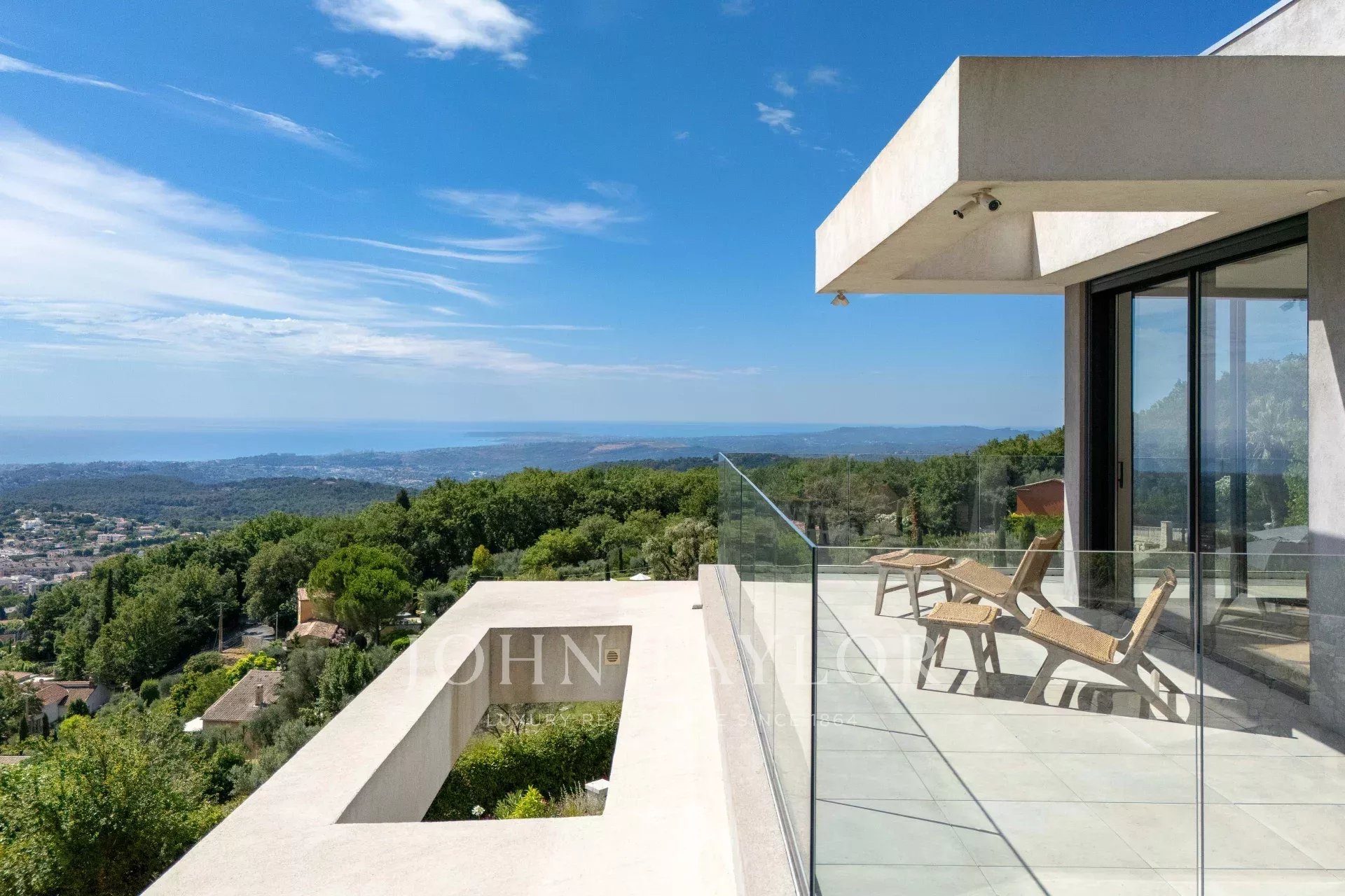 Questa superba villa contemporanea di recente costruzione (355 m²) è situata in posizione ideale sulle colline sopra Vence, nel cuore di 4.000 m² di terreno paesaggistico. Offre un ambiente eccezionale con una vista da cartolina sul mare - da Cap d'Antibes alla Baie des Anges e fino a Cap Ferrat - e sulle montagne circostanti.