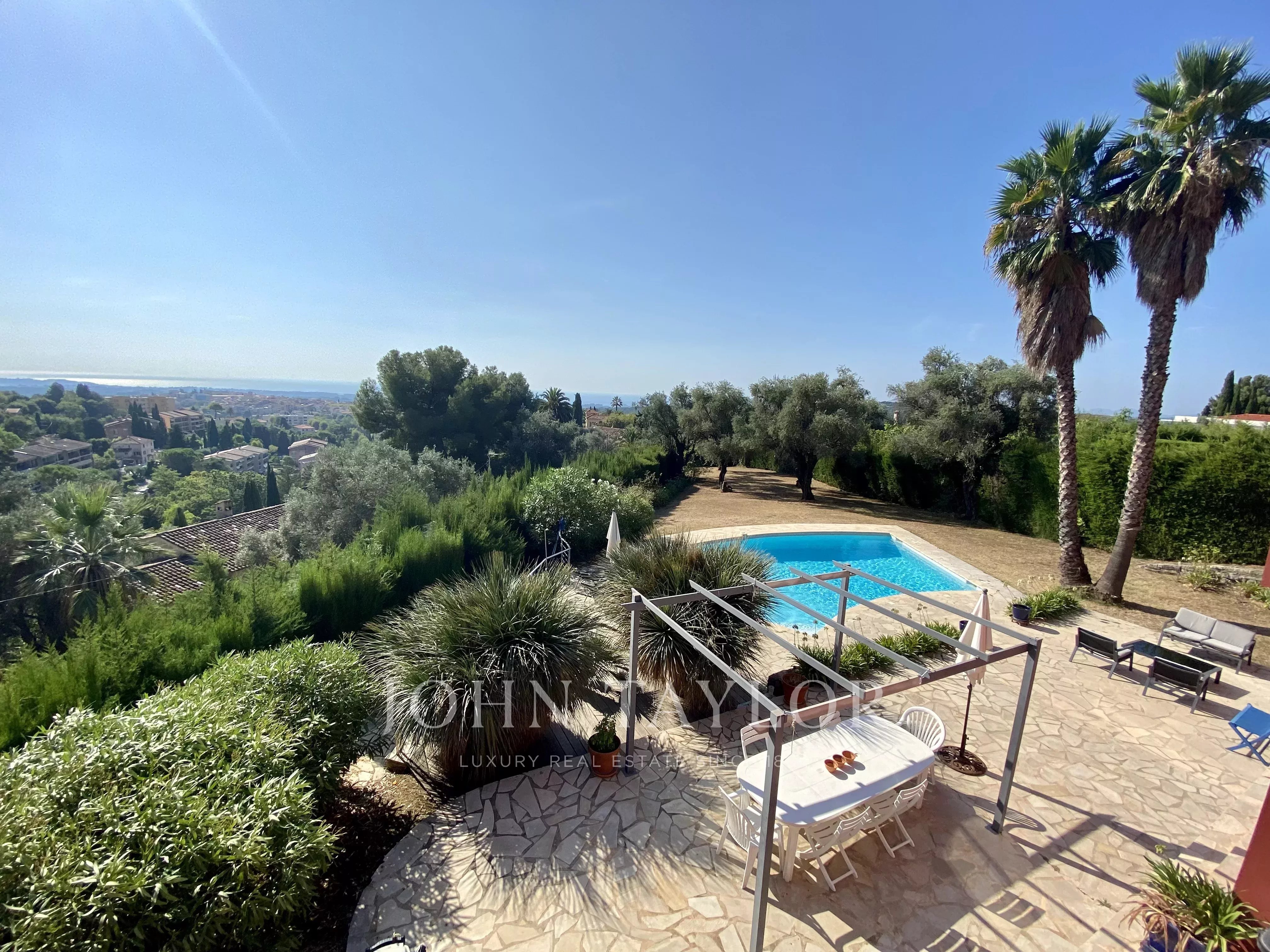 Situata a poche centinaia di metri dal centro di Vence e con vista panoramica sul Baou e fino al mare, questa moderna proprietà di circa 230 m2 beneficia di un bel giardino pianeggiante di circa 1.700 m2 con piscina e garage.