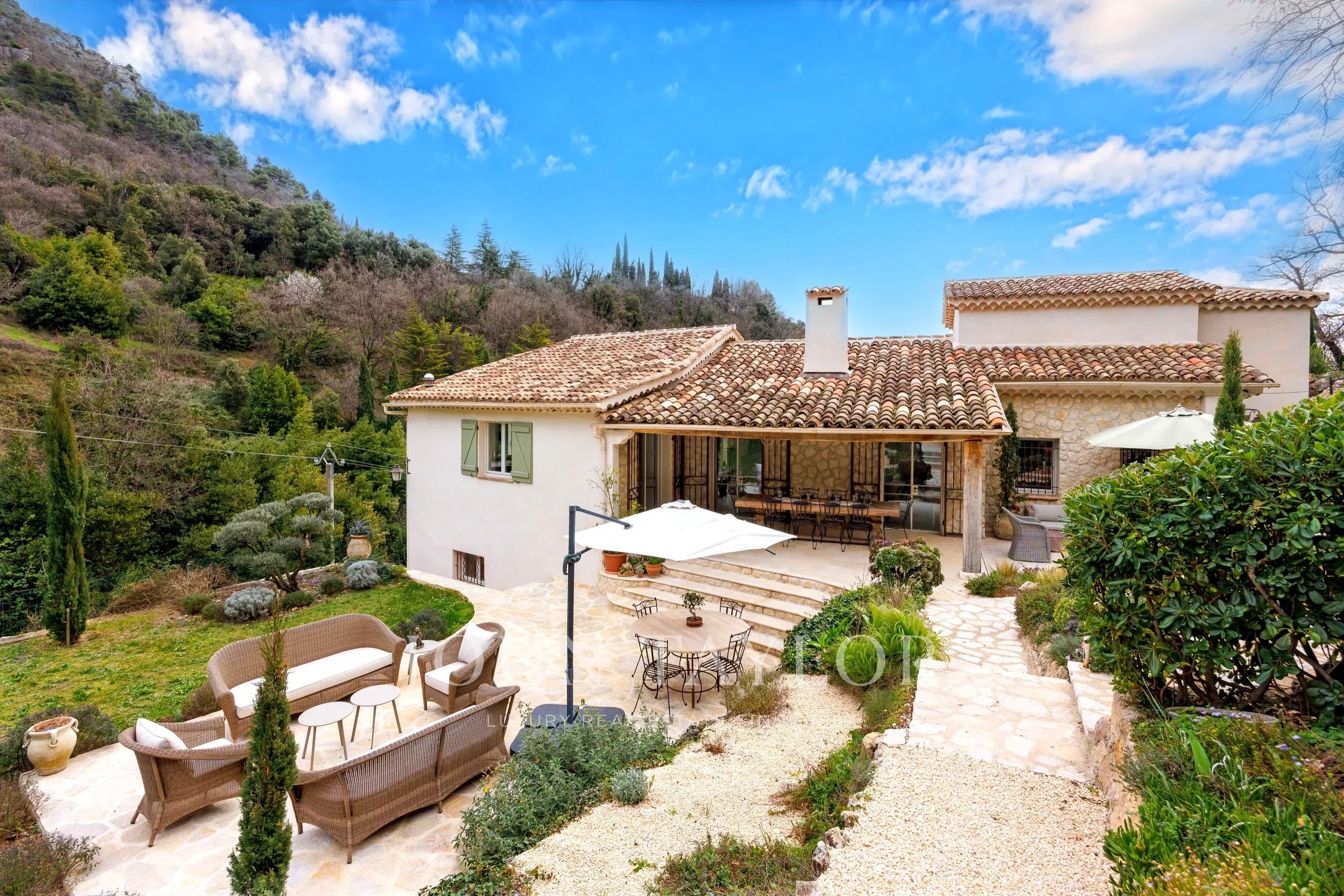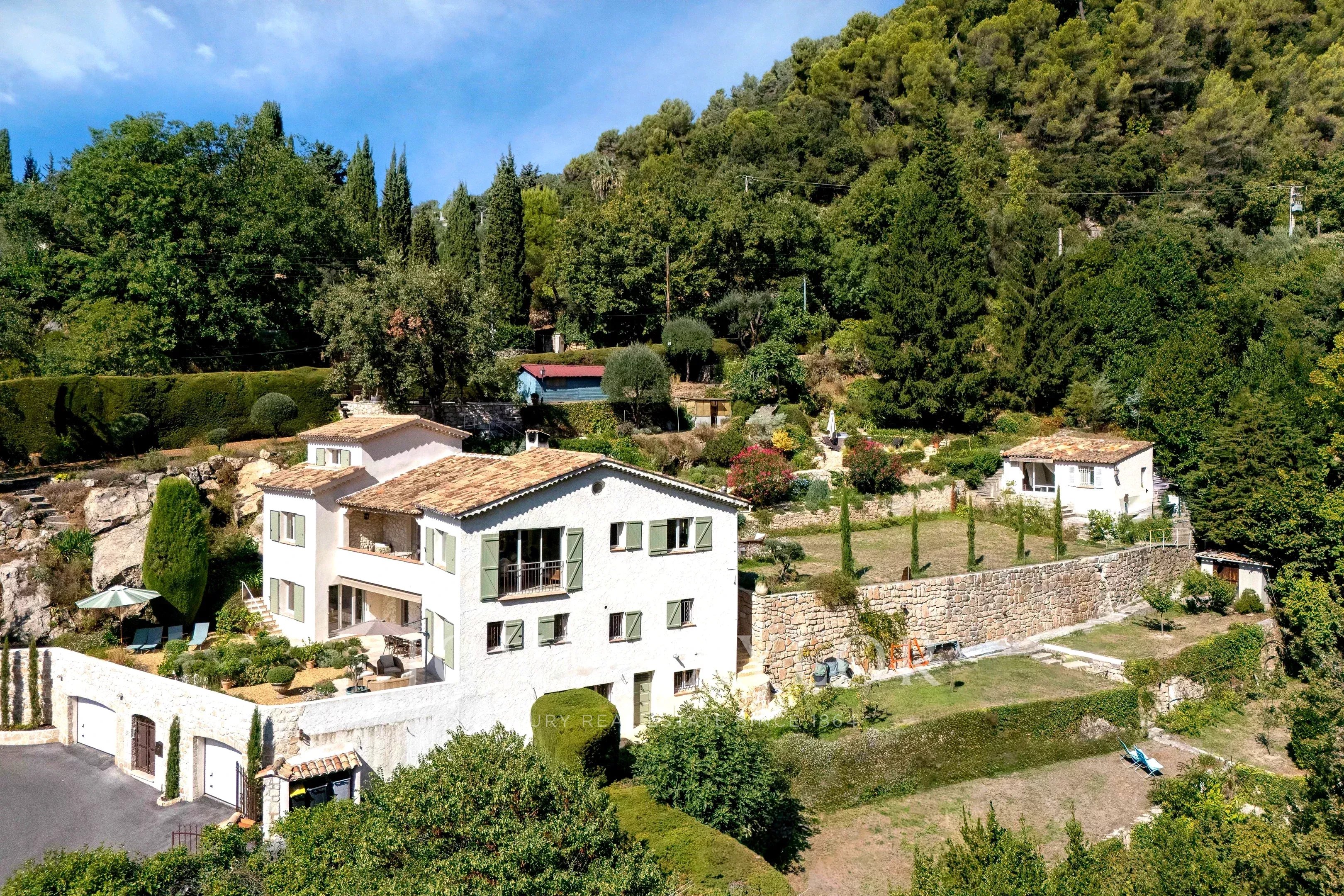 Nelle alture residenziali di Vence, questa proprietà di carattere completamente ristrutturata di circa 250 m² gode di un ambiente eccezionale con una vista spettacolare sul mare.