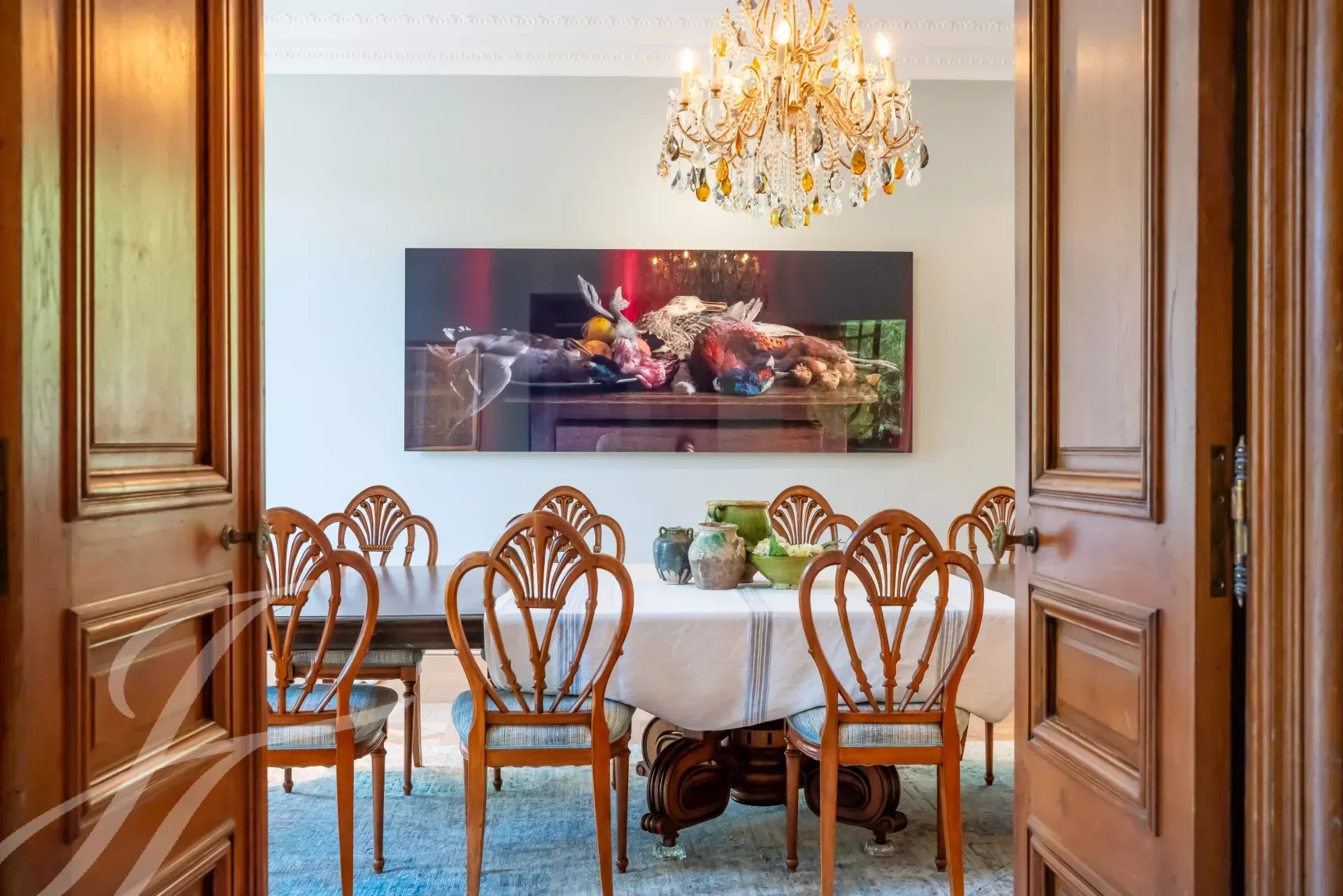 Lo château, completamente ristrutturato secondo uno standard molto elevato, affascina per la sua eleganza e la raffinatezza dei suoi volumi, offrendo un ambiente di vita tanto idilliaco quanto eccezionale. Dispone di diverse sale di ricevimento con atmosfere distinte: un salone/sala da pranzo con camino, una superba biblioteca in legno, una sala da musica, uno studio e una luminosa sala da pranzo adiacente a una vasta cucina completamente attrezzata.