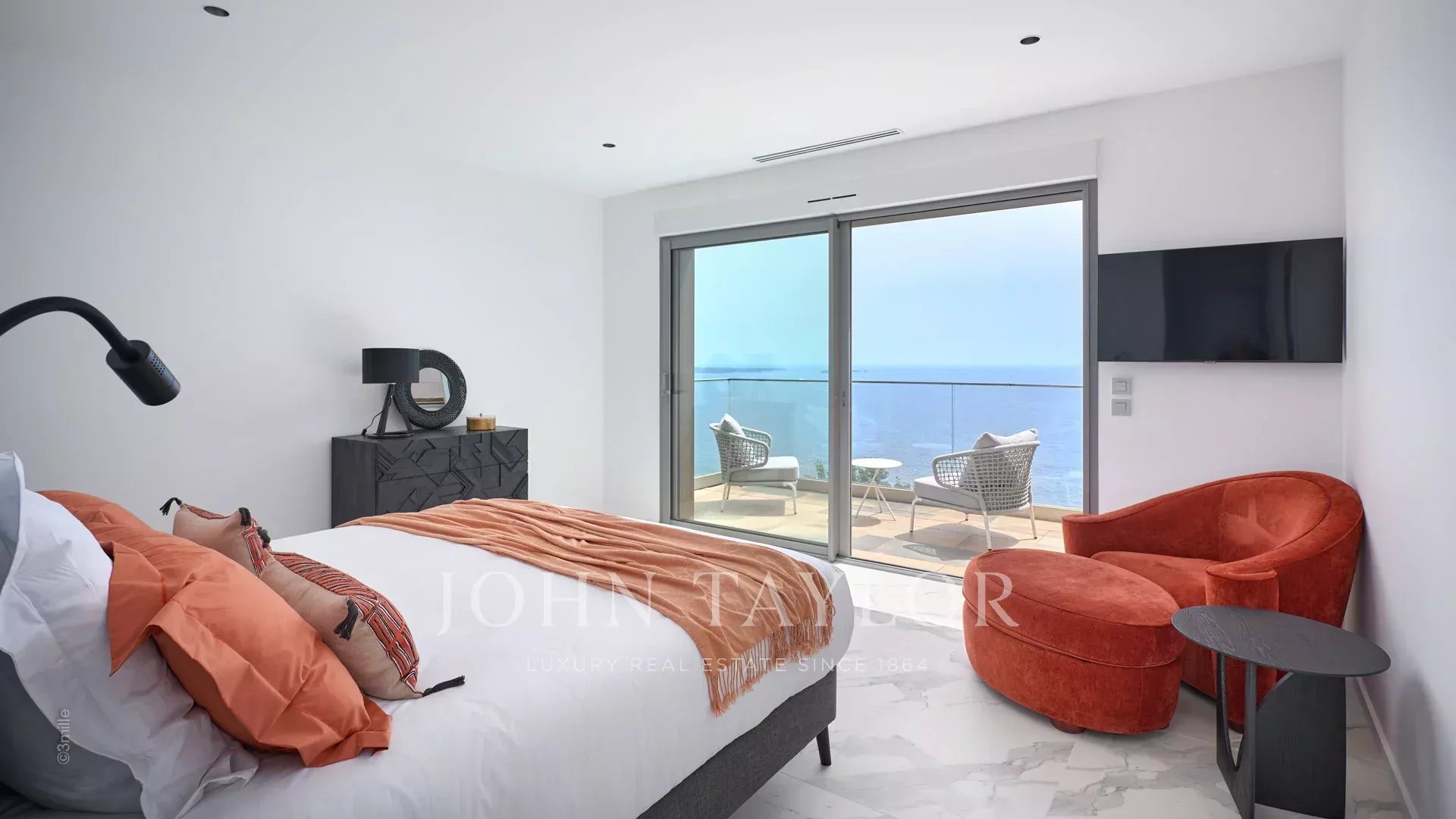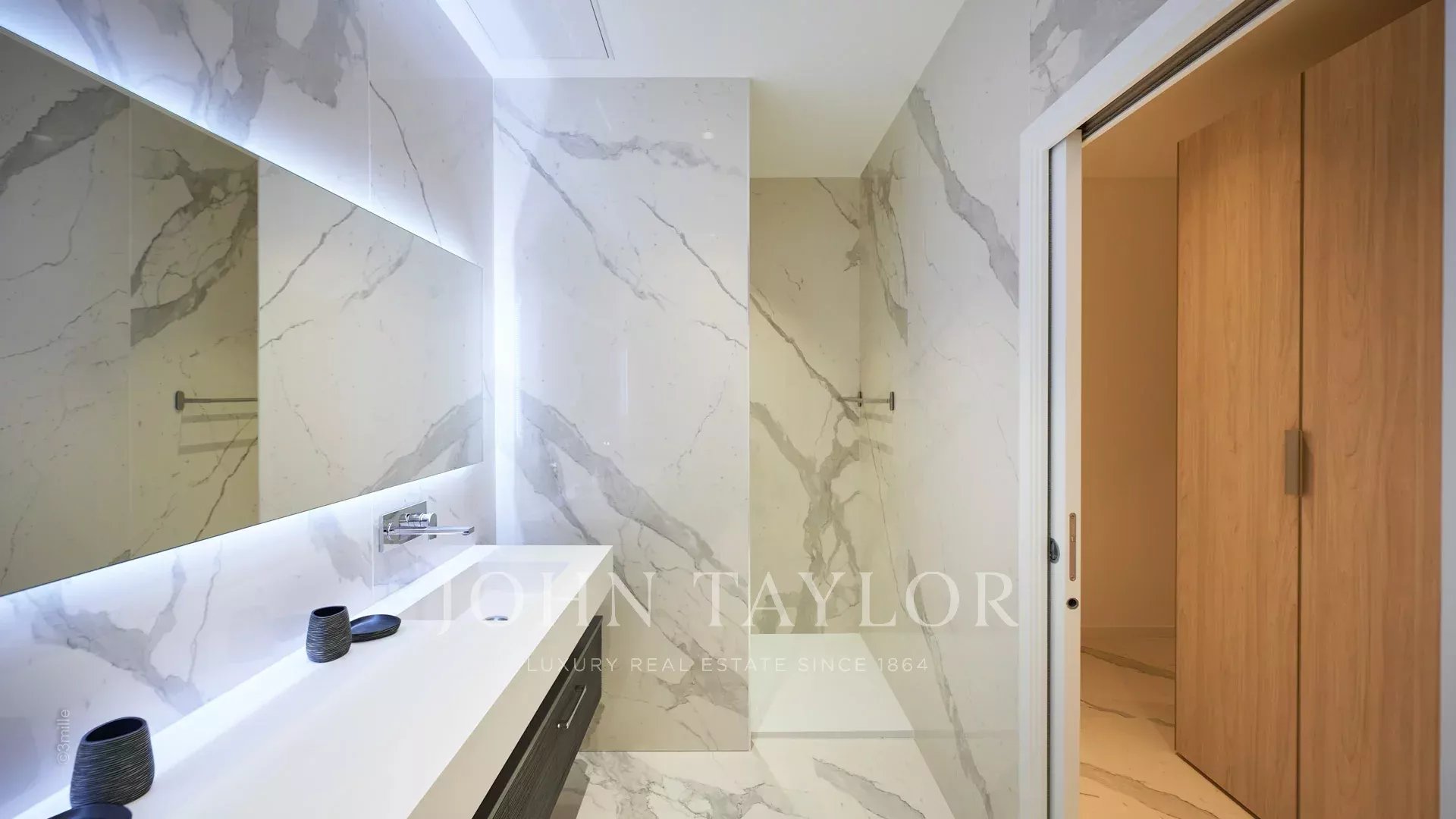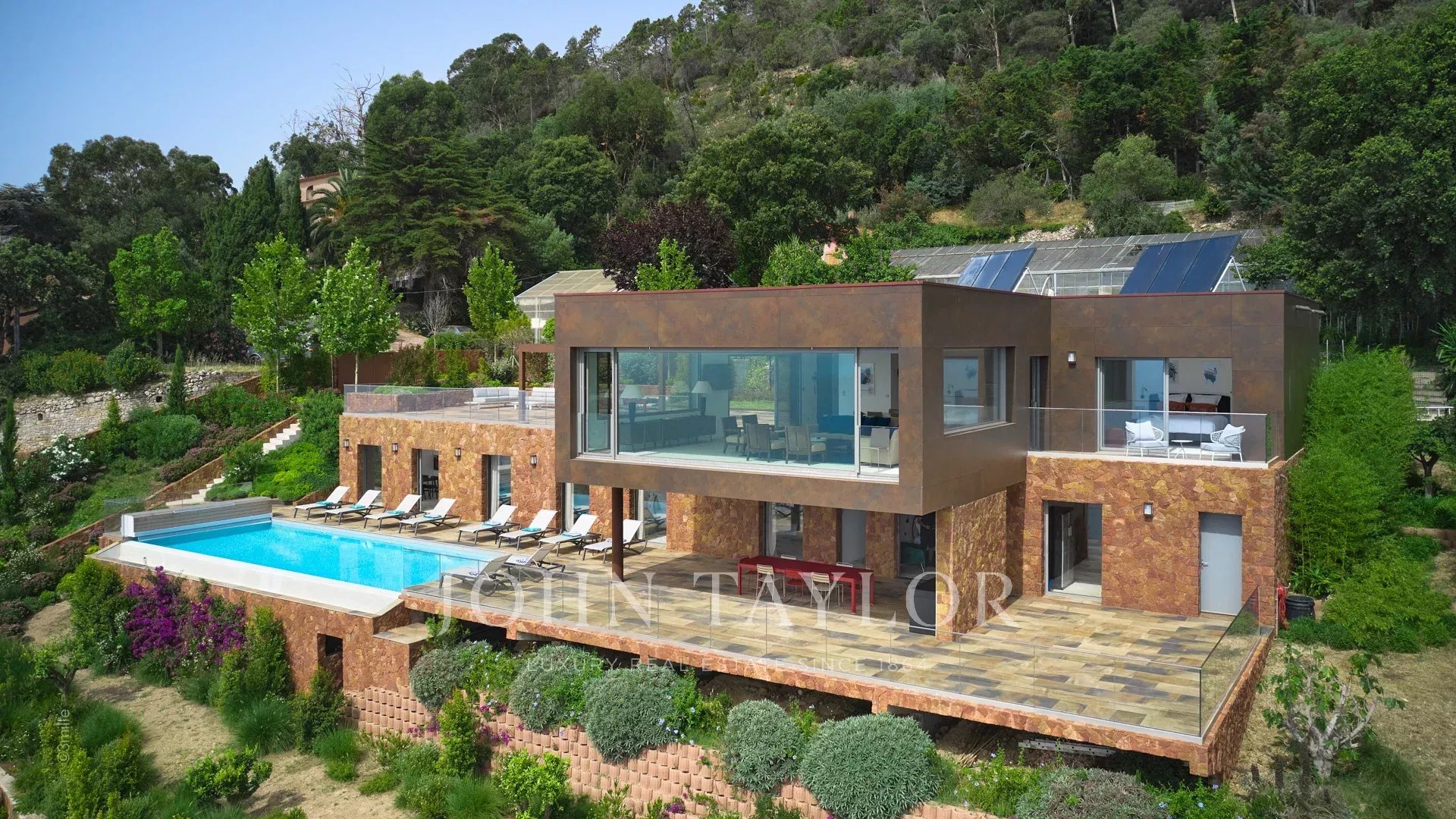 Su una superficie di circa 340 m², il piano terra comprende un ampio soggiorno che si apre sulla terrazza, una cucina a pianta aperta, una sala da pranzo e una camera da letto principale con spogliatoio. Al livello inferiore si trovano sei camere da letto con bagno, tra cui un appartamento indipendente.