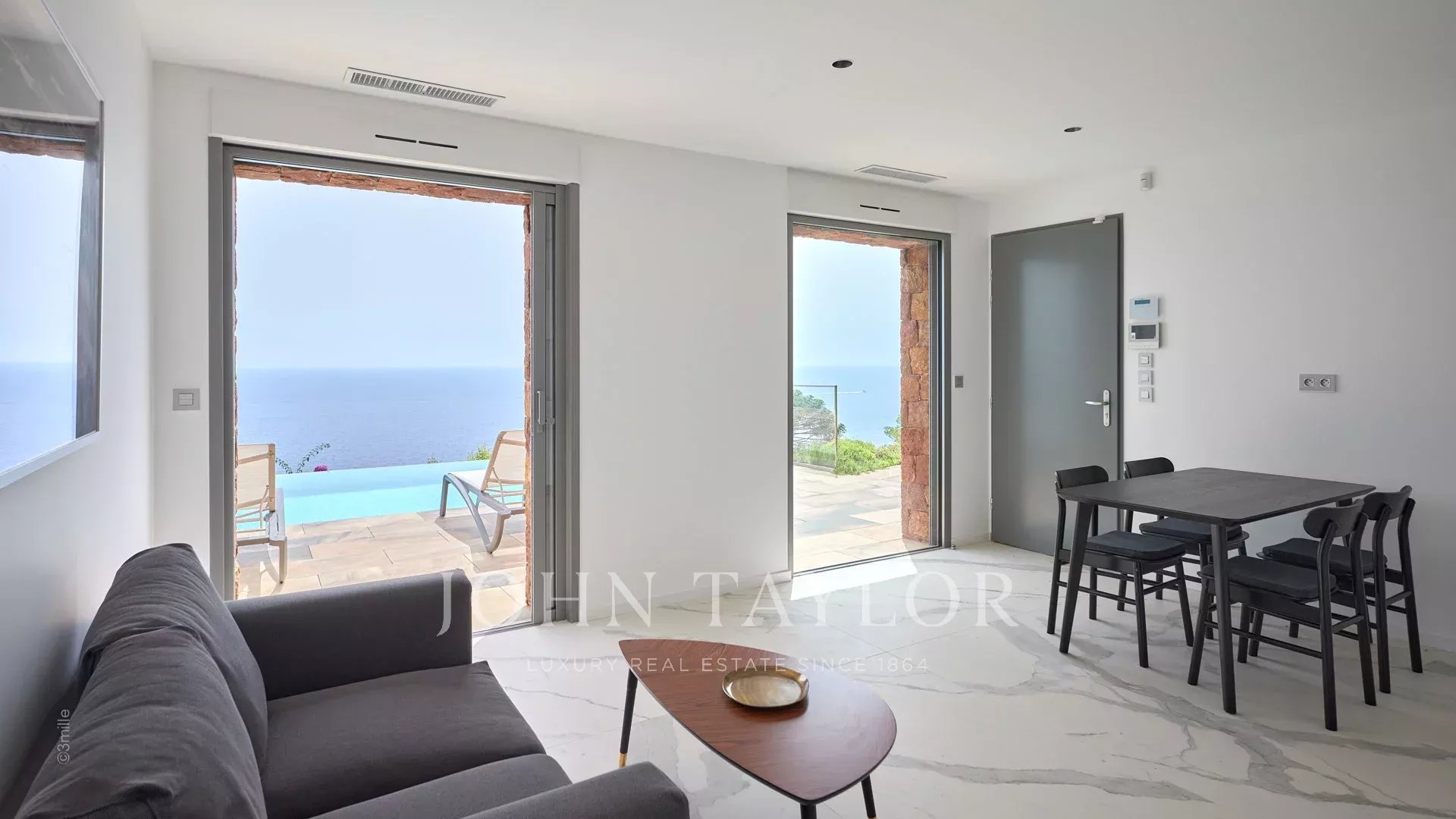 Situata in posizione dominante e in assoluta tranquillità a Théoule-sur-Mer, a soli 5 minuti dal villaggio, questa nuova villa su un terreno di 2004 m² gode di una spettacolare vista sul mare.