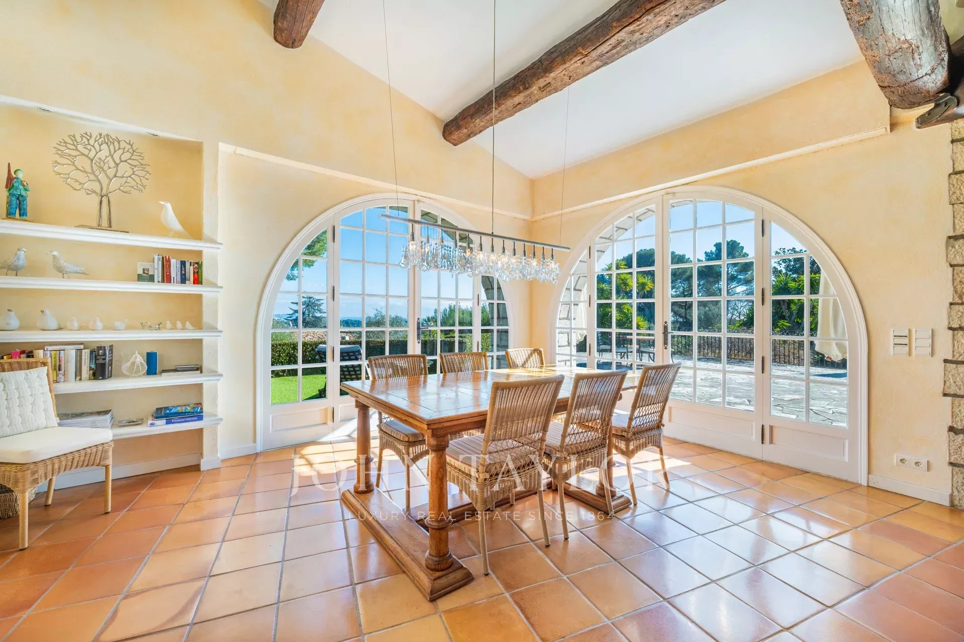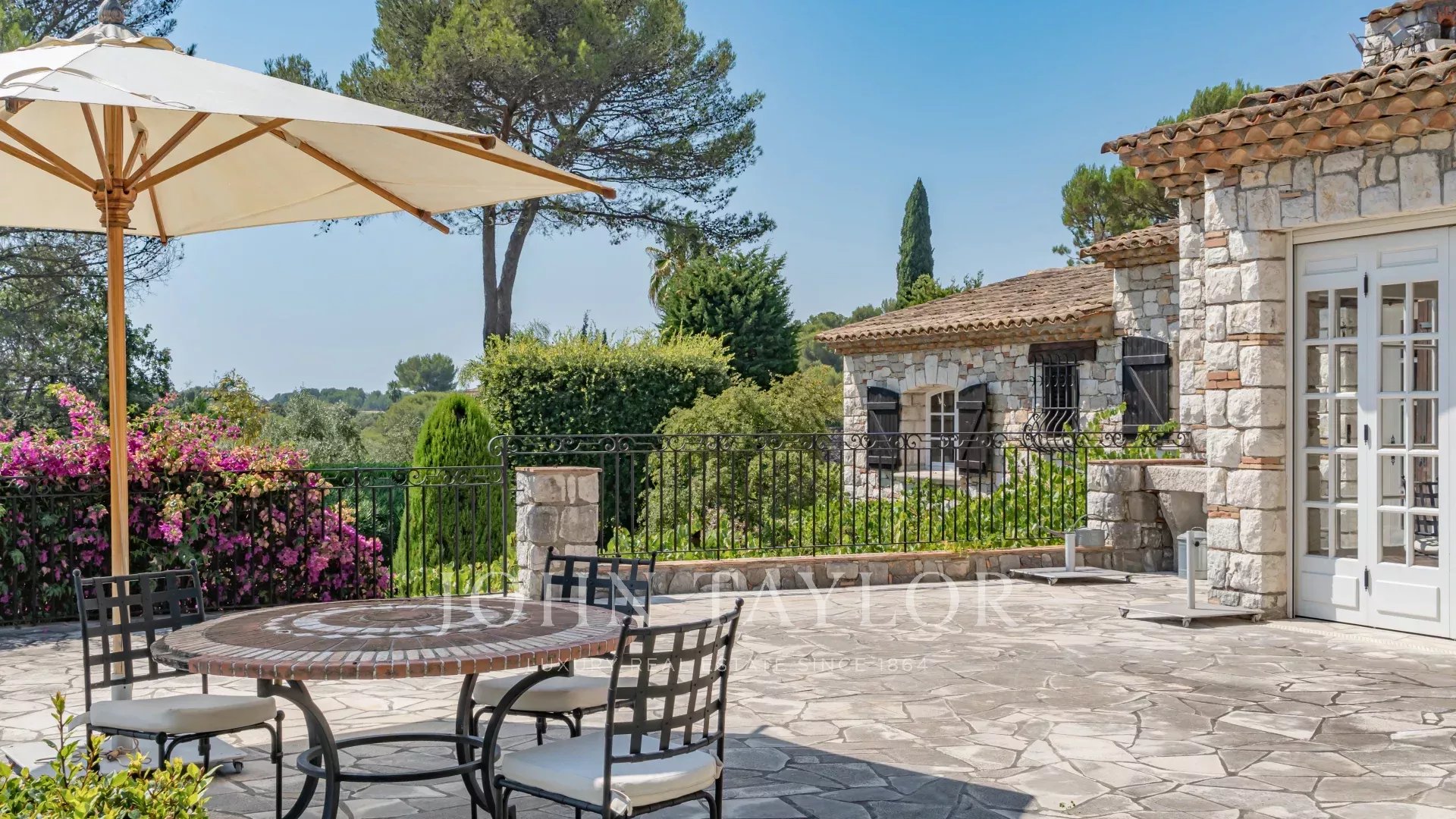 Situata in un dominio esclusivo e tranquillo, questa magnifica proprietà a Biot offre uno stile di vita idilliaco a soli 20 minuti dall'aeroporto di Nizza e a 10 minuti dalle spiagge di Antibes.