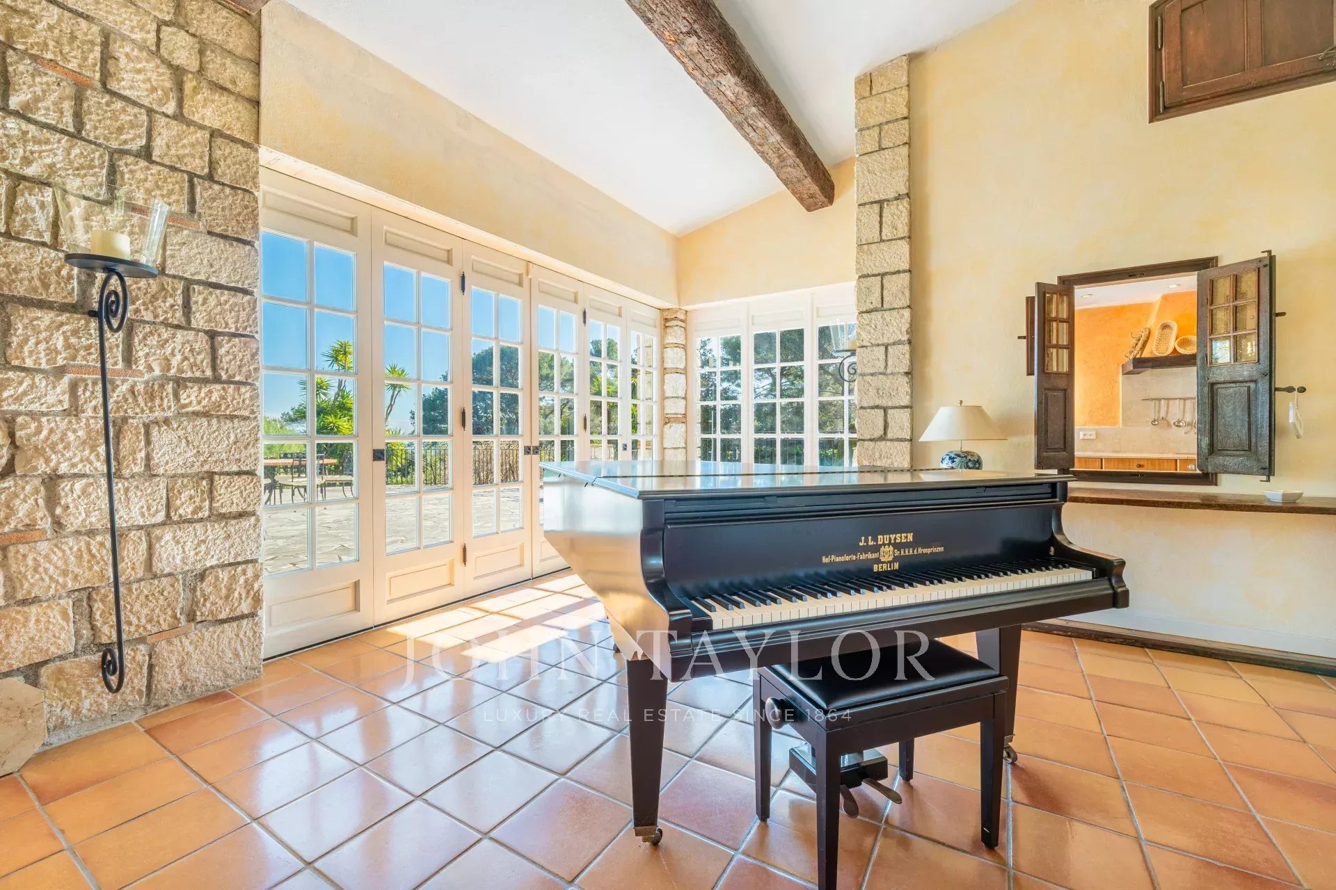 Godetevi la vista mozzafiato sul mare e la completa tranquillità di questa casa in stile provenzale, caratterizzata da un'affascinante facciata in pietra e da imponenti soffitti con travi a vista.