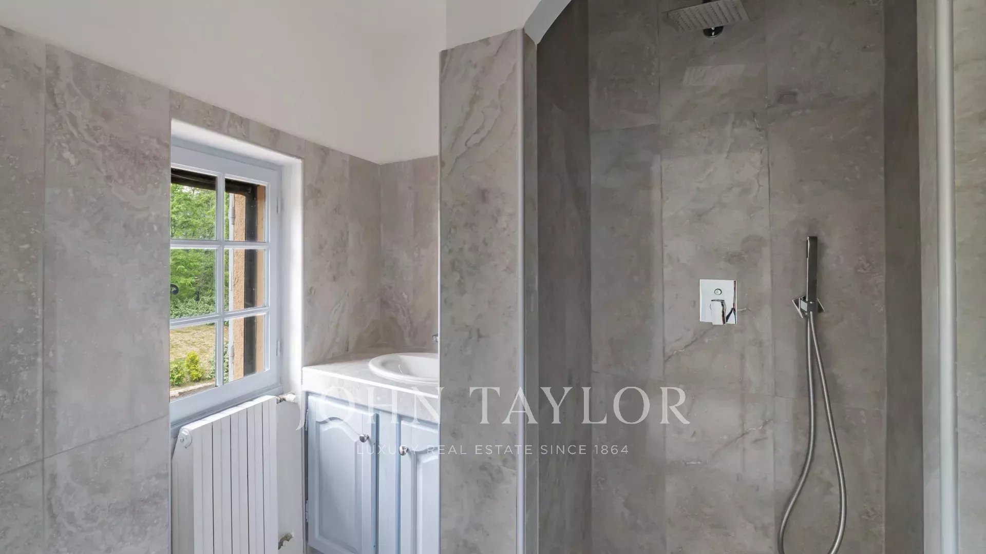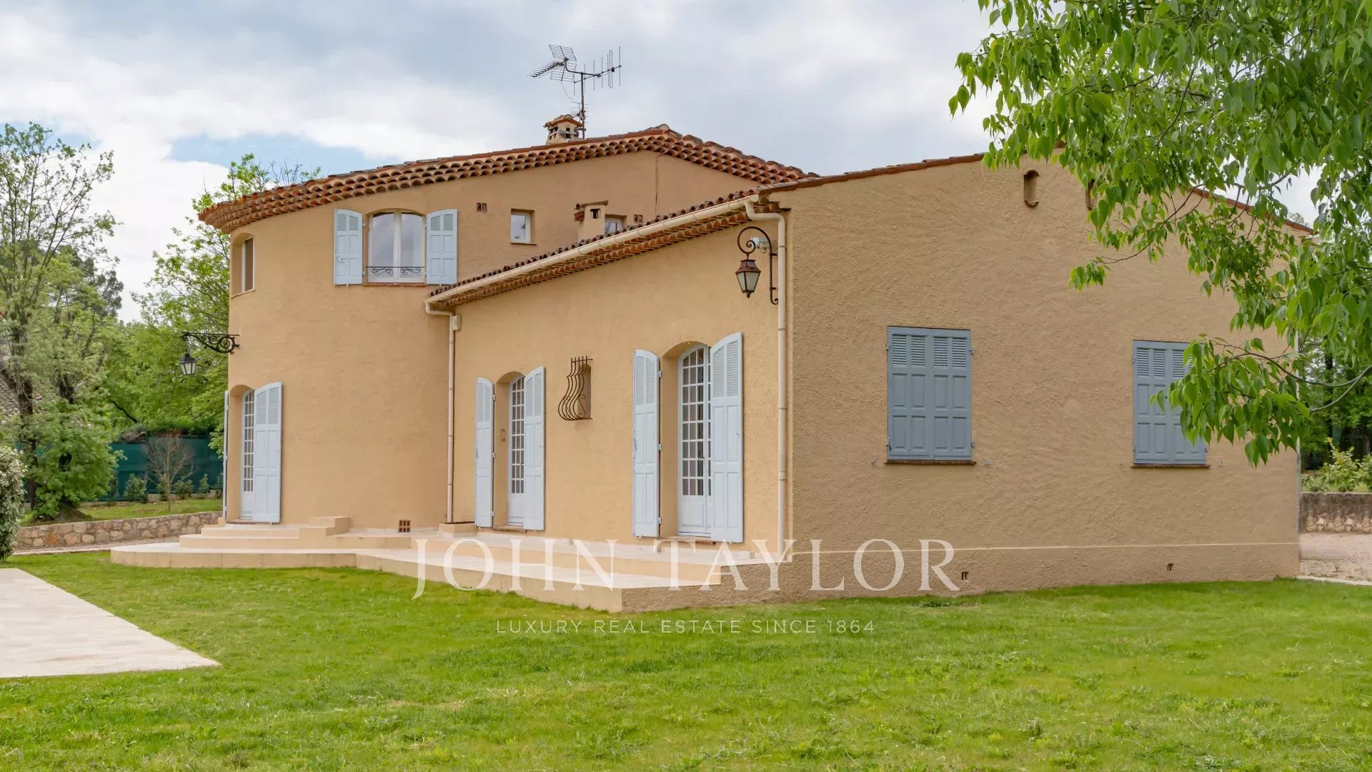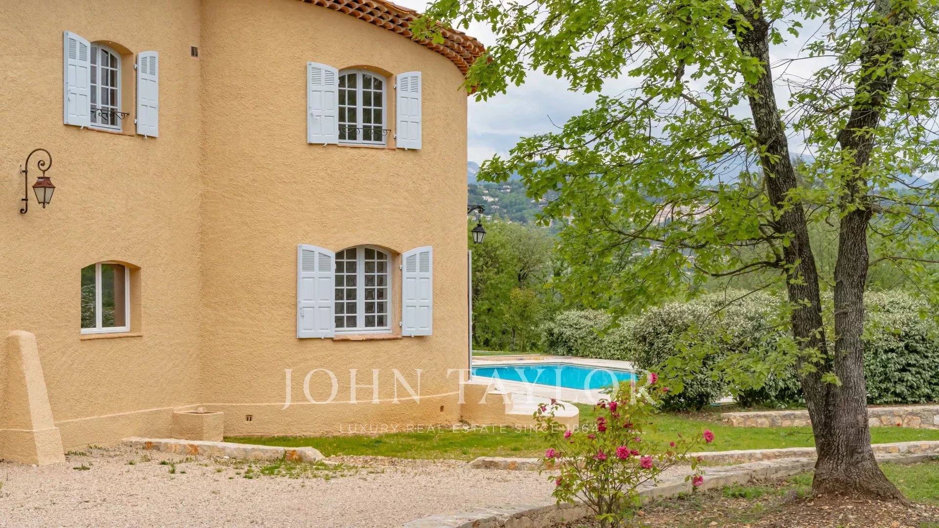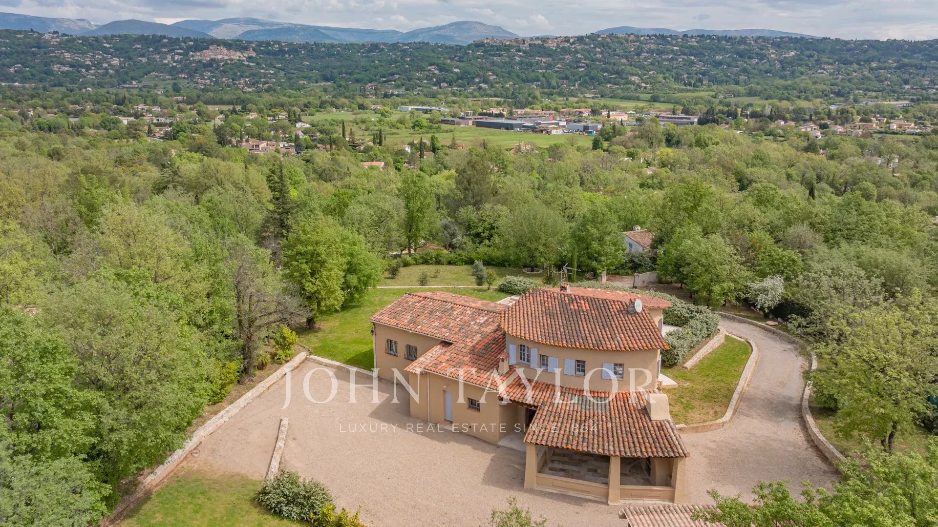 In una posizione ricercata e tranquilla, villa di 220 m2 immersa in un terreno alberato di 4400 m2 con vista panoramica sulle colline circostanti e vicina a negozi.