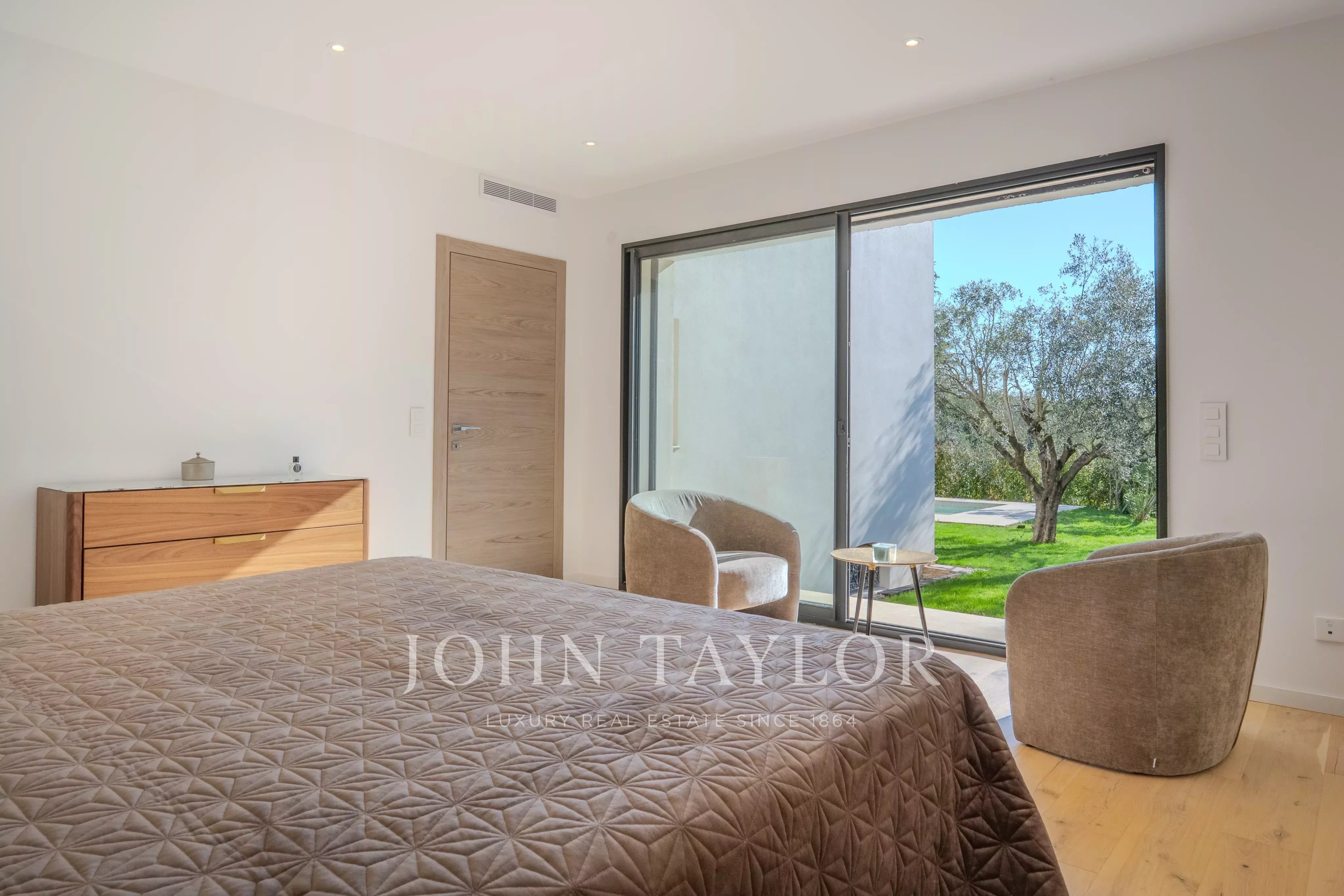 Infine, un ampio garage chiuso in grado di ospitare fino a cinque veicoli rappresenta un vantaggio molto ricercato in questo settore. La villa beneficia anche di un comfort moderno completo con aria condizionata integrale, tapparelle elettriche e sistema di allarme, il tutto in un ambiente residenziale di prima classe, nel massimo silenzio.