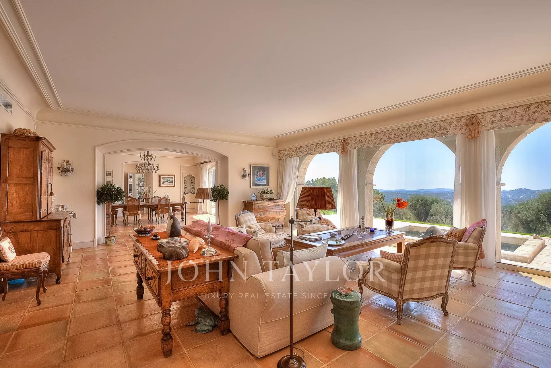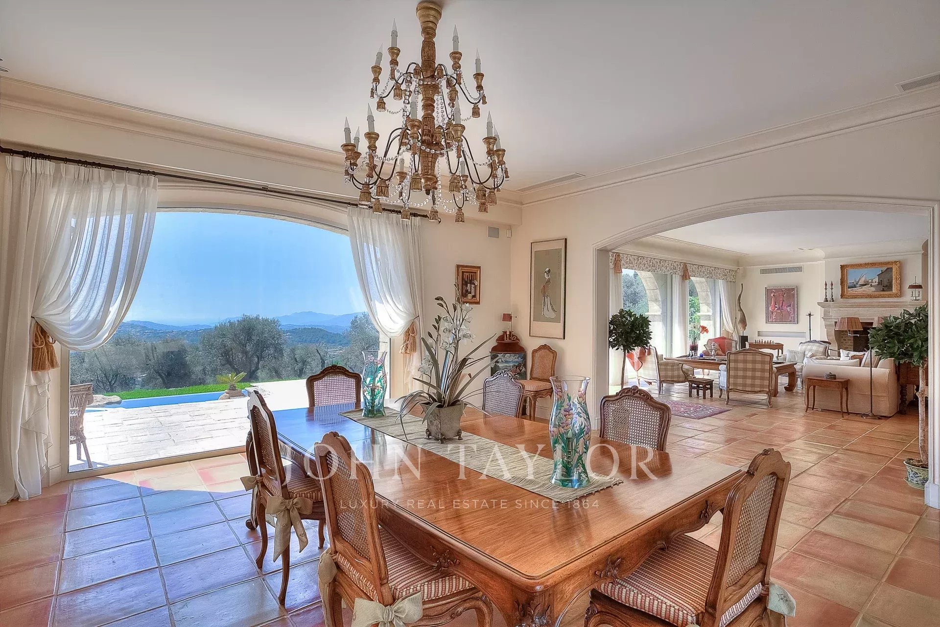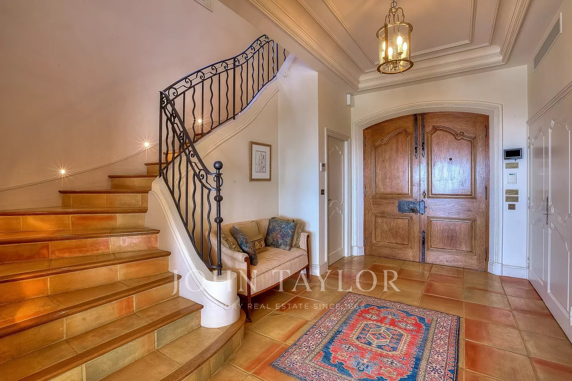 Appena entrati, sarete sedotti dall'ampio ingresso con guardaroba, che si apre su un sontuoso soggiorno con un magnifico camino. L'elegante sala da pranzo, con i suoi soffitti alti 3 metri, si apre su una vasta terrazza.