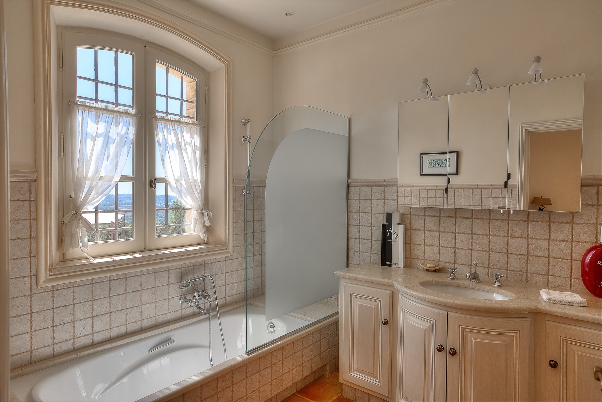 Al piano superiore si trovano due sontuose camere da letto principali. Una è dotata di bagno interno, mentre l'altra si apre su una terrazza privata sul tetto. Gli spogliatoi "Monsieur" e "Madame" e un bagno in marmo rosa con vasca idromassaggio e doccia offrono il massimo del lusso.