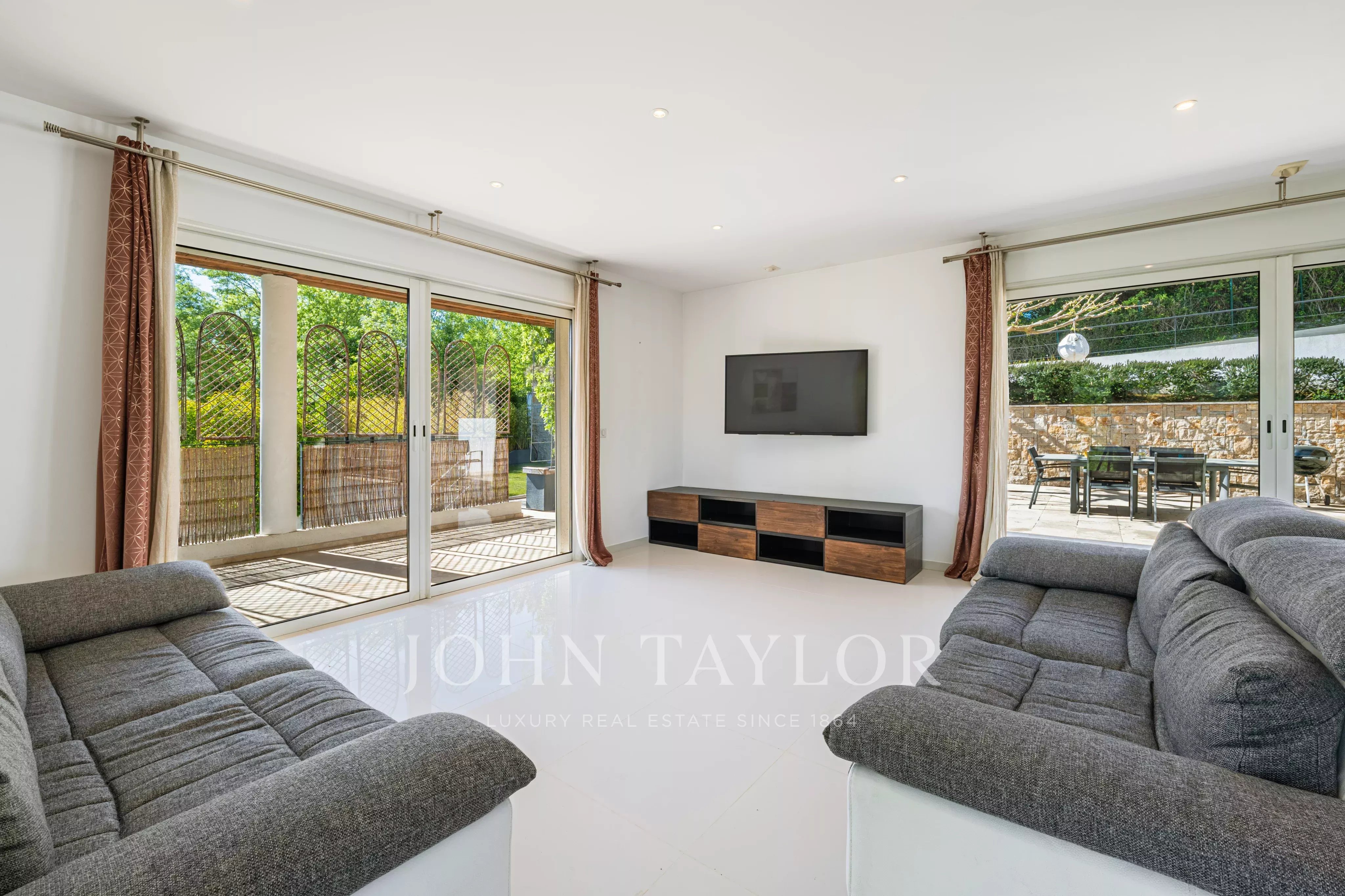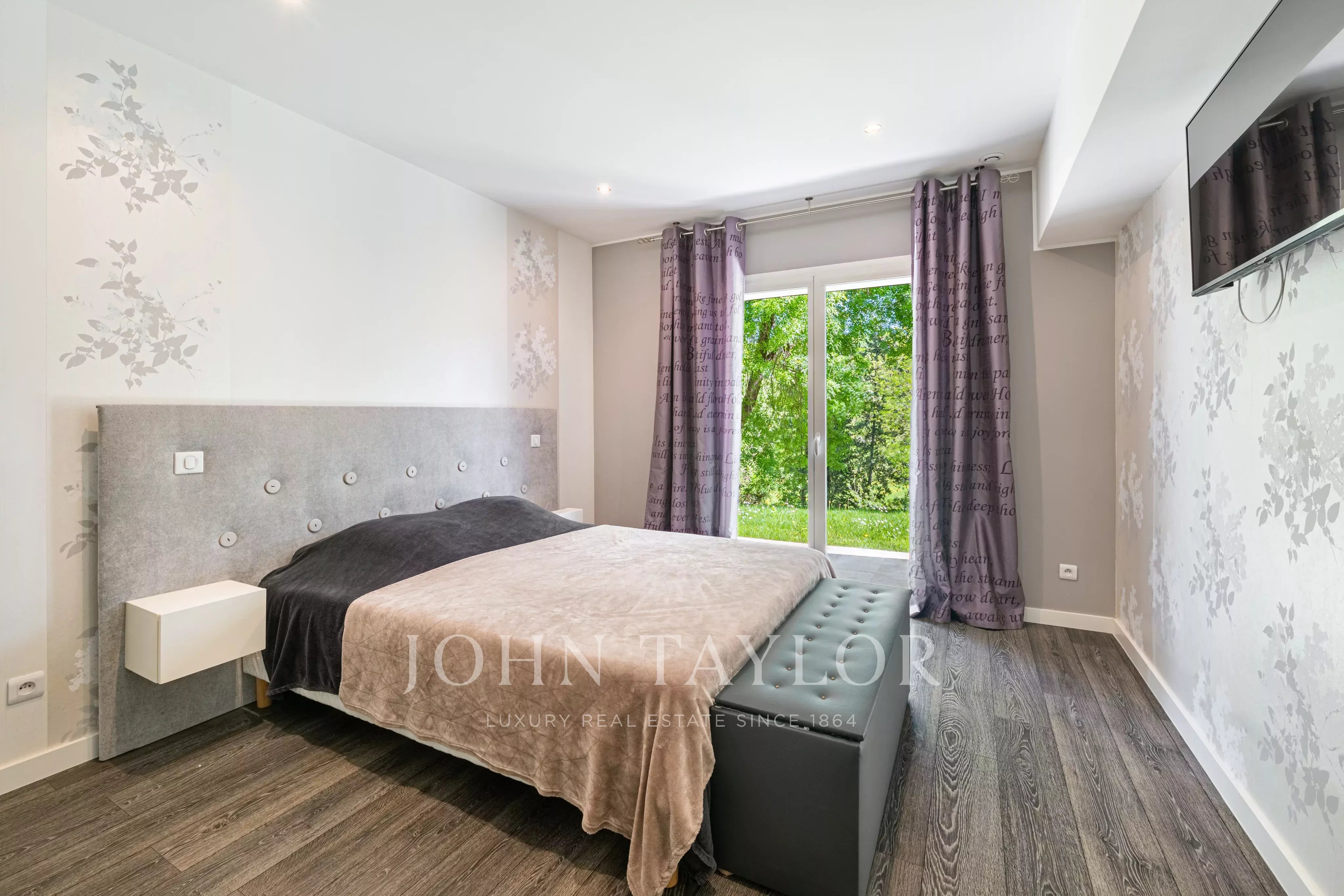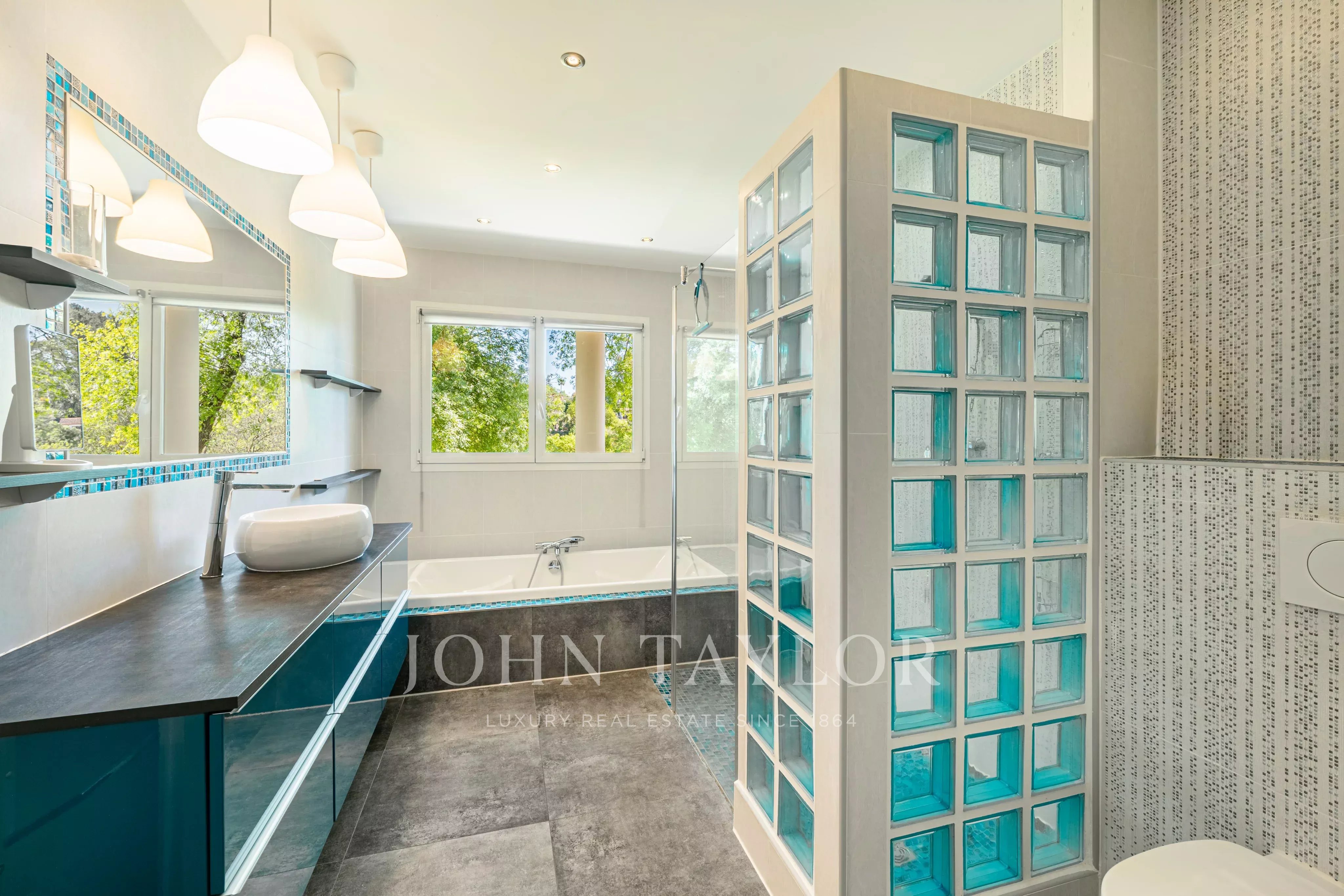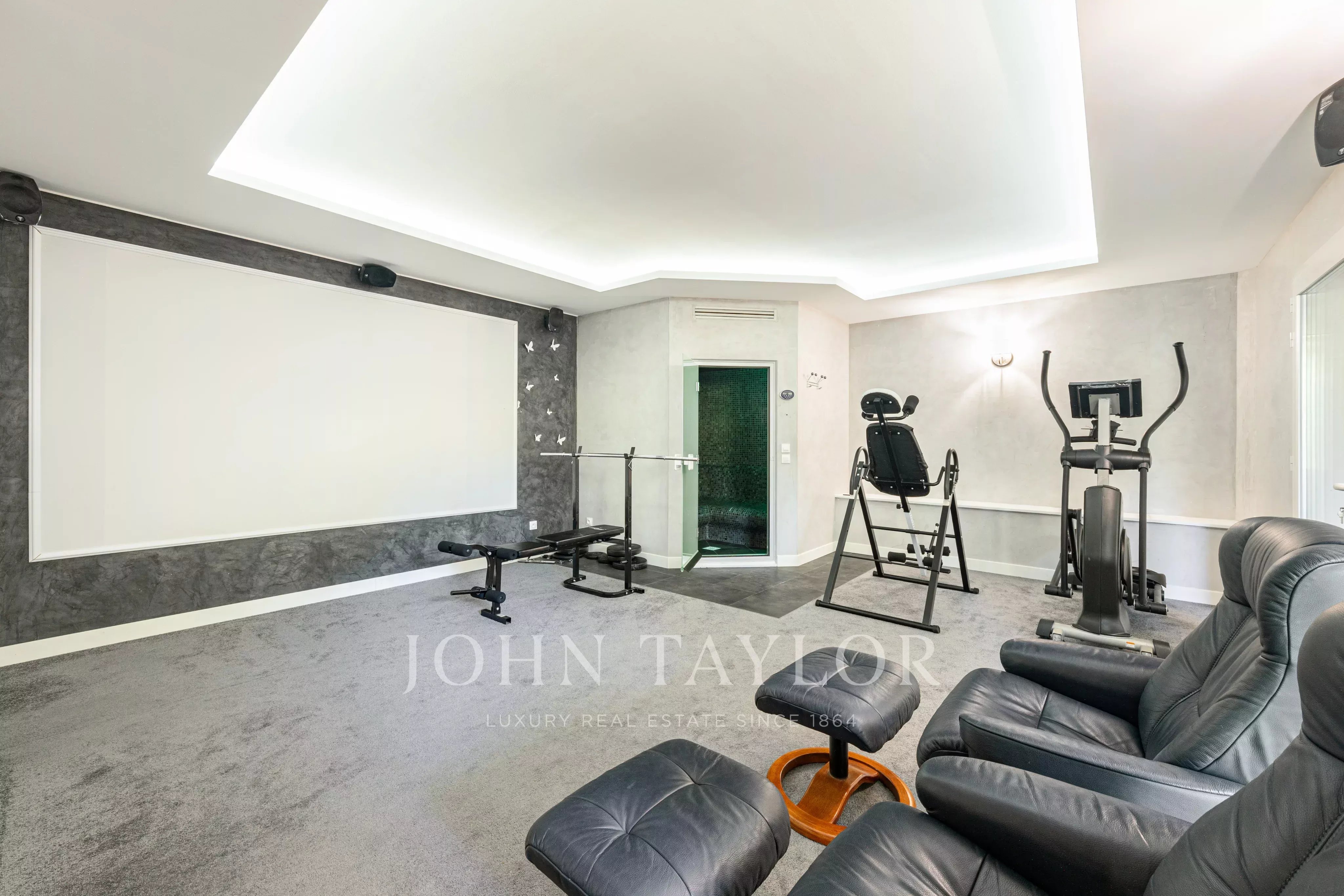 Al piano inferiore: una vasta suite padronale con bagno e guardaroba, una terza camera con bagno, palestra e hammam.