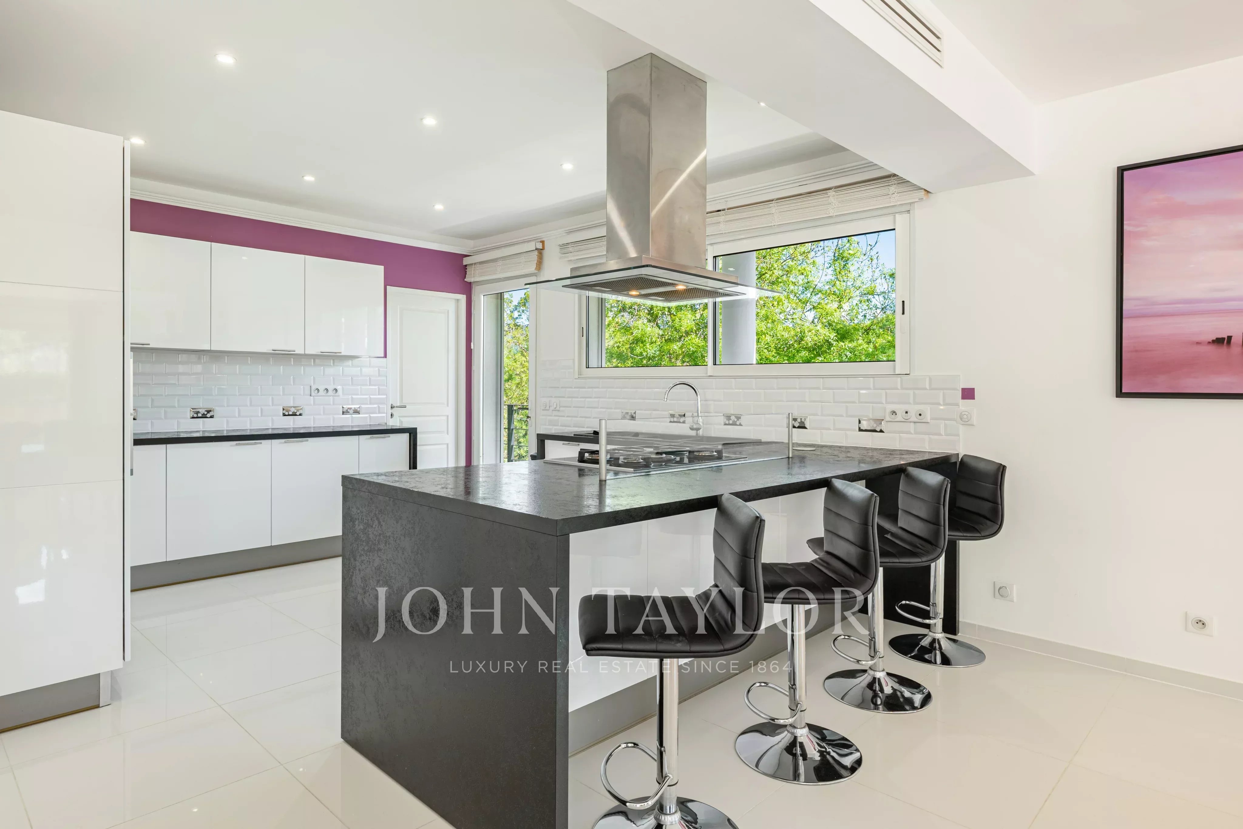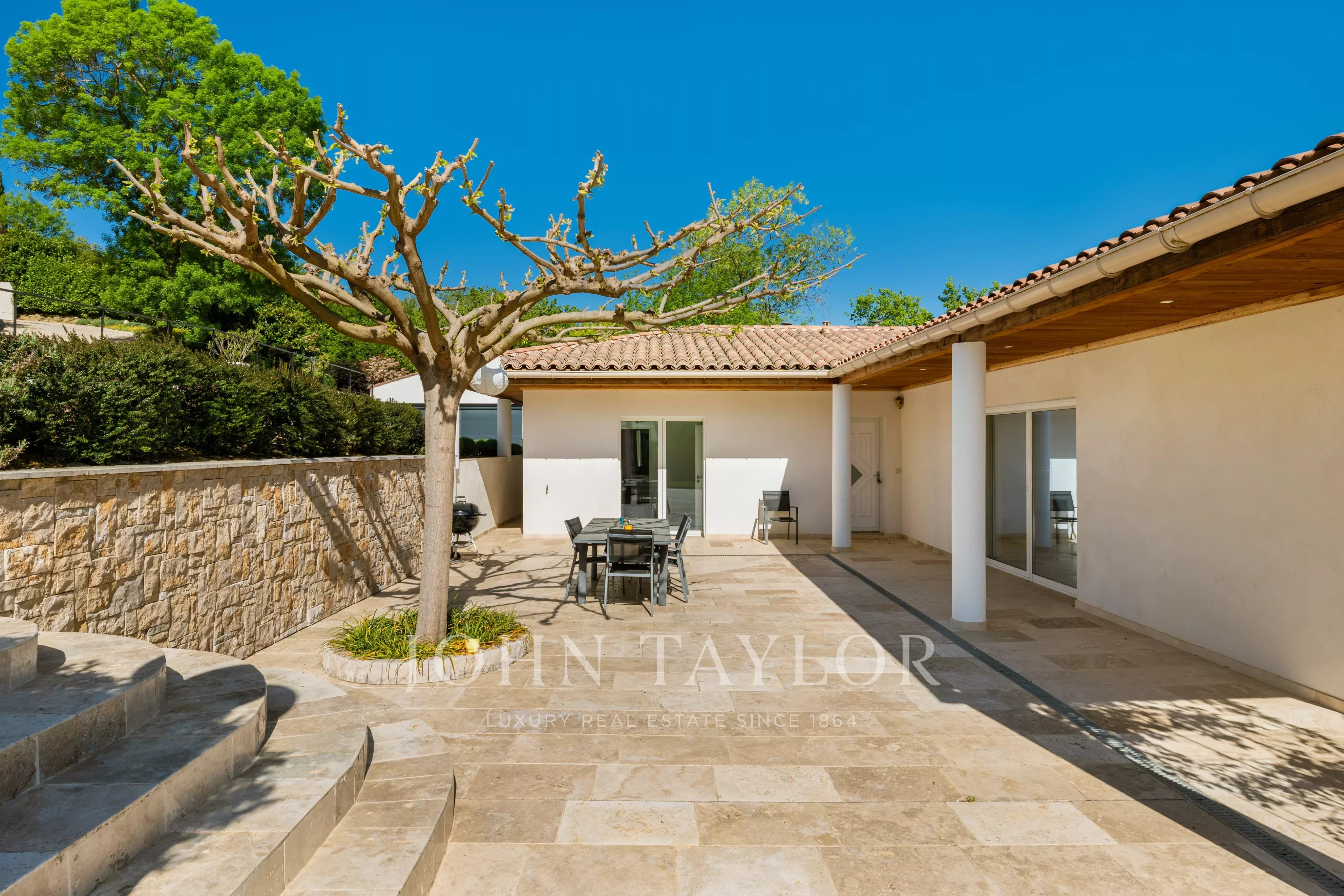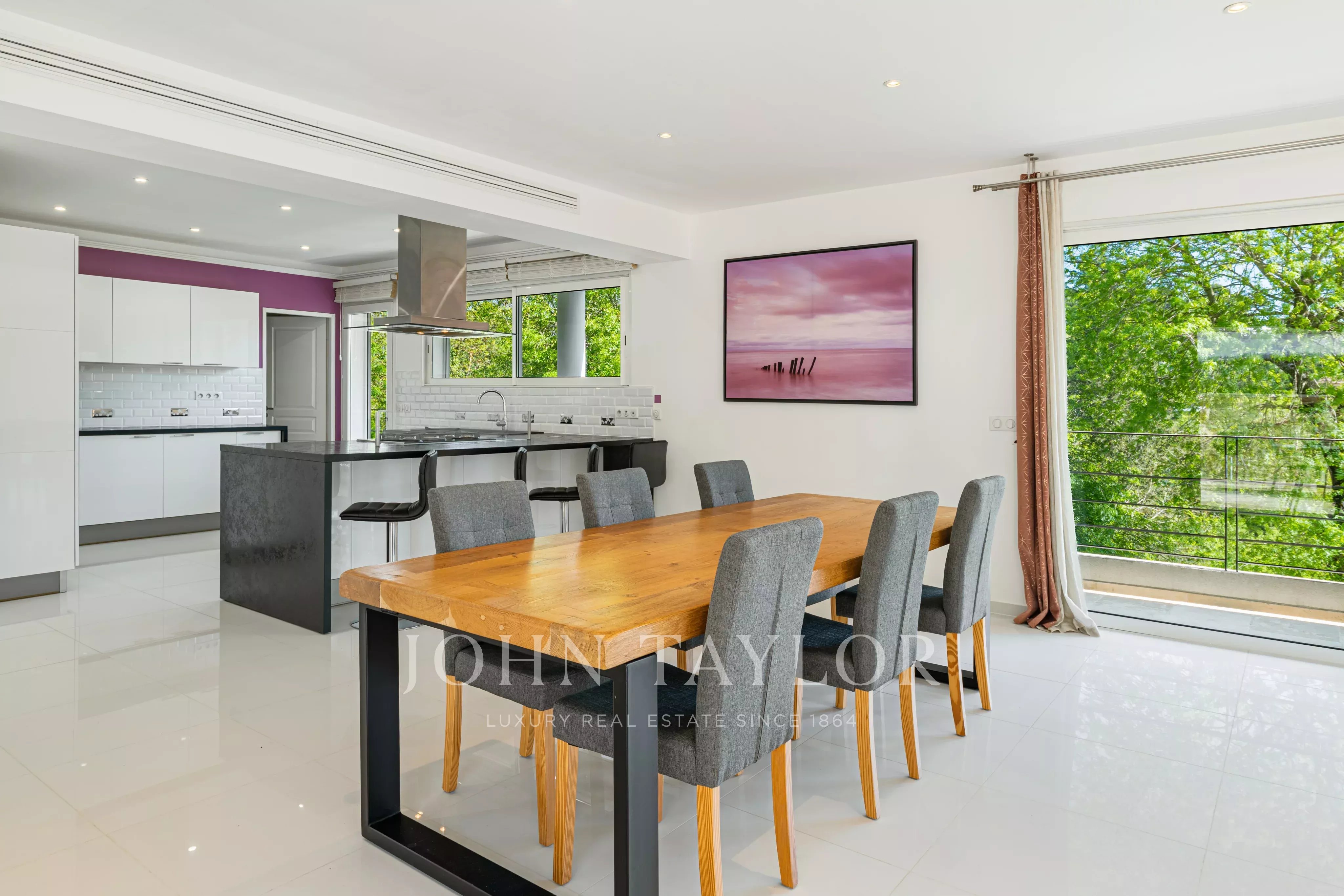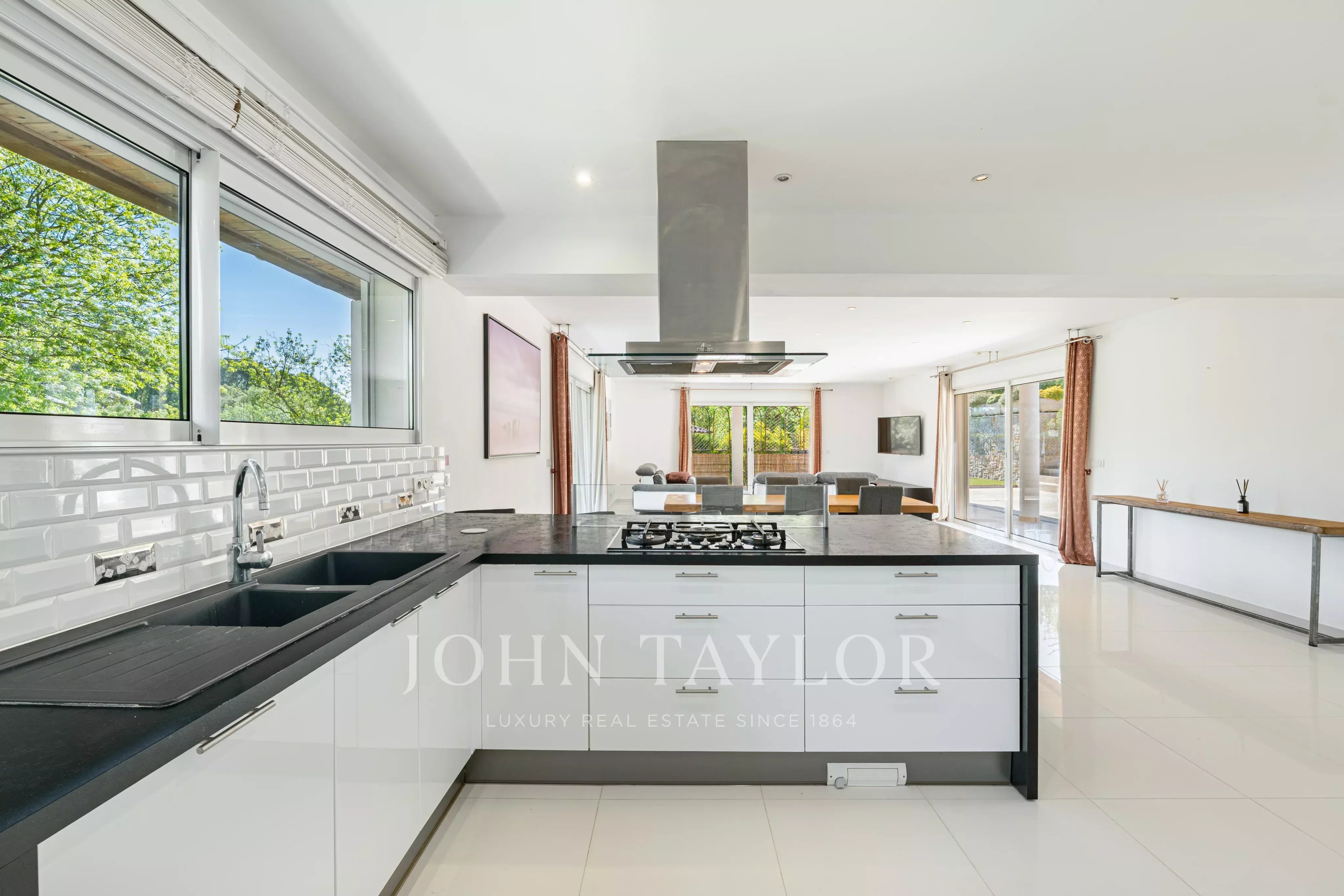 Al piano inferiore: una vasta suite padronale con bagno e guardaroba, una terza camera con bagno, palestra e hammam.