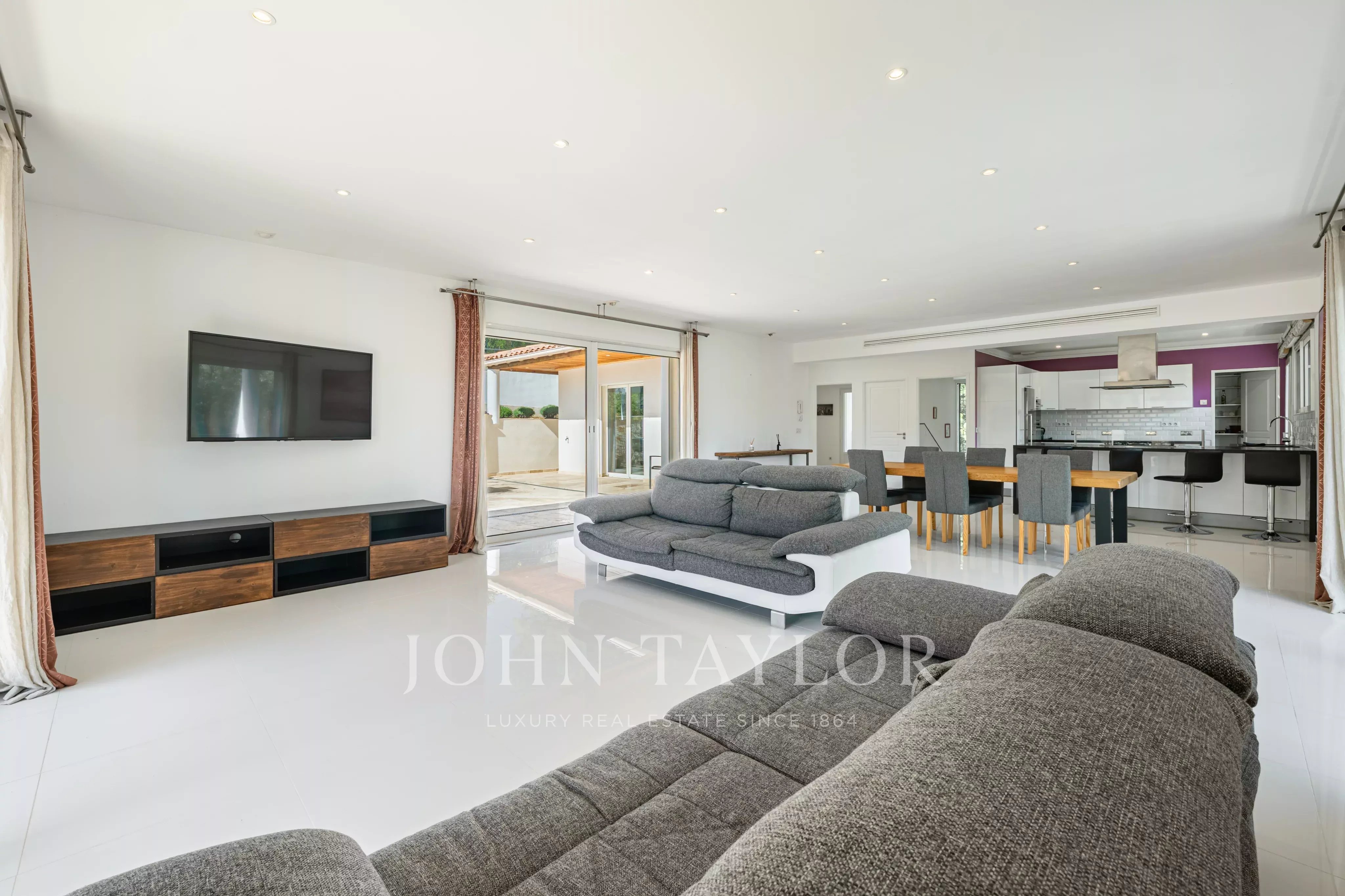 In un ambiente rurale, in una zona tranquilla, spaziosa villa recente di 235m², con vista aperta sulla campagna circostante.