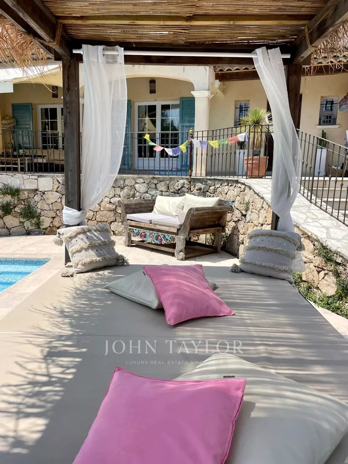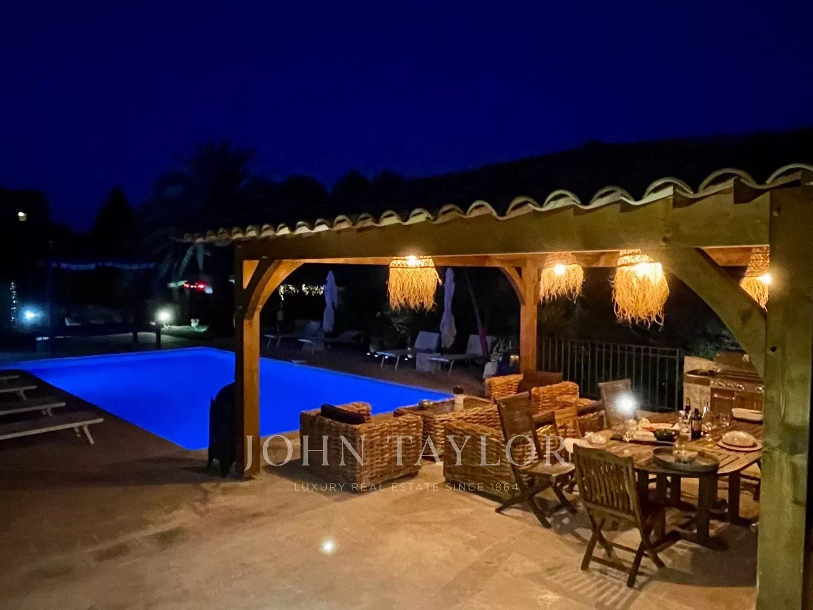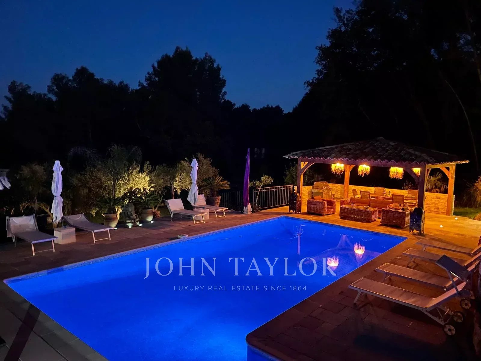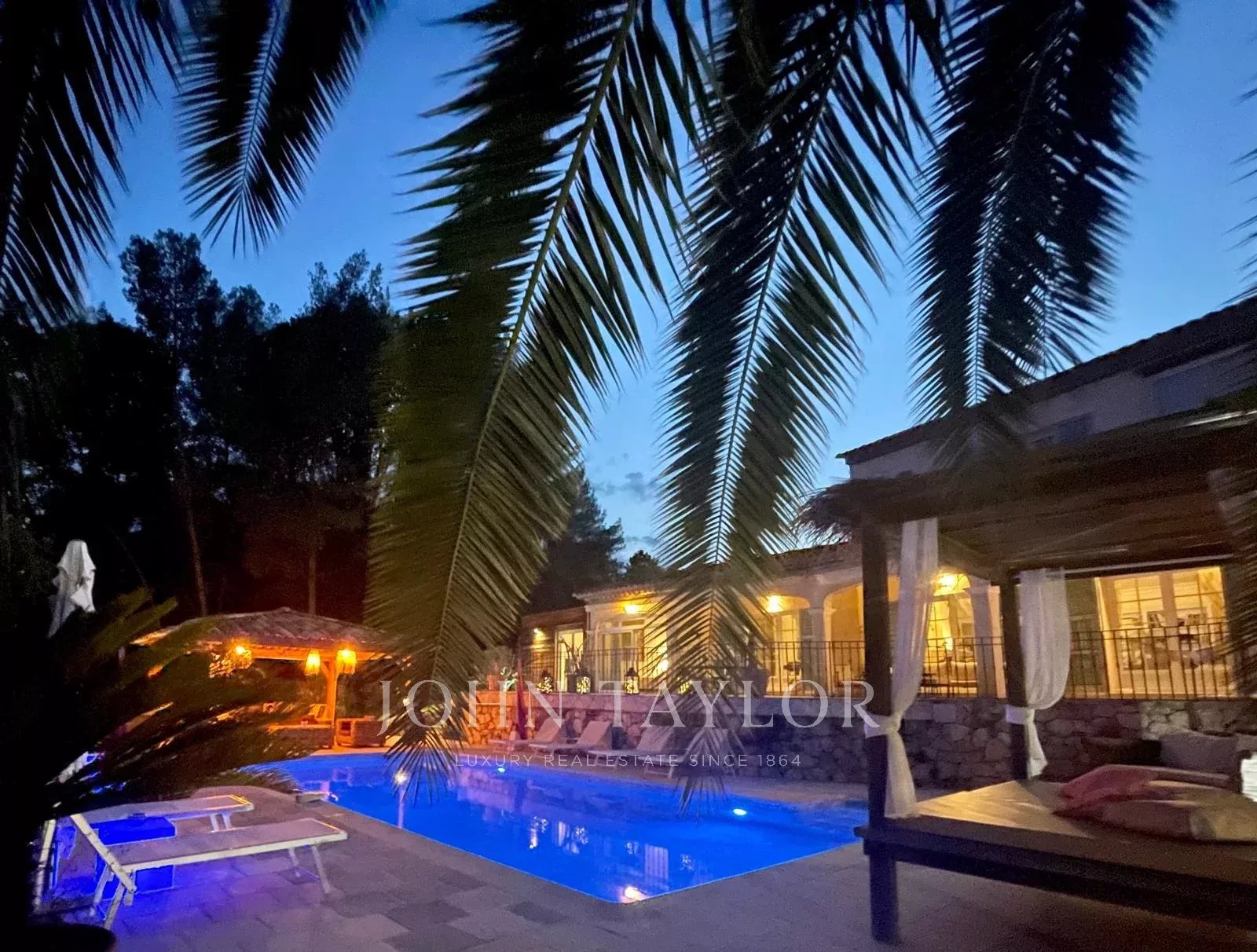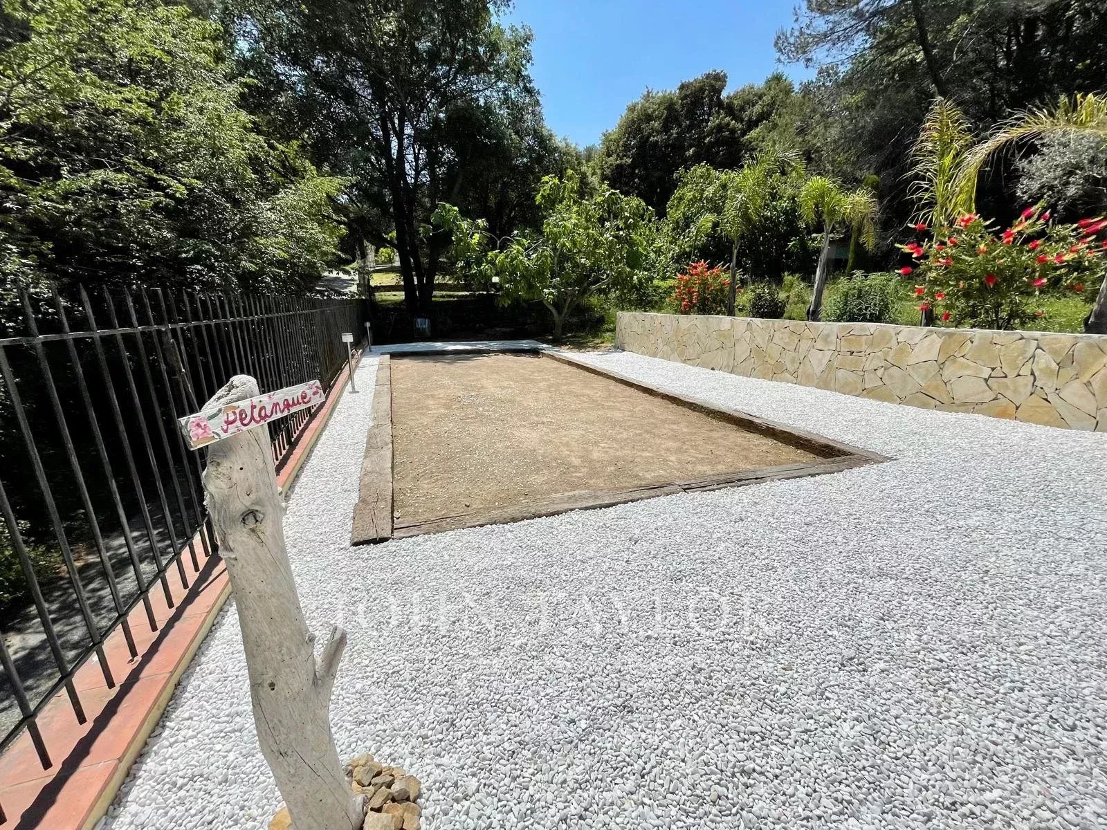 Alla fine di un viottolo privato, fuori dalla vista e in assoluta tranquillità, questa elegante casa provenzale di circa 260 m², immersa in 2.500 m² di terreno con piscina, vi accoglie in un contesto raro e privilegiato ai margini di un bosco, con vista parziale sul mare a seconda delle prospettive.