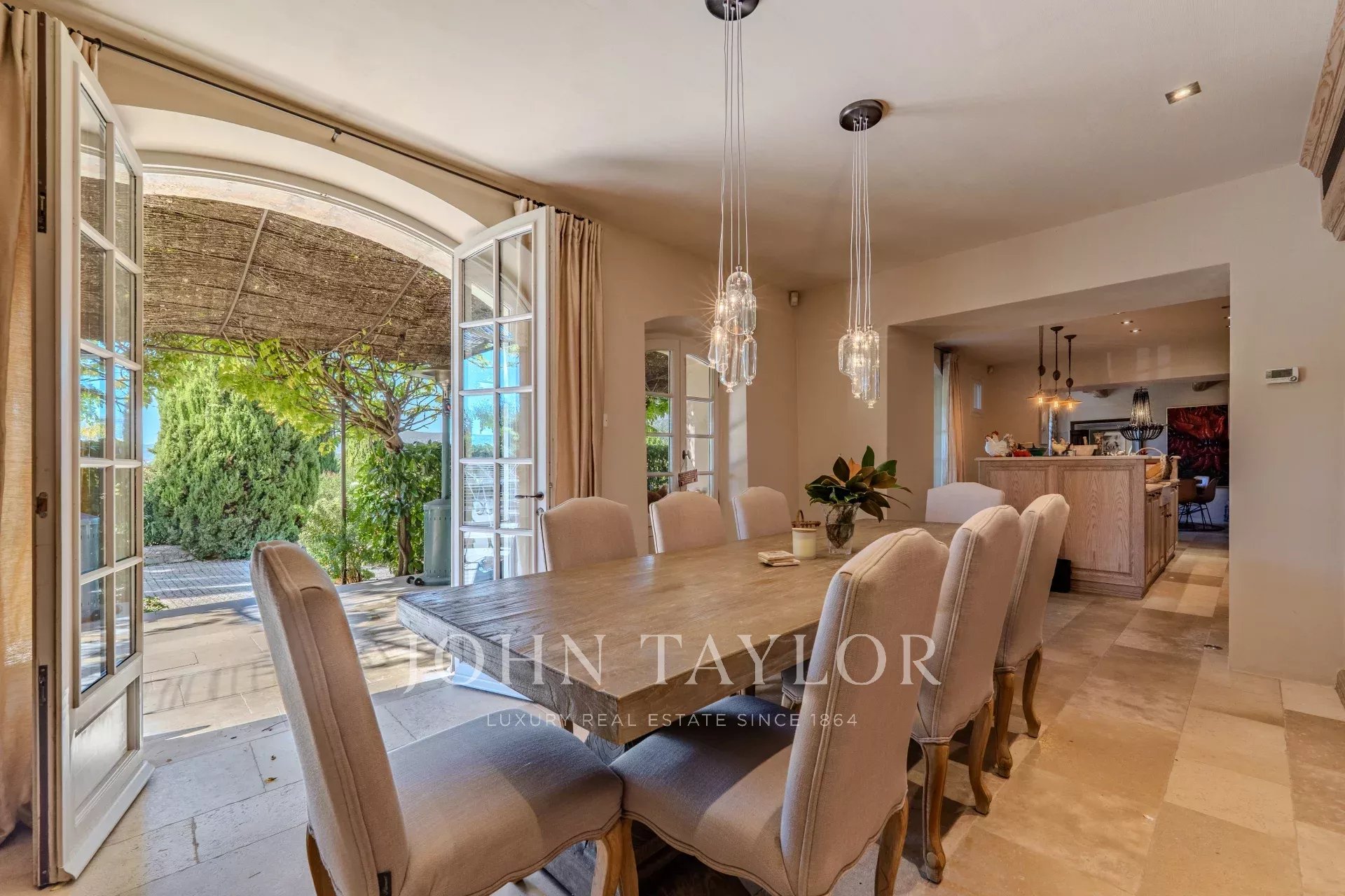 - Una caratteristica cucina provenzale con isola centrale, che si estende su una bucolica terrazza coperta sotto un pergolato, ideale per le colazioni estive