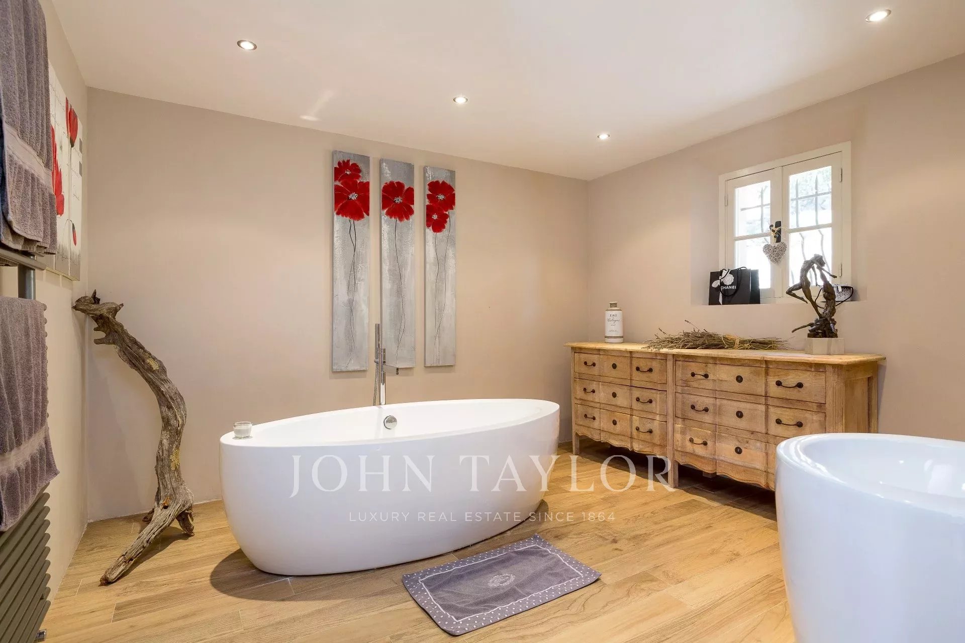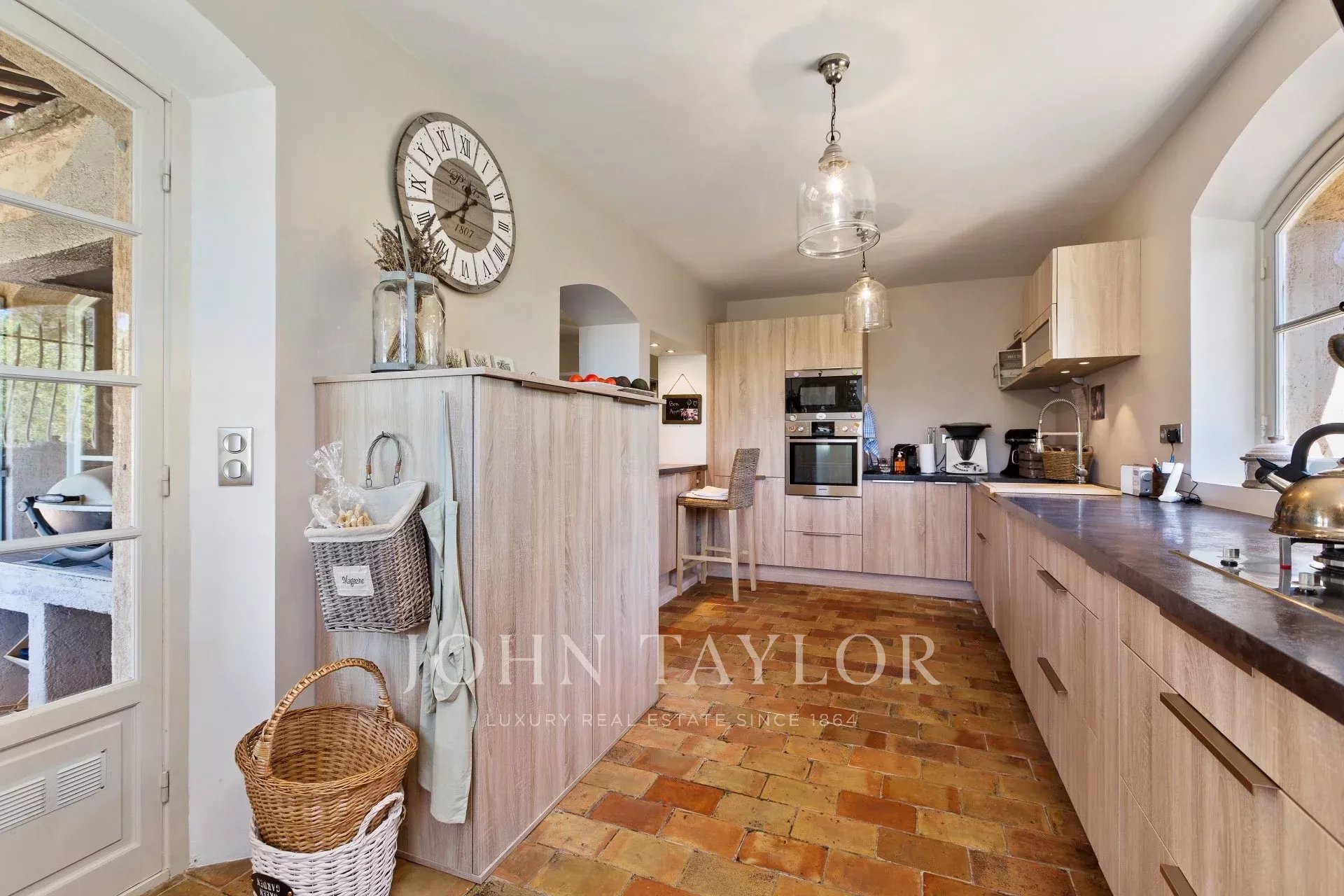 Composta da un incantevole doppio soggiorno provenzale con camino, una bella camera da letto padronale al piano terra con spogliatoio e bagno, una piacevole zona biblioteca e un altro studio, oltre ad altre tre spaziose camere da letto, tutte disposte intorno a un magnifico patio, questa proprietà offre volumi generosi per un ambiente di vita eccezionale e rilassante.
