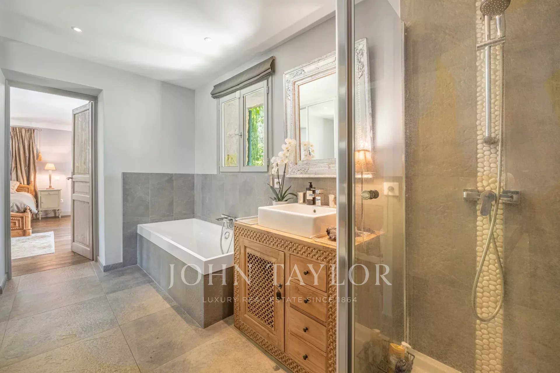 Gli spazi esterni sono all'altezza di questo scenario idilliaco: una piscina riscaldata per la villa principale, una palestra dedicata al benessere e un campo da pétanque, simbolo dell'arte di vivere francese.