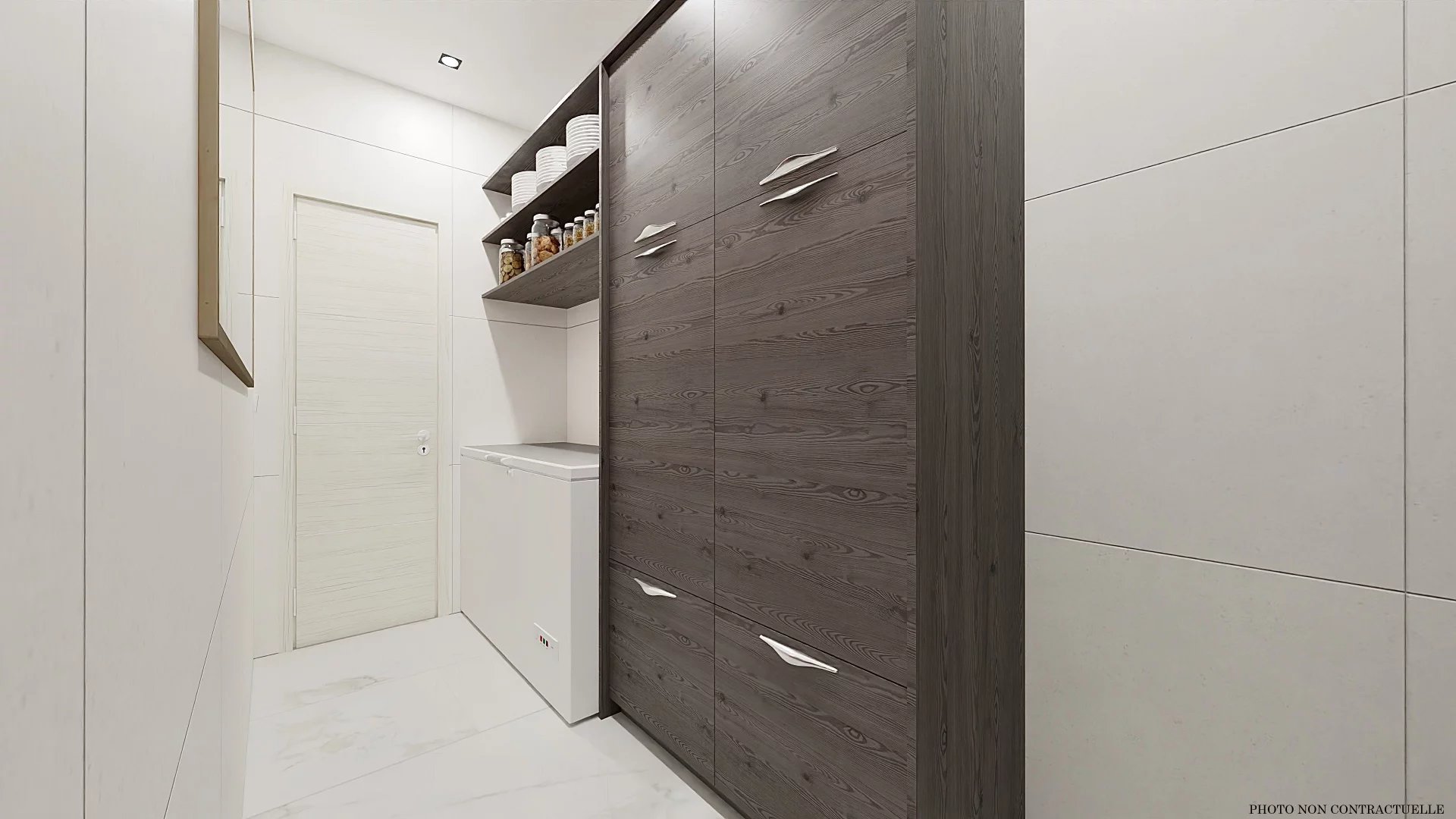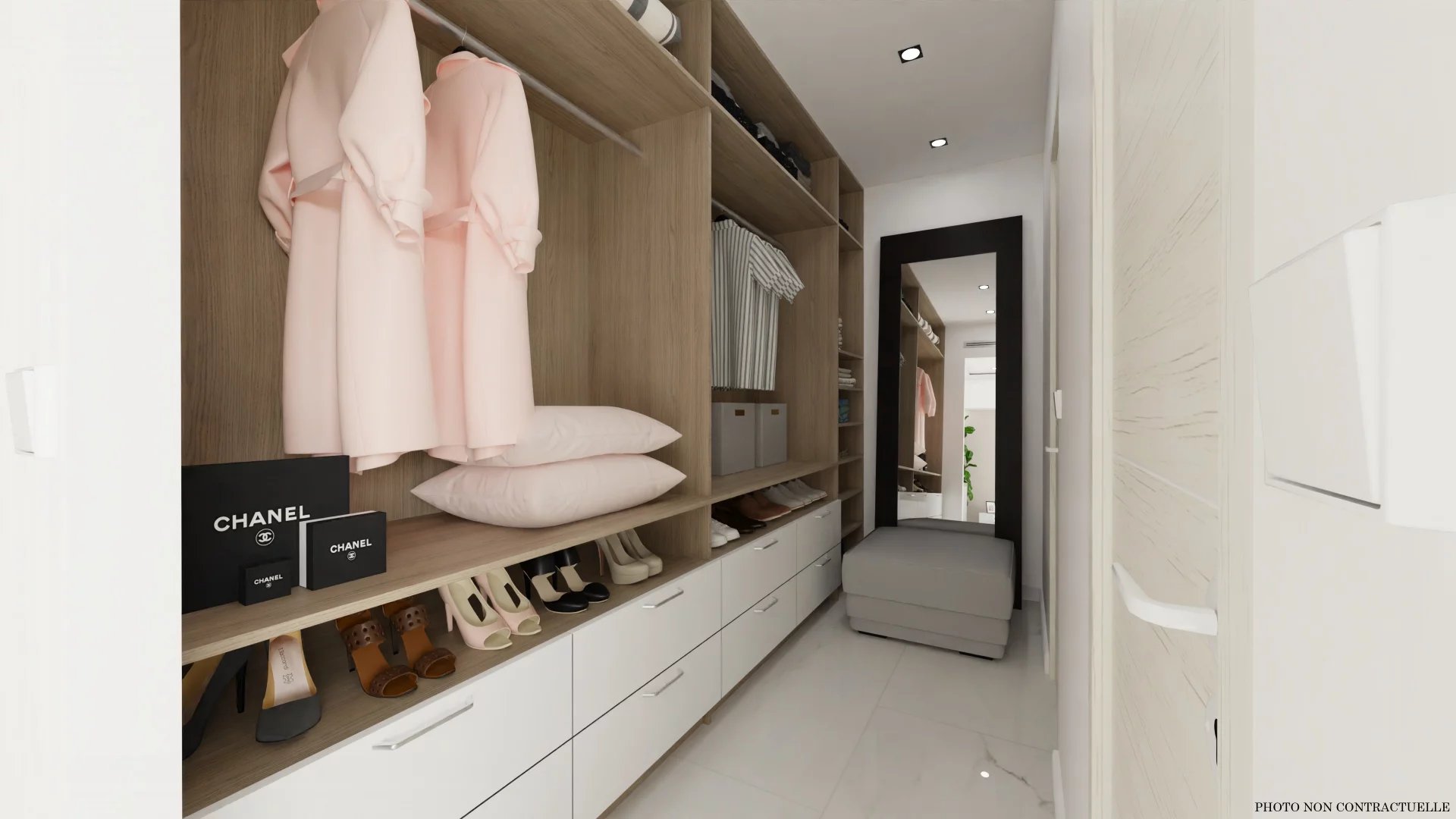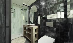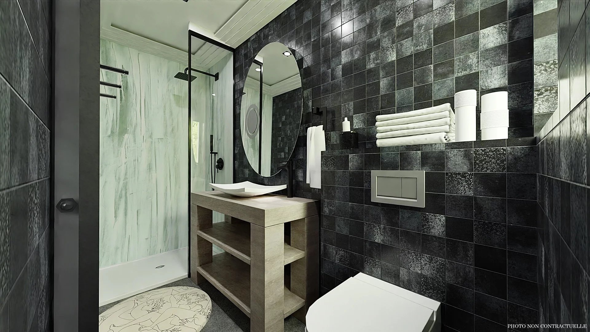 Ampia zona di accoglienza di 70 m² con soggiorno/sala da pranzo e cucina a vista; camera da letto con doccia, WC e spogliatoio.