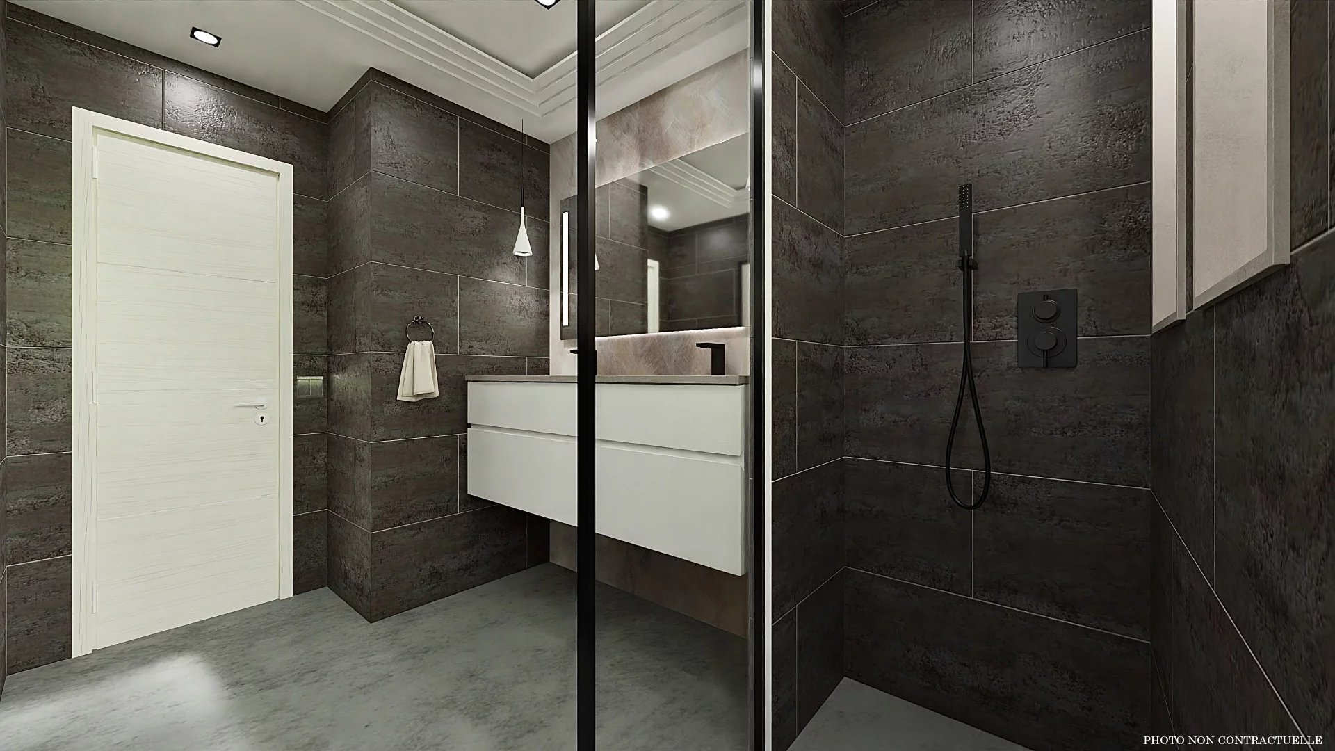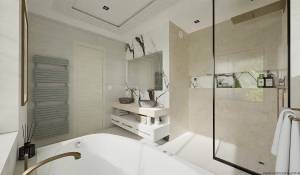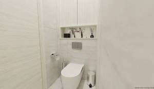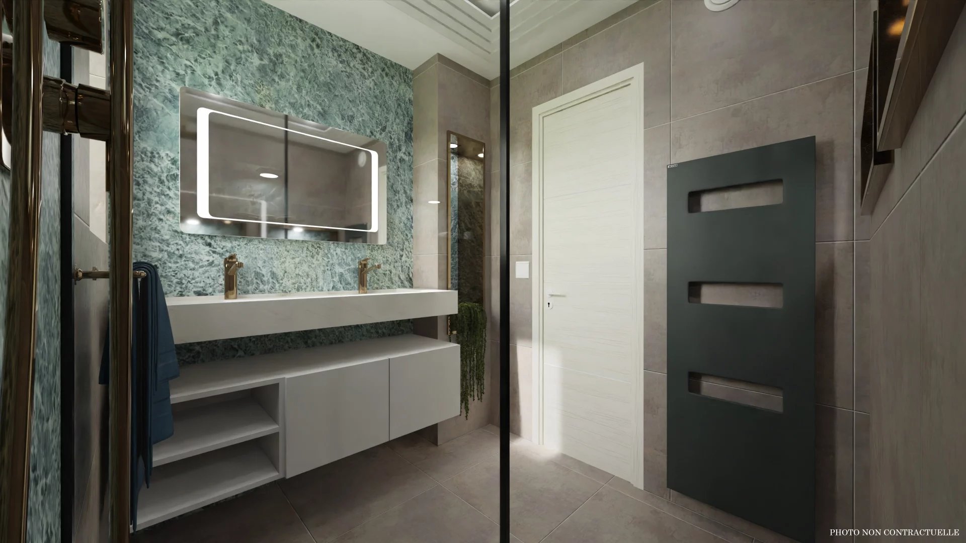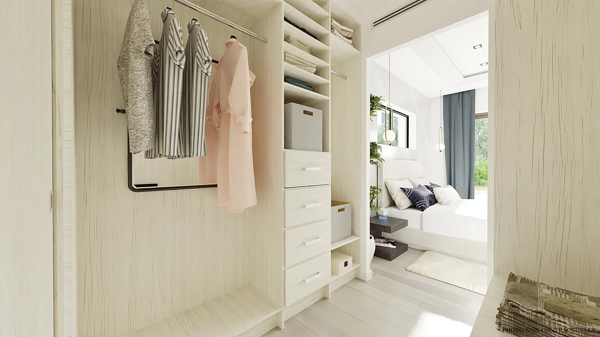 Ampia zona di accoglienza di 70 m² con soggiorno/sala da pranzo e cucina a vista; camera da letto con doccia, WC e spogliatoio.