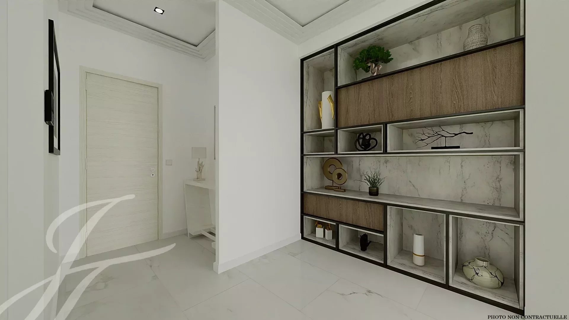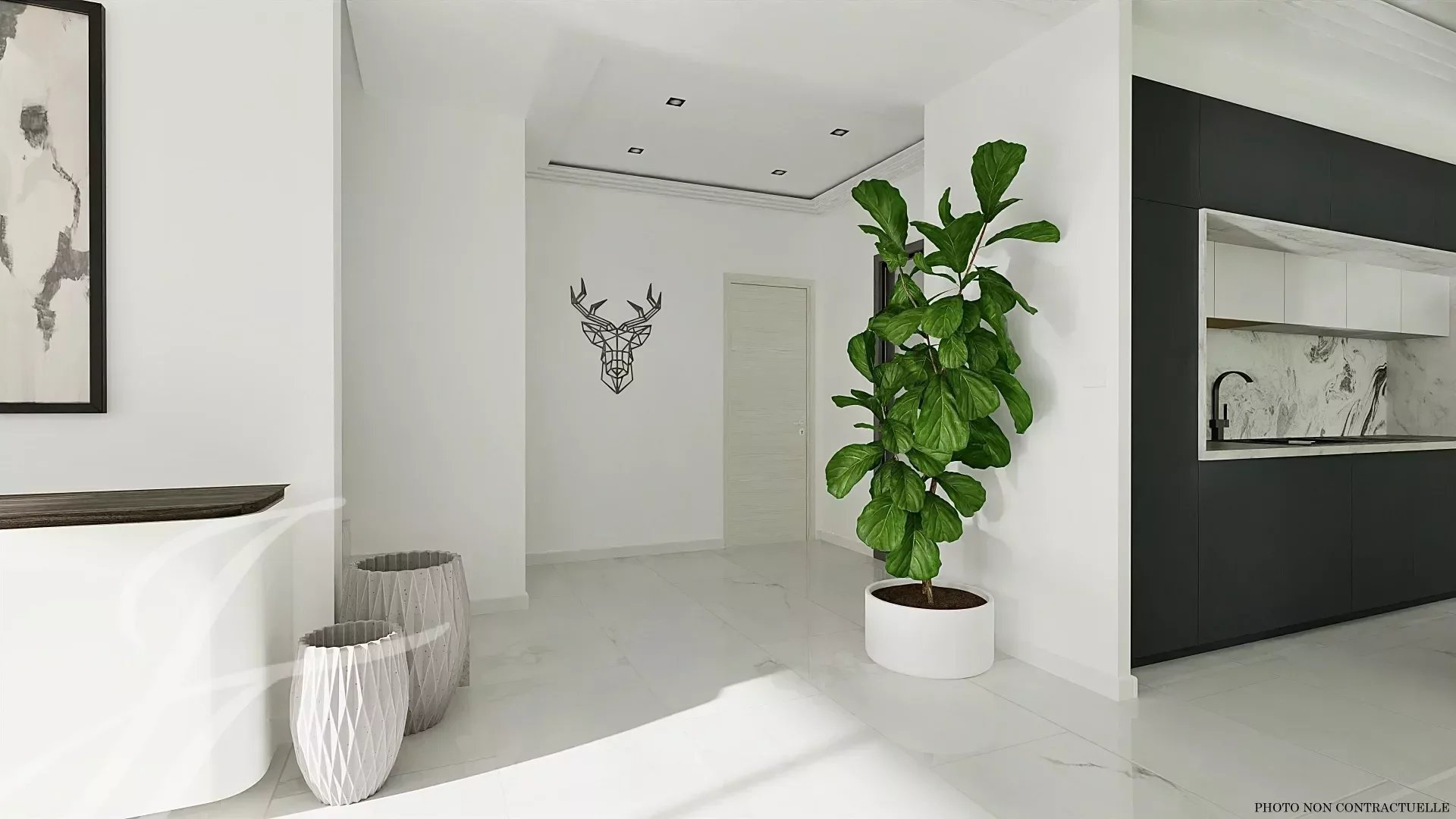 Ampia zona di accoglienza di 70m² con soggiorno/sala da pranzo, cucina a vista, camera da letto con spogliatoio, bagno e toilette.