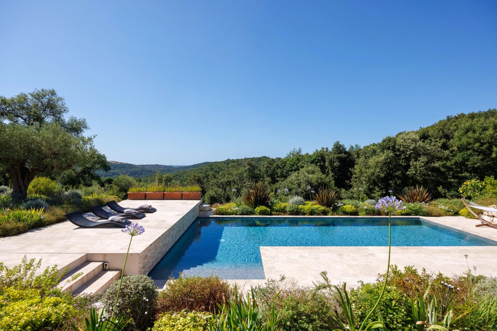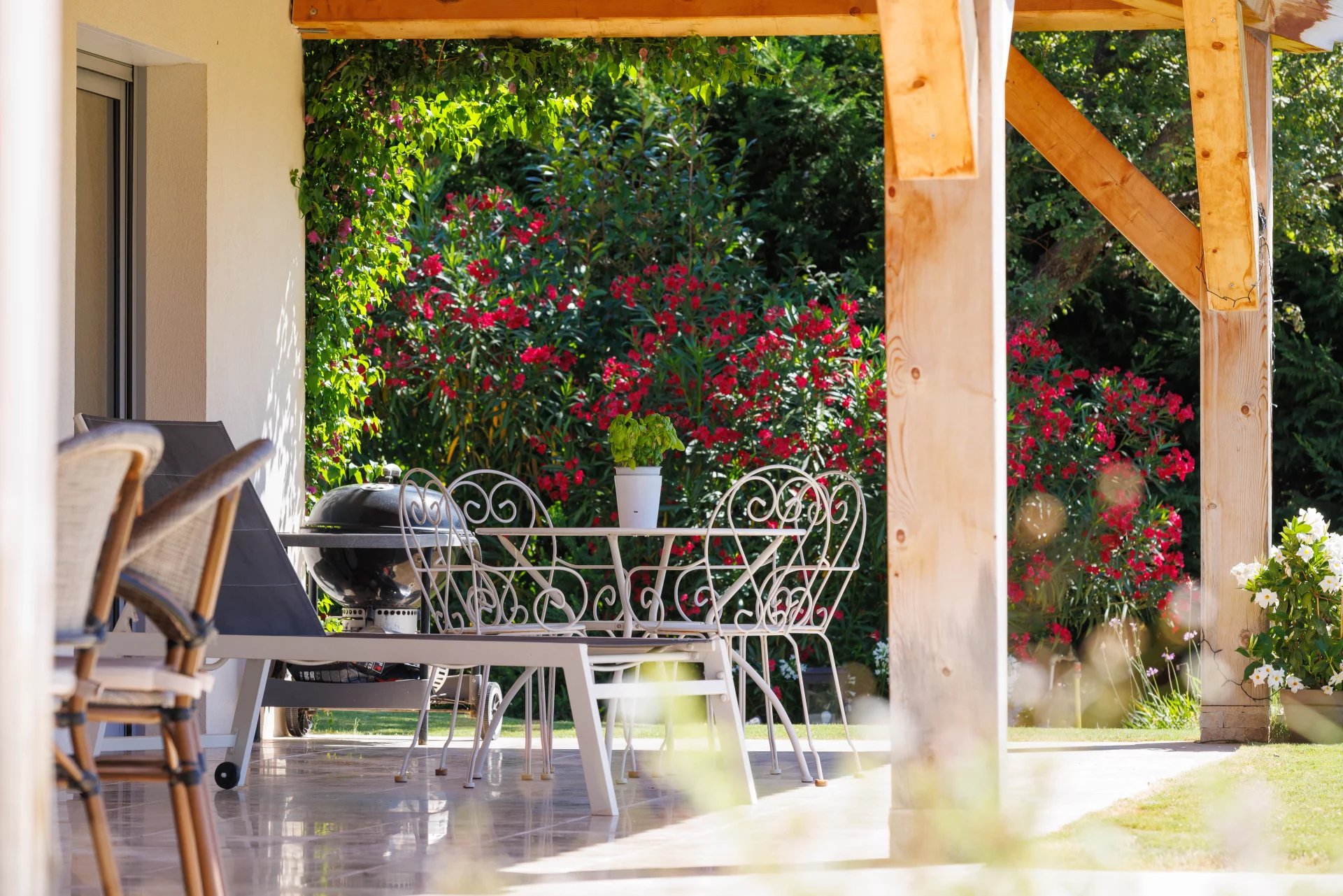 Il giardino paesaggistico di 2.430 m², progettato da un allievo del noto architetto paesaggista Jean MUS, è sontuoso e vanta una magnifica piscina di acqua salata 12x5 riscaldata e coperta, circondata da ampie e confortevoli terrazze e da un campo da bocce. Le varie aree sono molto curate e permettono agli adulti di rilassarsi e ai più piccoli di divertirsi con giochi memorabili!