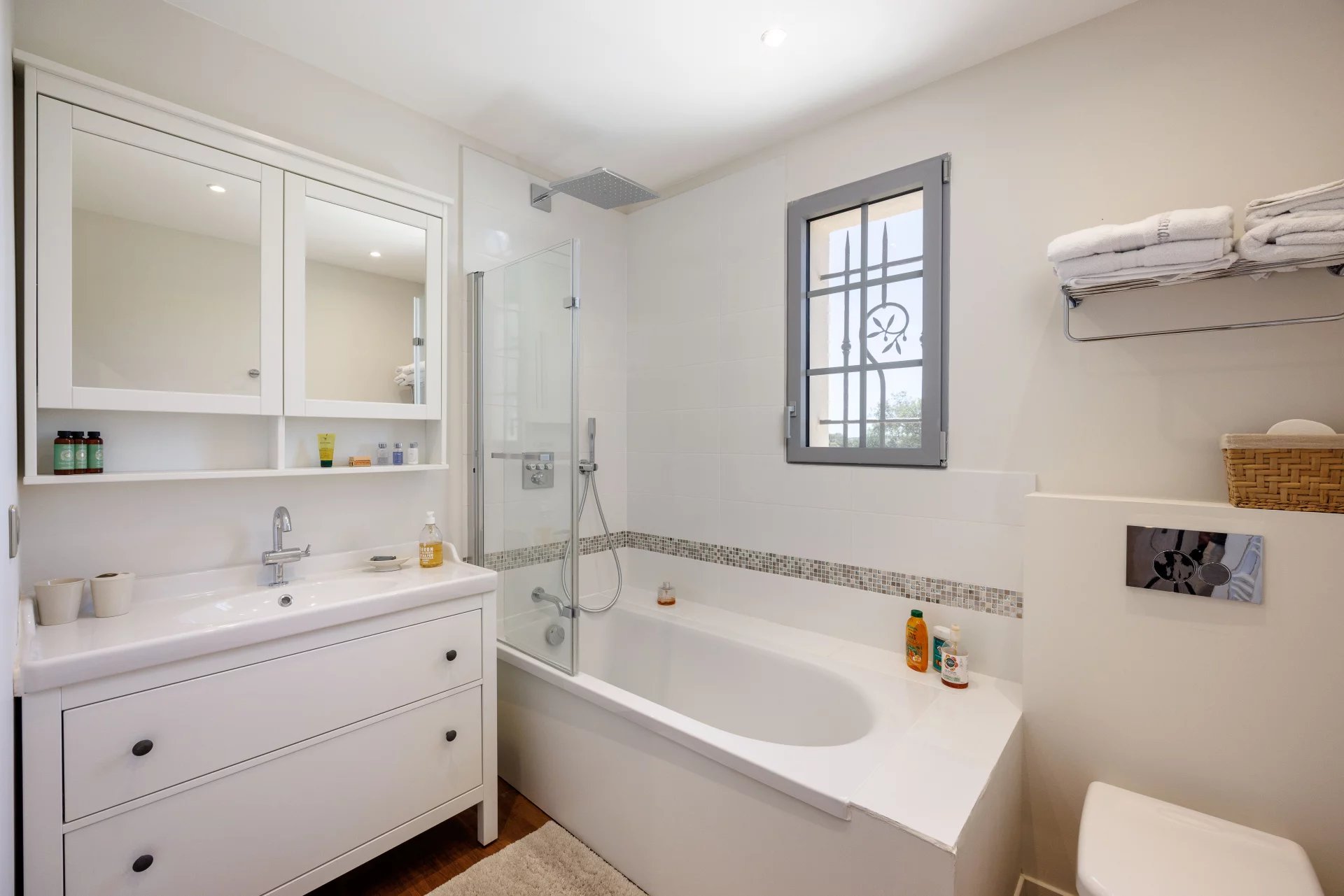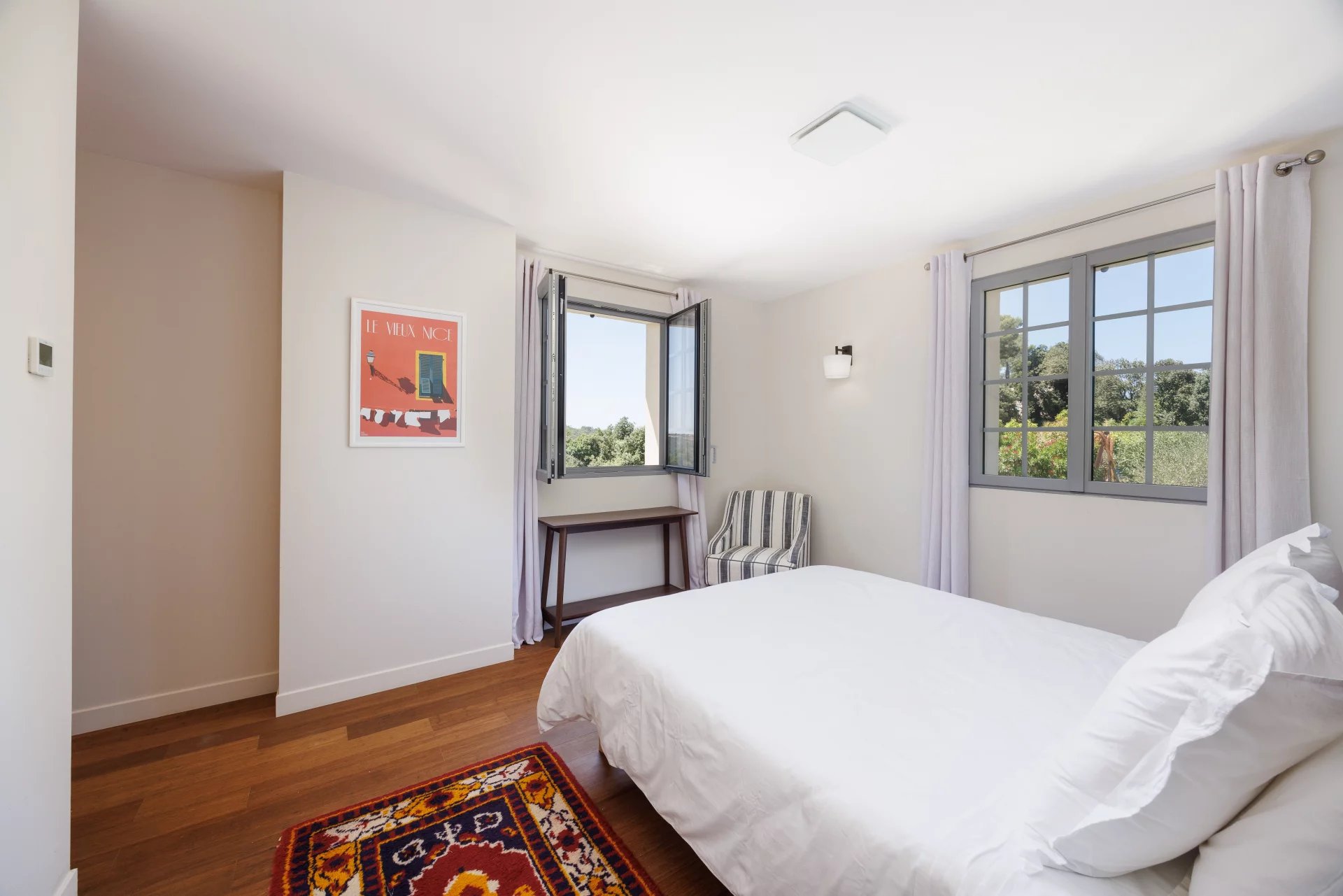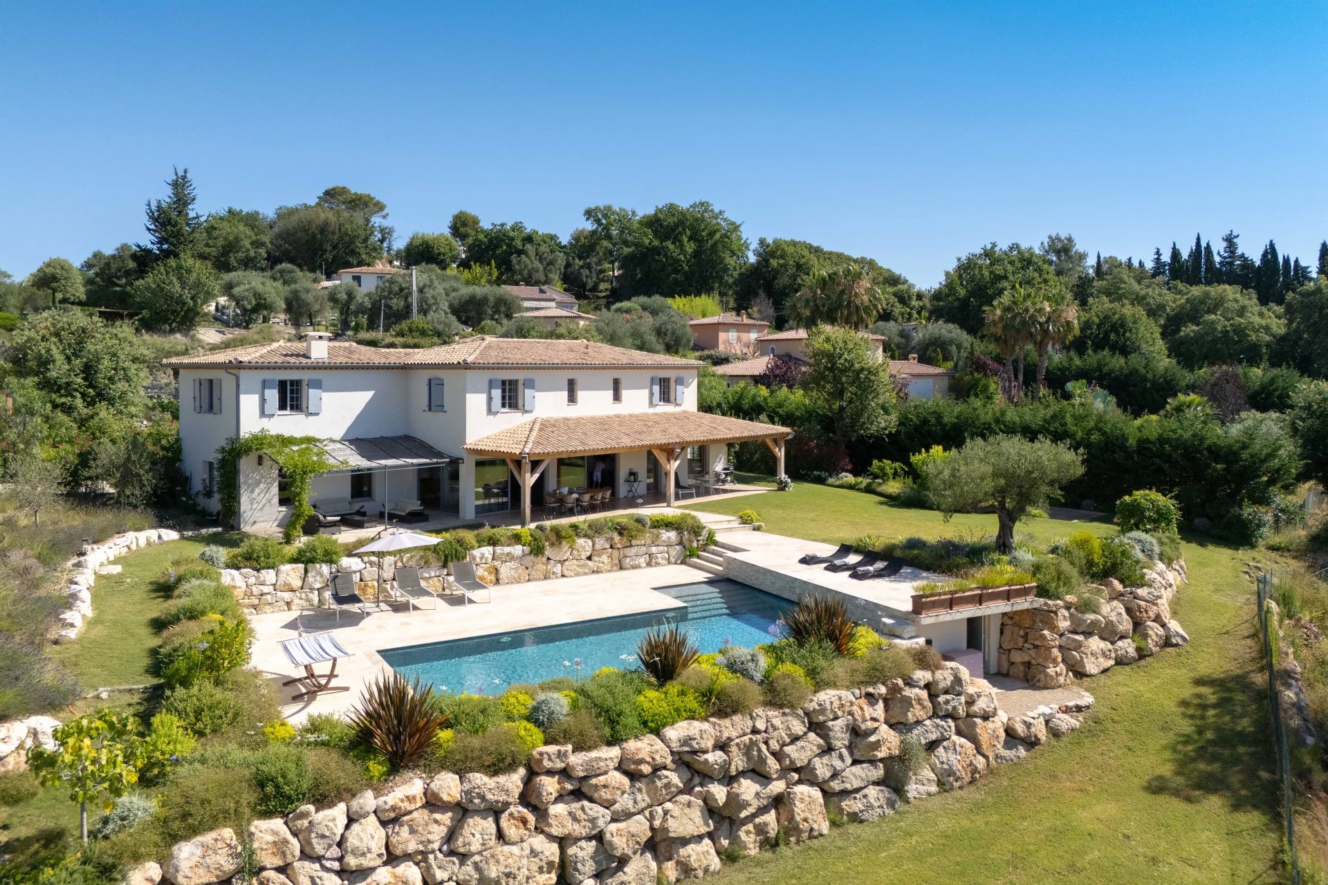 Situata in una tranquilla zona residenziale di Roquefort-les-Pins, a pochi minuti dal centro del paese eppure in assoluta tranquillità, questa imponente bastide di nuova costruzione, con una superficie totale di circa 417 m², vi conquisterà con la sua esposizione a sud, la sua vista ininterrotta sulle colline, sulla foresta e fino al mare, e il suo fascino provenzale chic che unisce i comfort moderni.