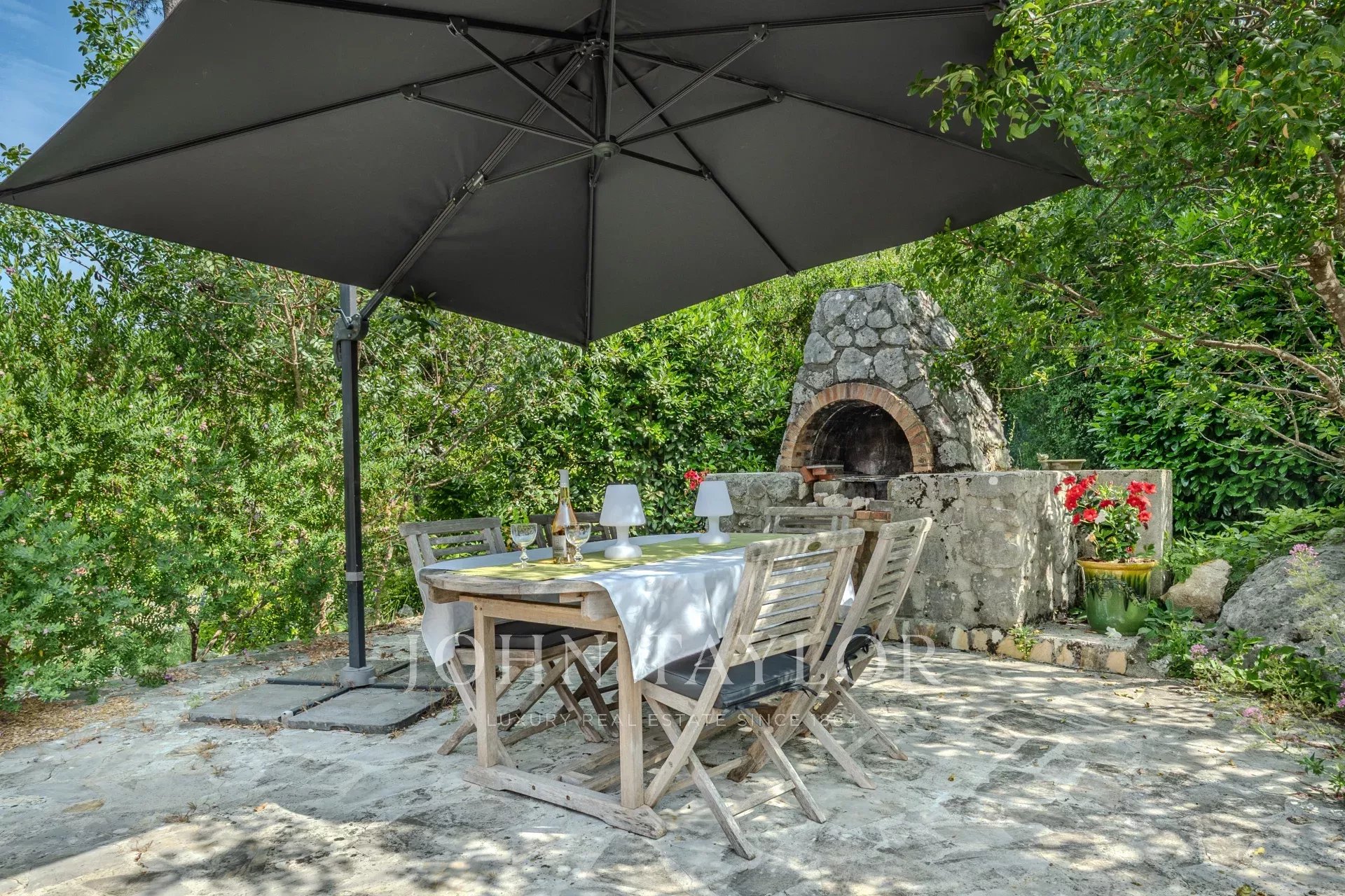 Costruita su un ampio terreno pianeggiante di 3.171 m², la proprietà gode di un'esposizione a sud e di un giardino provenzale ben curato e piantumato con specie mediterranee, completo di laghetto e fontana che conferiscono un senso di serenità e fascino.