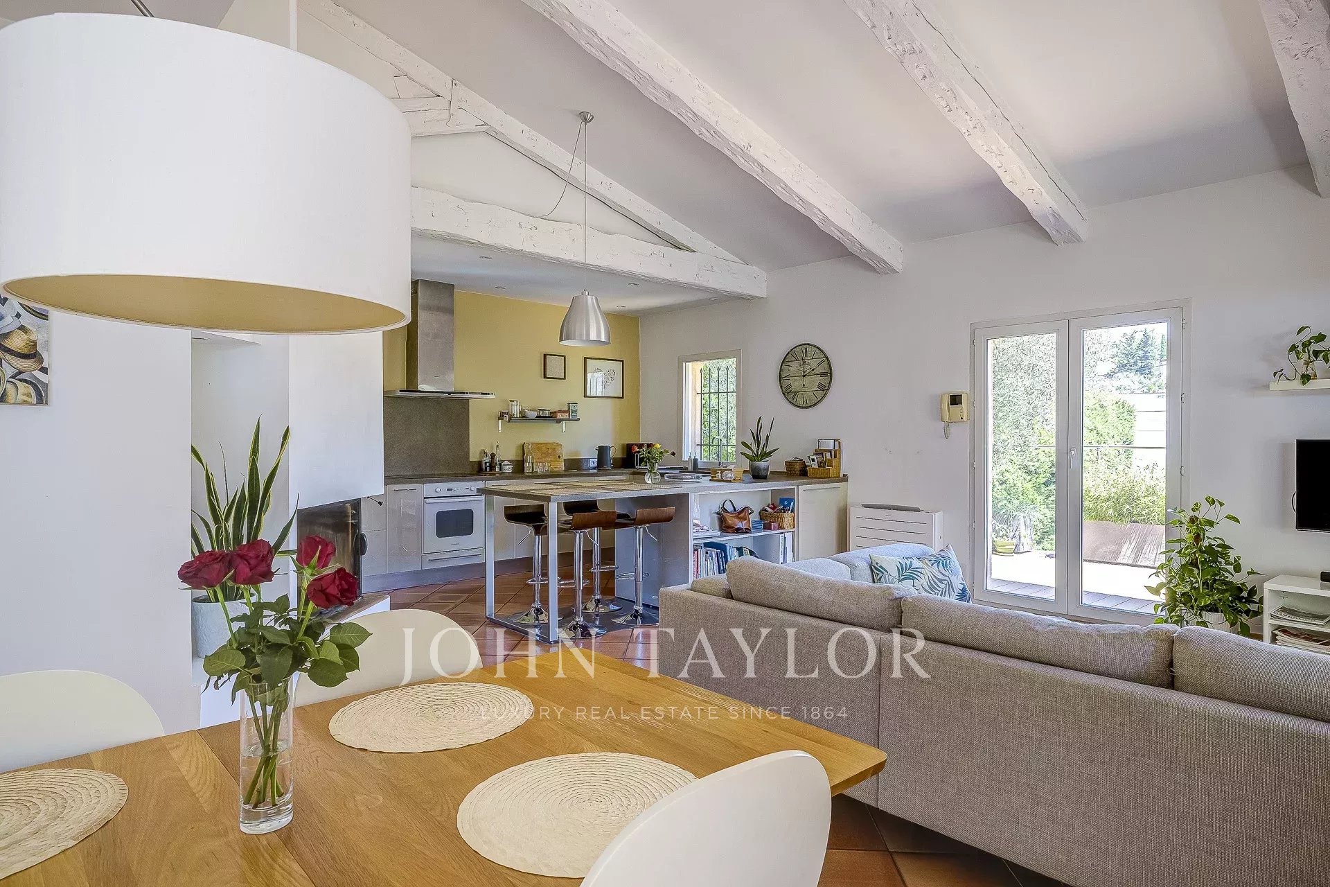 Il cuore della casa è costituito da un ampio soggiorno luminoso, impreziosito da un soffitto a cattedrale, e da una grande cucina a pianta aperta che invita alla convivialità.