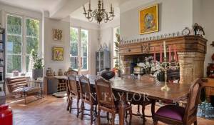 La vasta cucina, vero cuore pulsante della casa, seduce per la sua atmosfera familiare; il suo magnifico camino monumentale e il piano di cottura di lusso La Cornue, raro e perfettamente funzionante, le conferiscono carattere e autenticità.