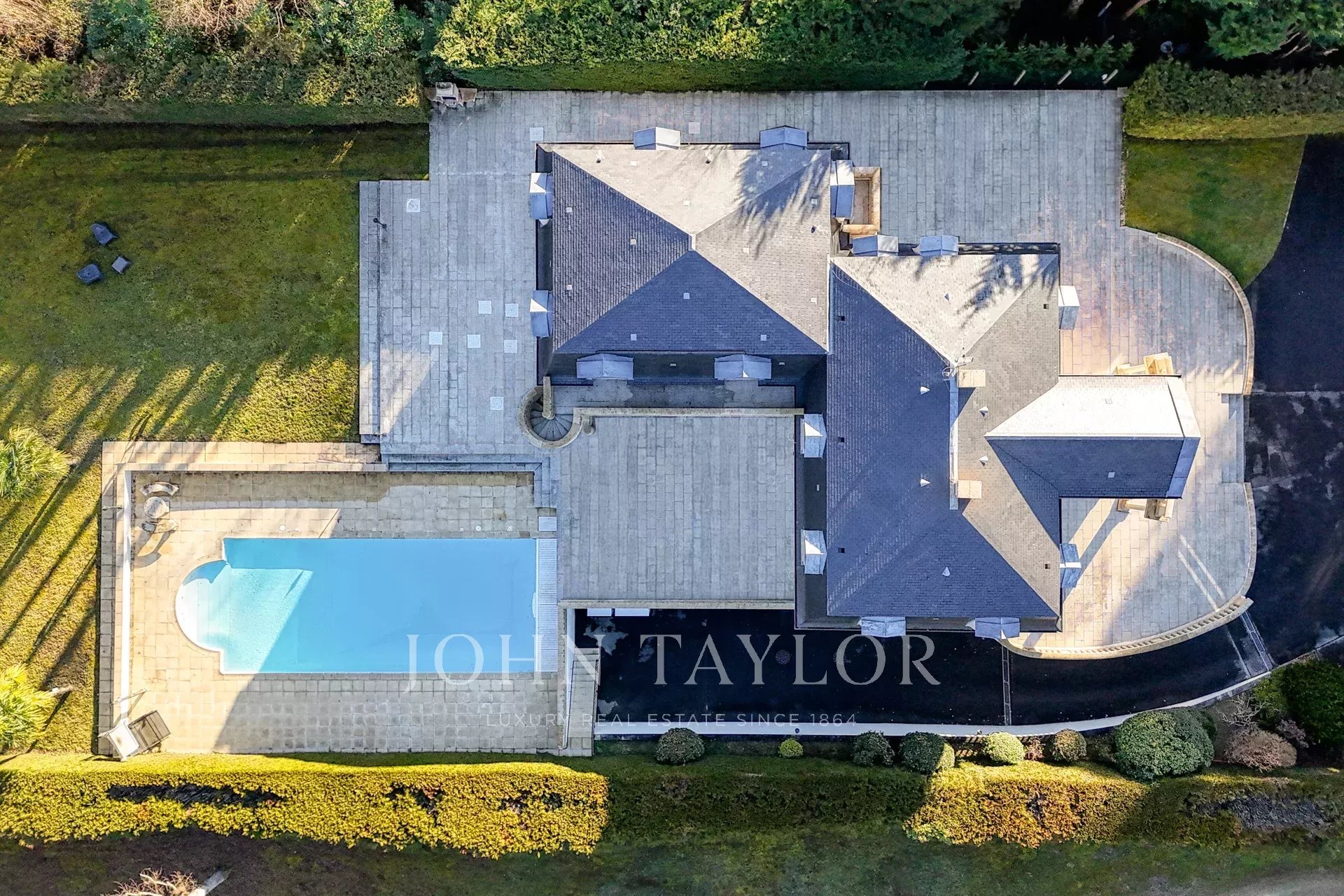 Costruita nel 1995, questa Mansart di 562 m² è disposta su tre livelli e beneficia di un ampio giardino di 4.732 m² con piscina riscaldata.