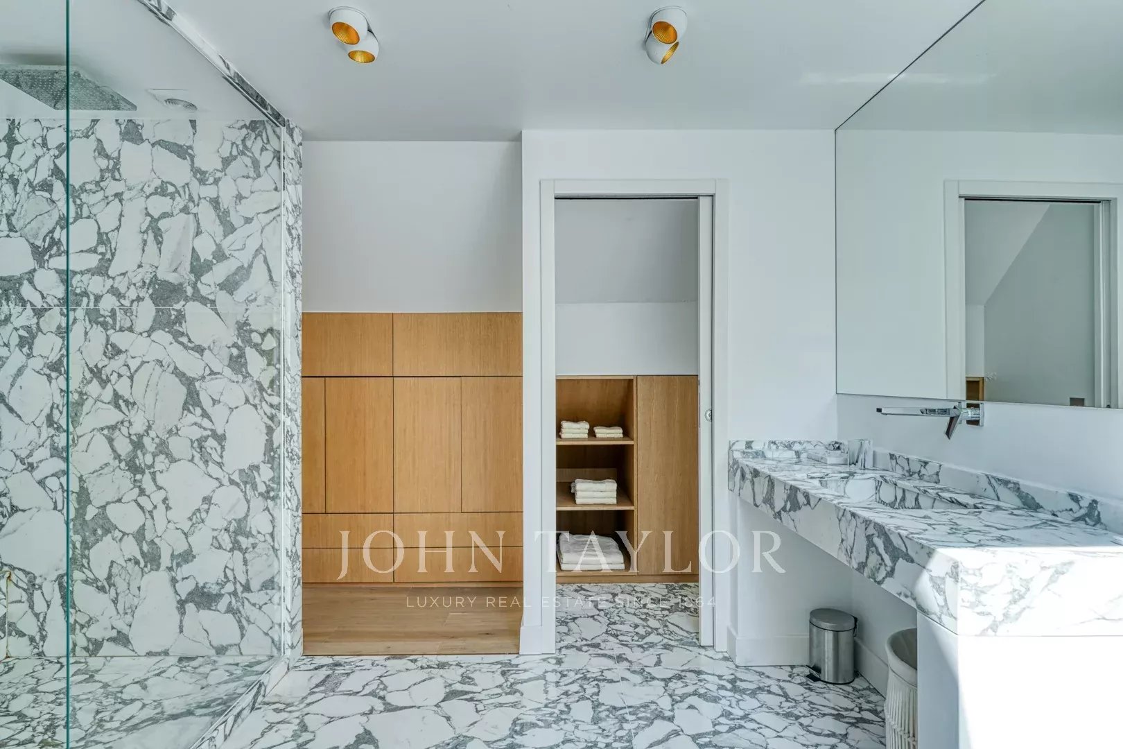 All'esterno, l'illuminazione crea un'atmosfera unica nel vasto spazio verde, ideale per momenti di relax e svago. Una piscina e una sauna completano questa residenza esclusiva, offrendoti un’esperienza abitativa senza pari in una cornice naturale incantevole.