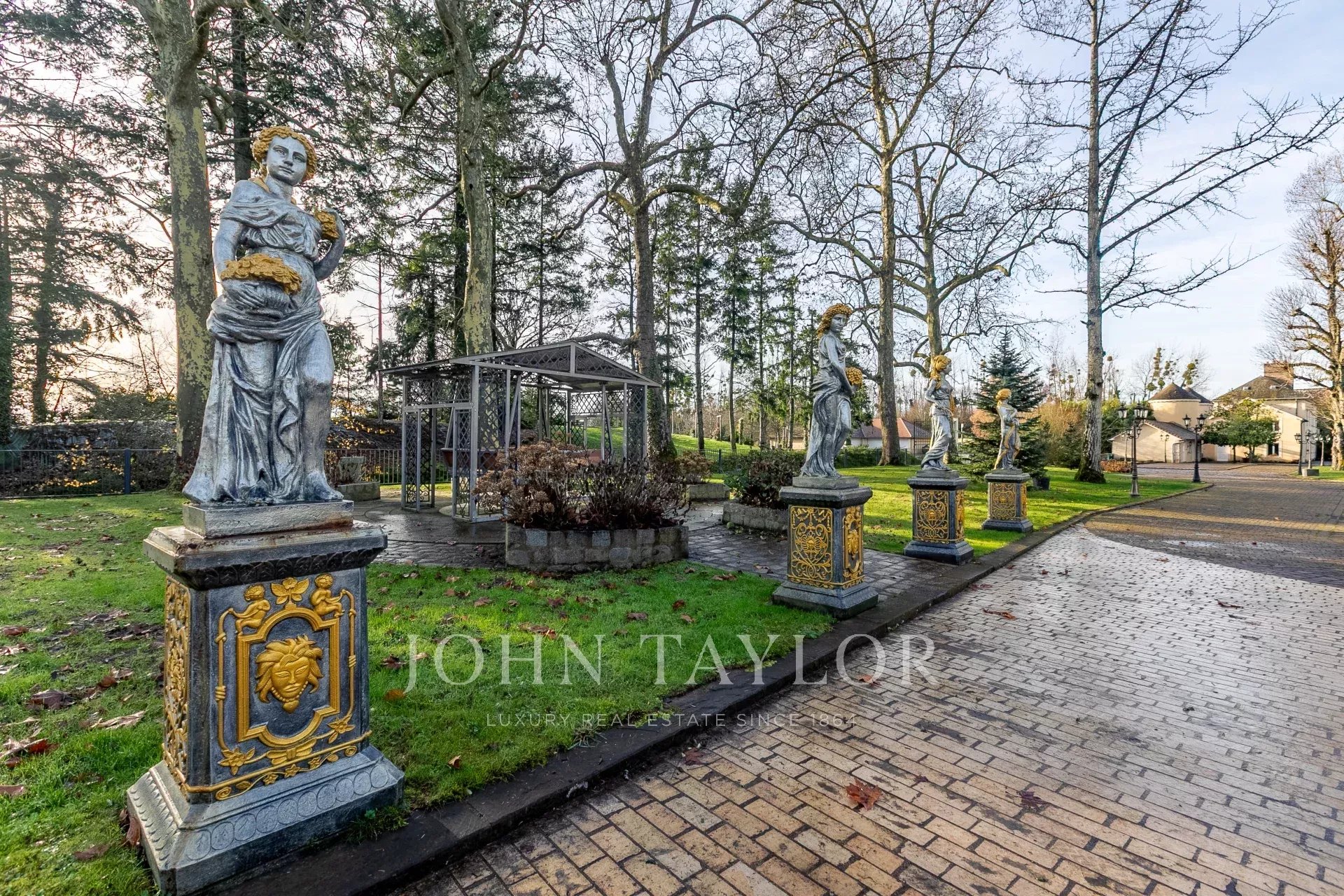 All'esterno, il castello vanta un ampio parco dotato di un sistema di irrigazione automatico e illuminazione esterna, perfetto per eventi o momenti di relax. C'è anche una comoda casa per il custode, un portico auto e un cancello elettrico che assicura privacy e sicurezza.