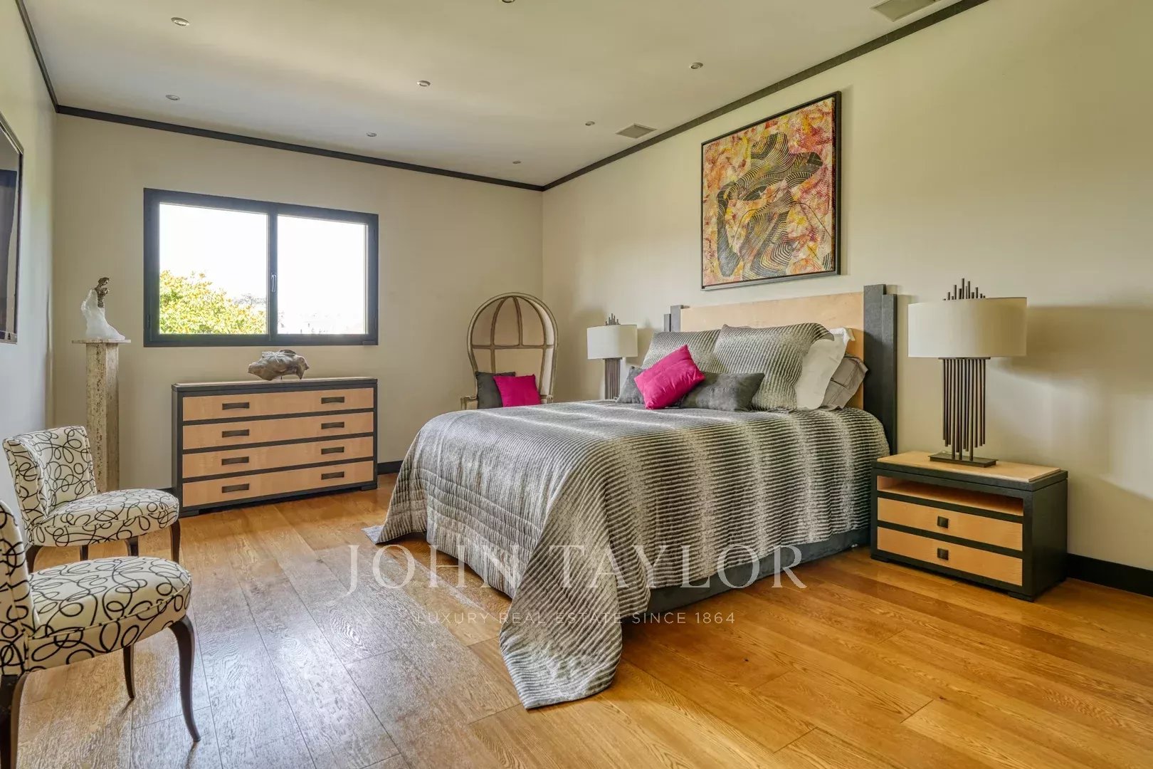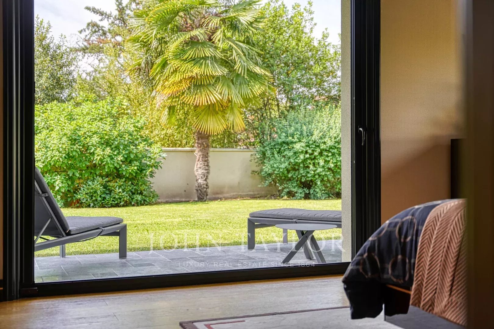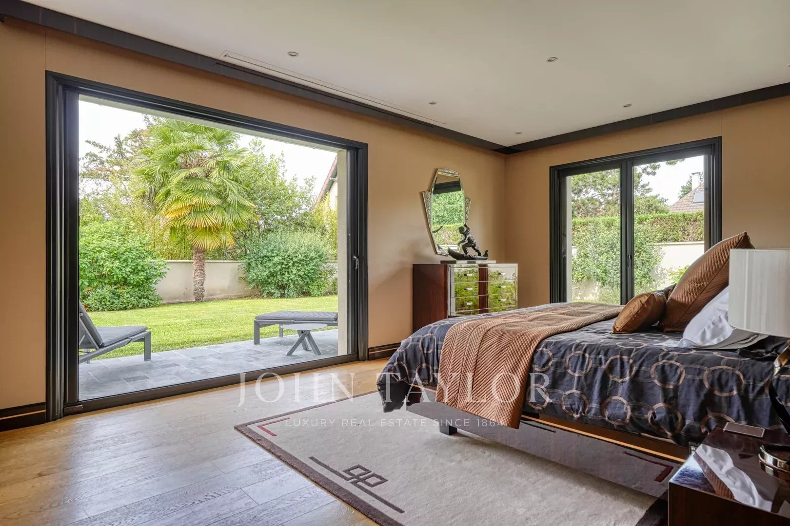 - Una suite composta da una bella camera da letto con vista sul giardino, uno spogliatoio, un bagno e una toilette separata.