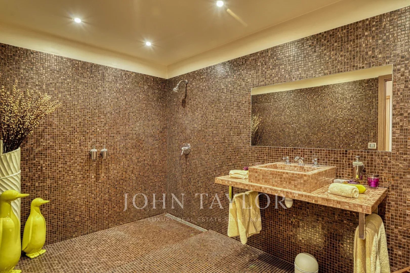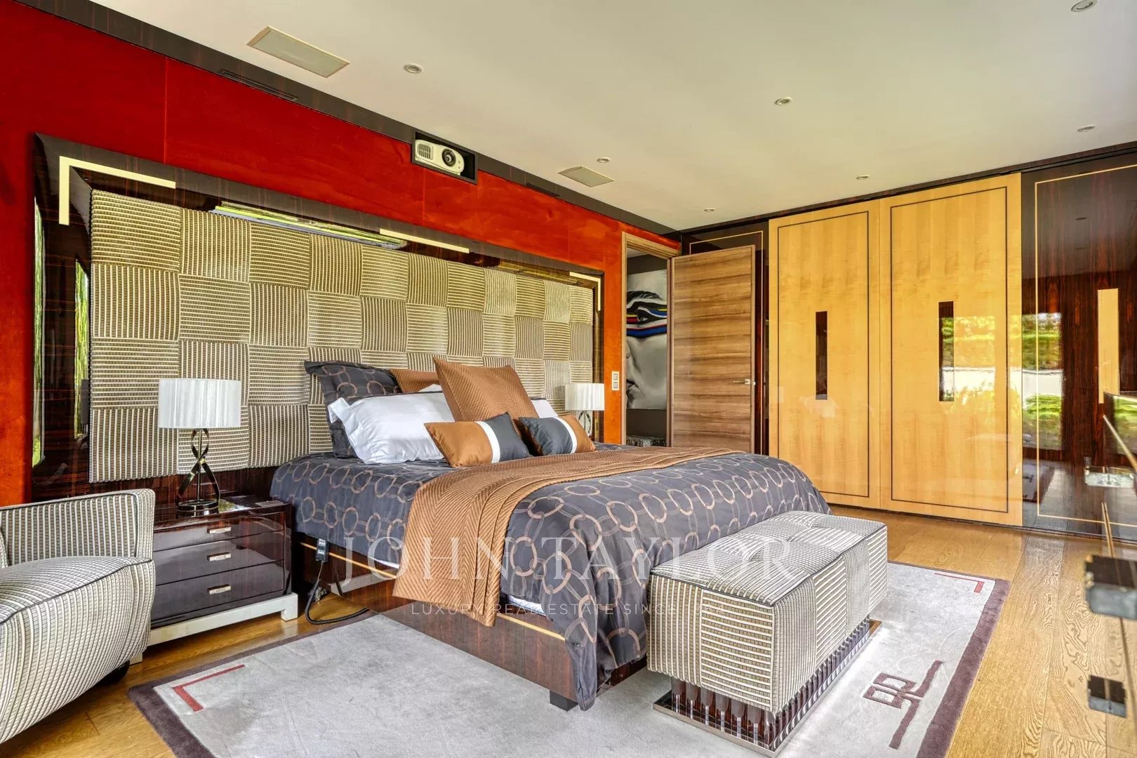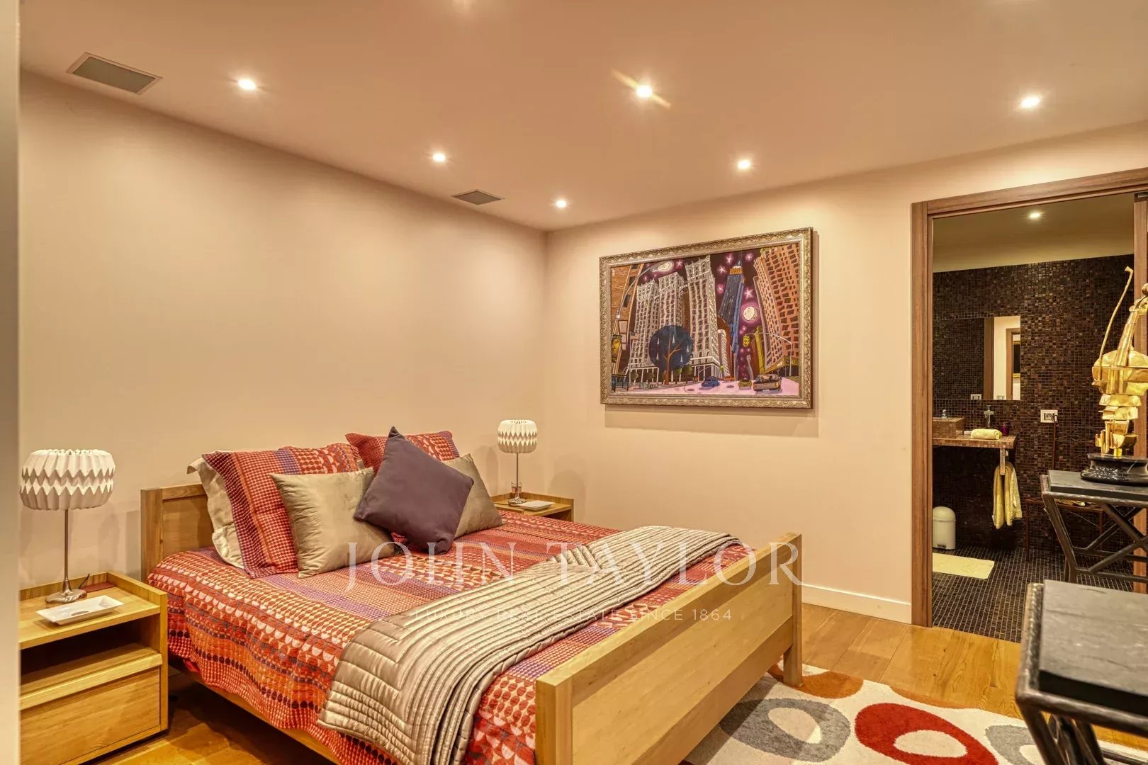- Una suite composta da una bella camera da letto con vista sul giardino, uno spogliatoio, un bagno e una toilette separata.