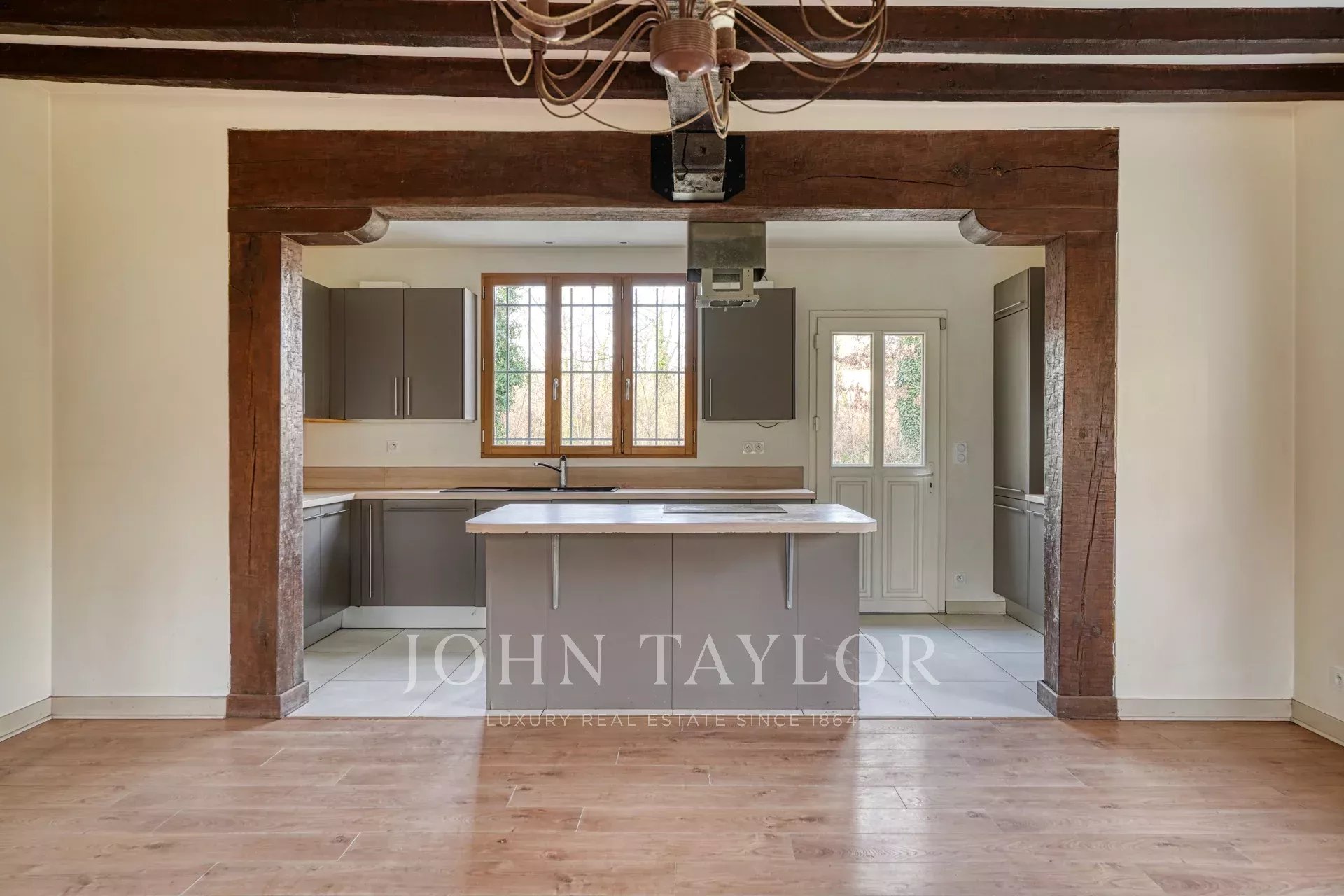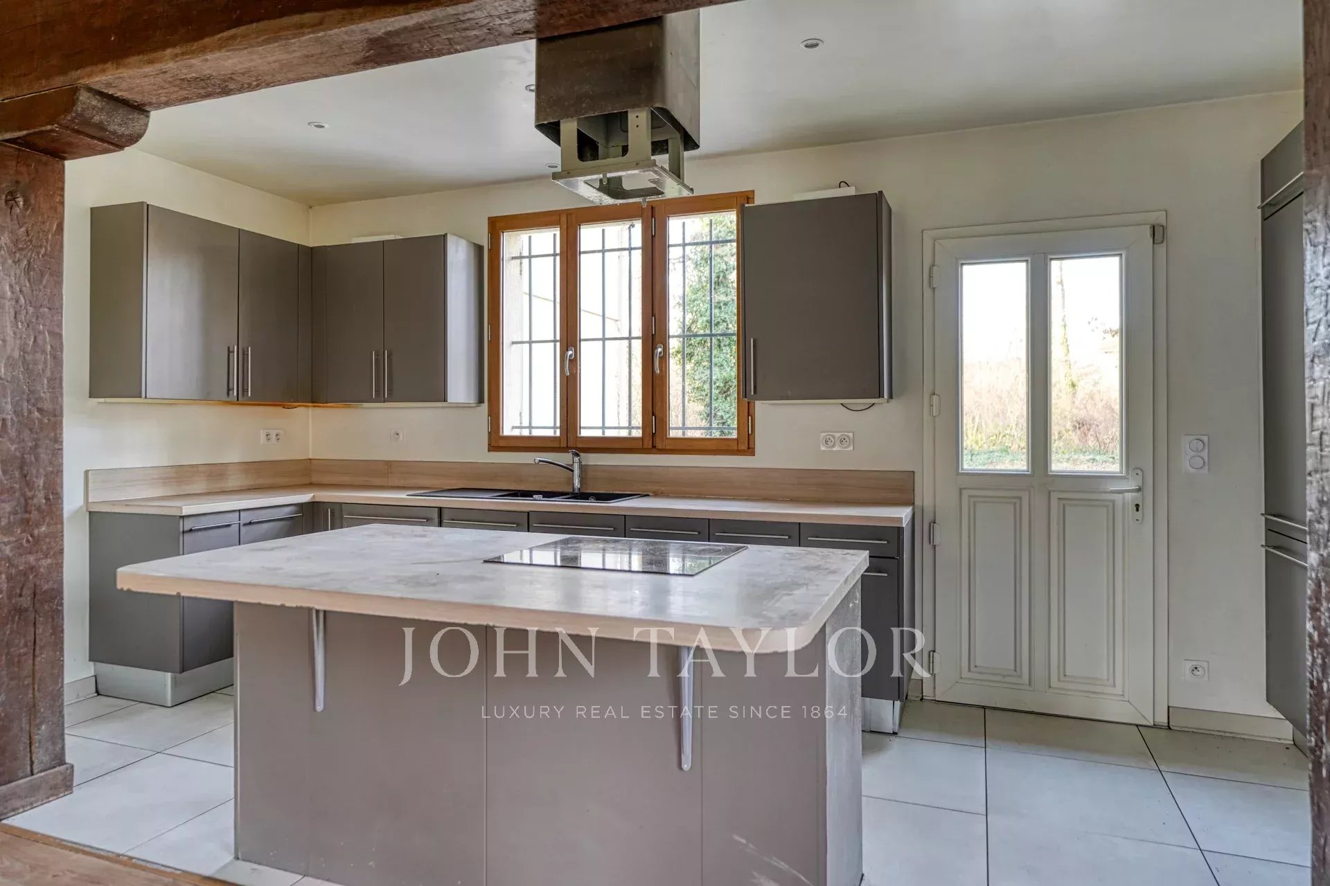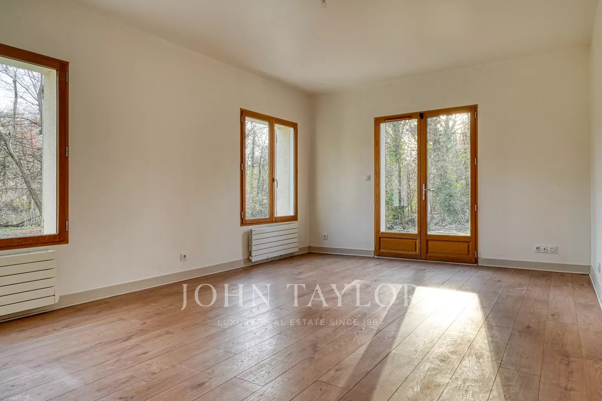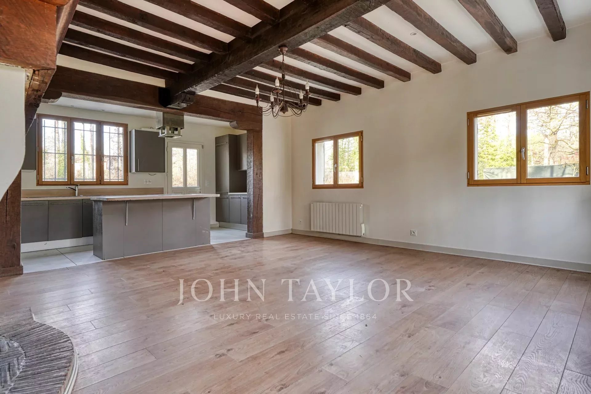 A Rochefort-en-Yvelines, a circa 45 km a sud-ovest di Parigi, John Taylor vi propone una casa contemporanea con 176 m² di superficie abitabile, immersa in 1,6 ettari di verde.