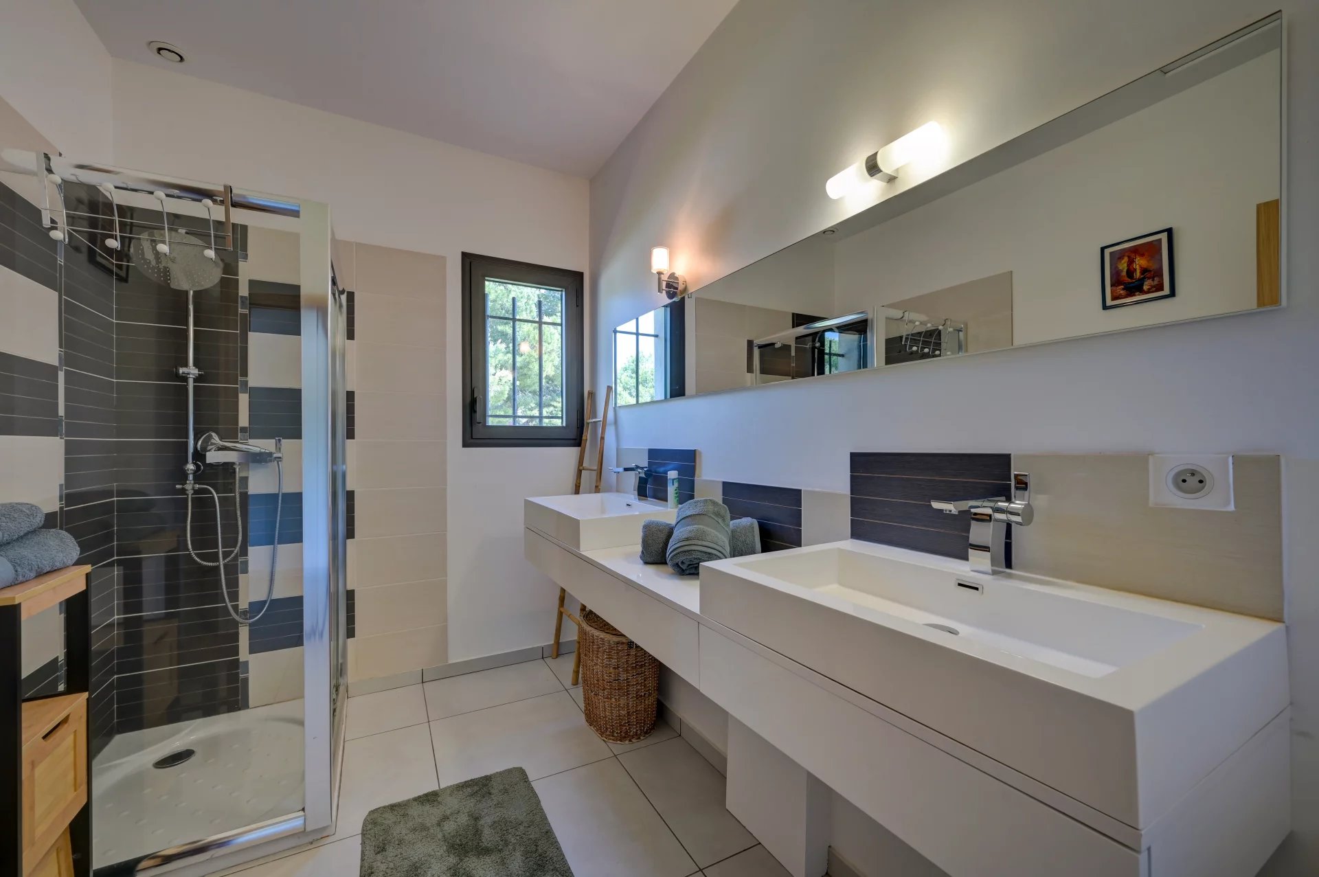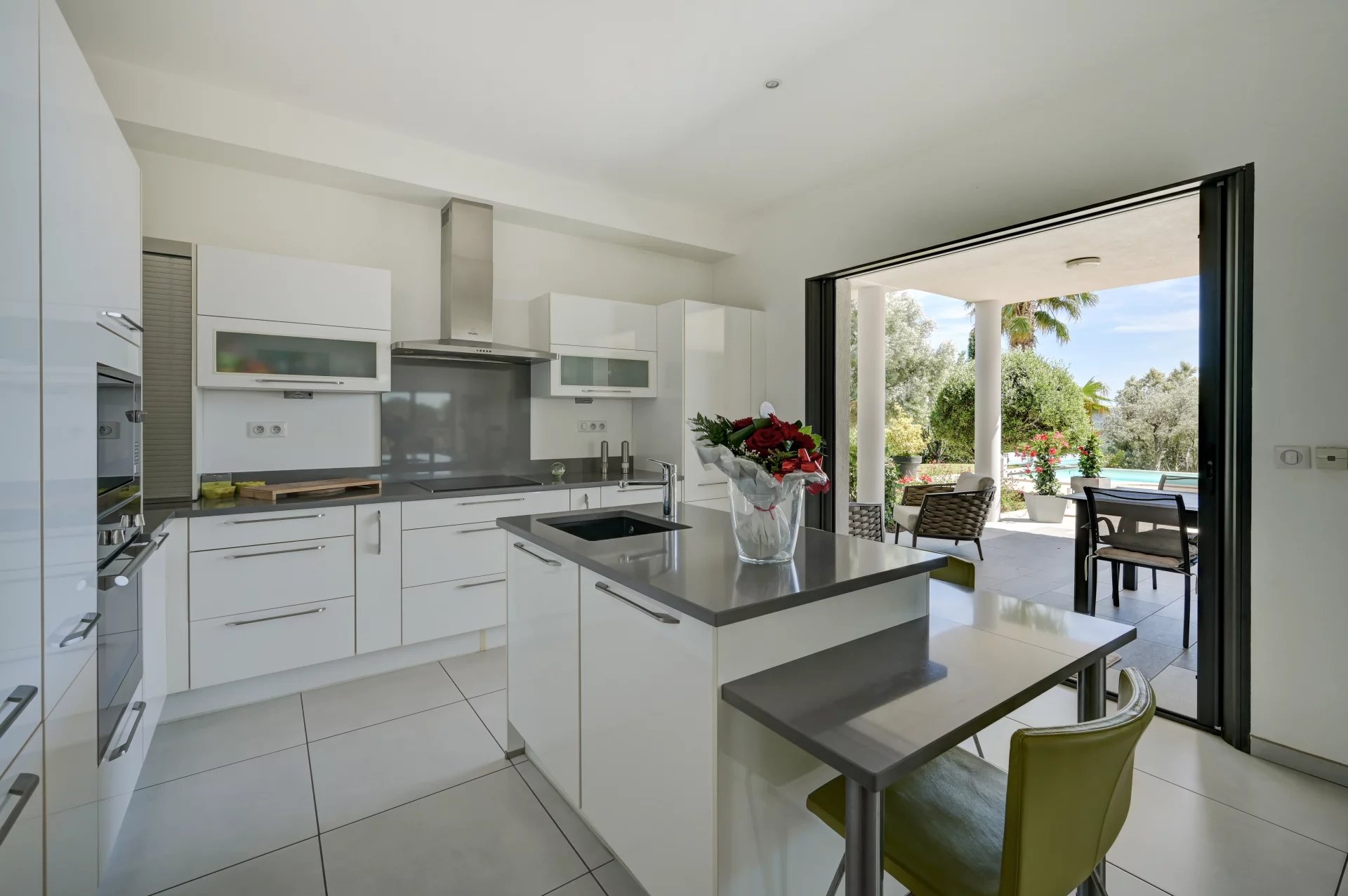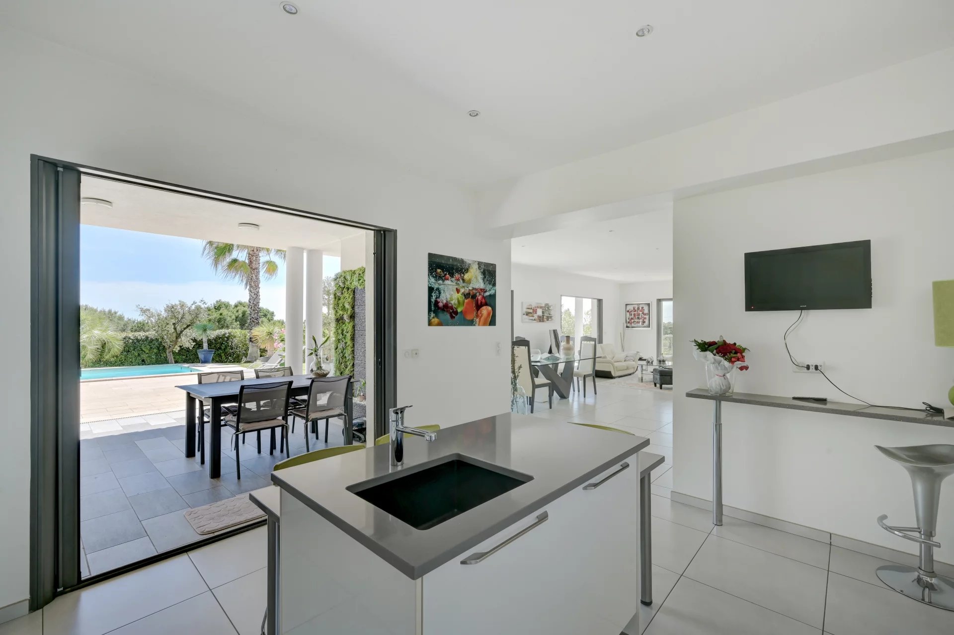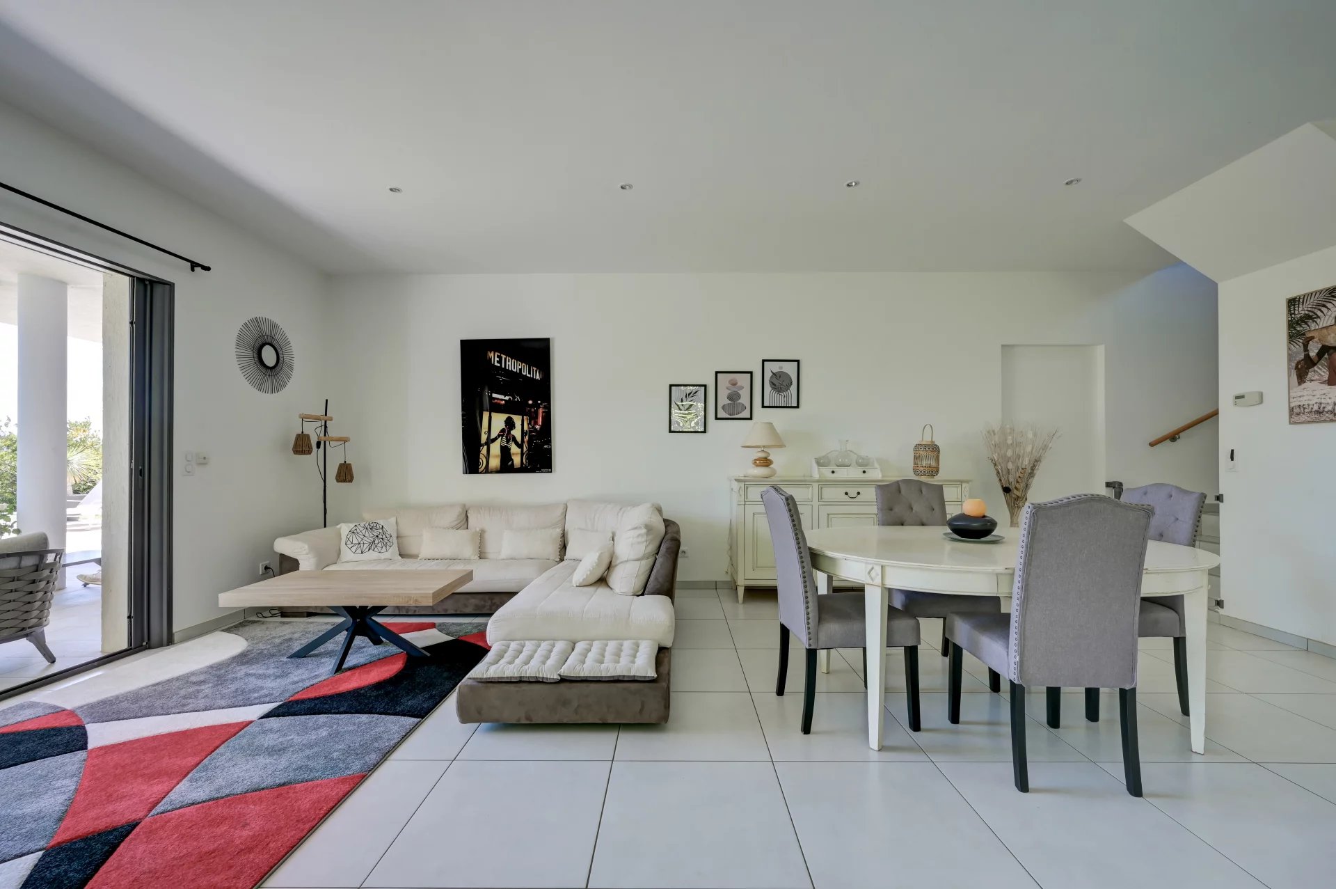 Immersa in 2.000 m² di terreno paesaggistico, questa casa di 280 m² progettata dall'architetto vanta un'architettura elegante, volumi generosi e caratteristiche di alta gamma. Su un unico livello, la villa principale offre un ampio e luminoso soggiorno, ampliato da grandi vetrate che si aprono sulla terrazza, sul giardino e sulla piscina. La cucina a pianta aperta completamente attrezzata si integra armoniosamente in questo spazio.