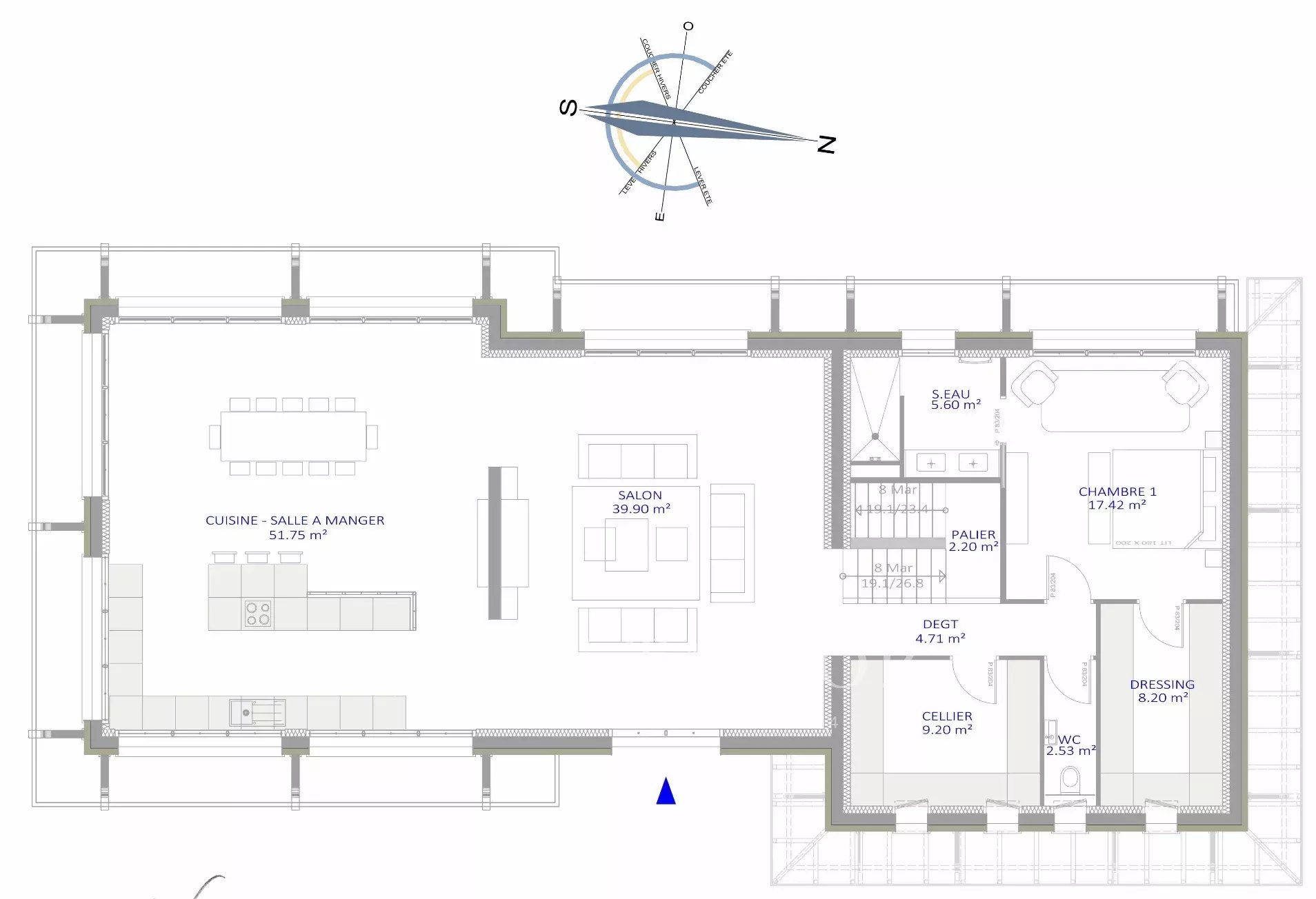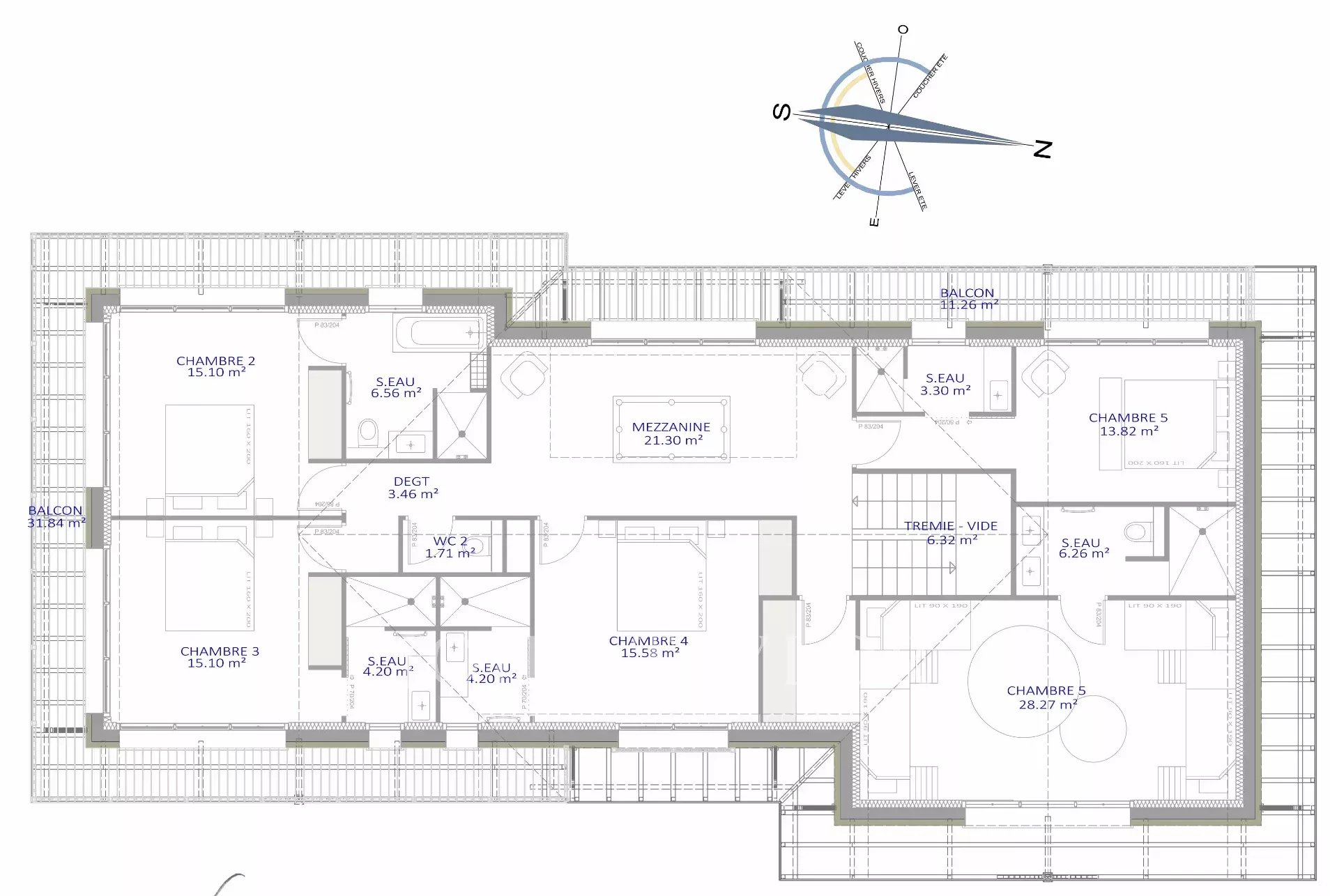 Questo sviluppo comprende 90 m2 di spazio abitativo e una suite al piano terra che si apre sul giardino. Al piano superiore si trovano 5 suite, di cui una di oltre 30 m2.