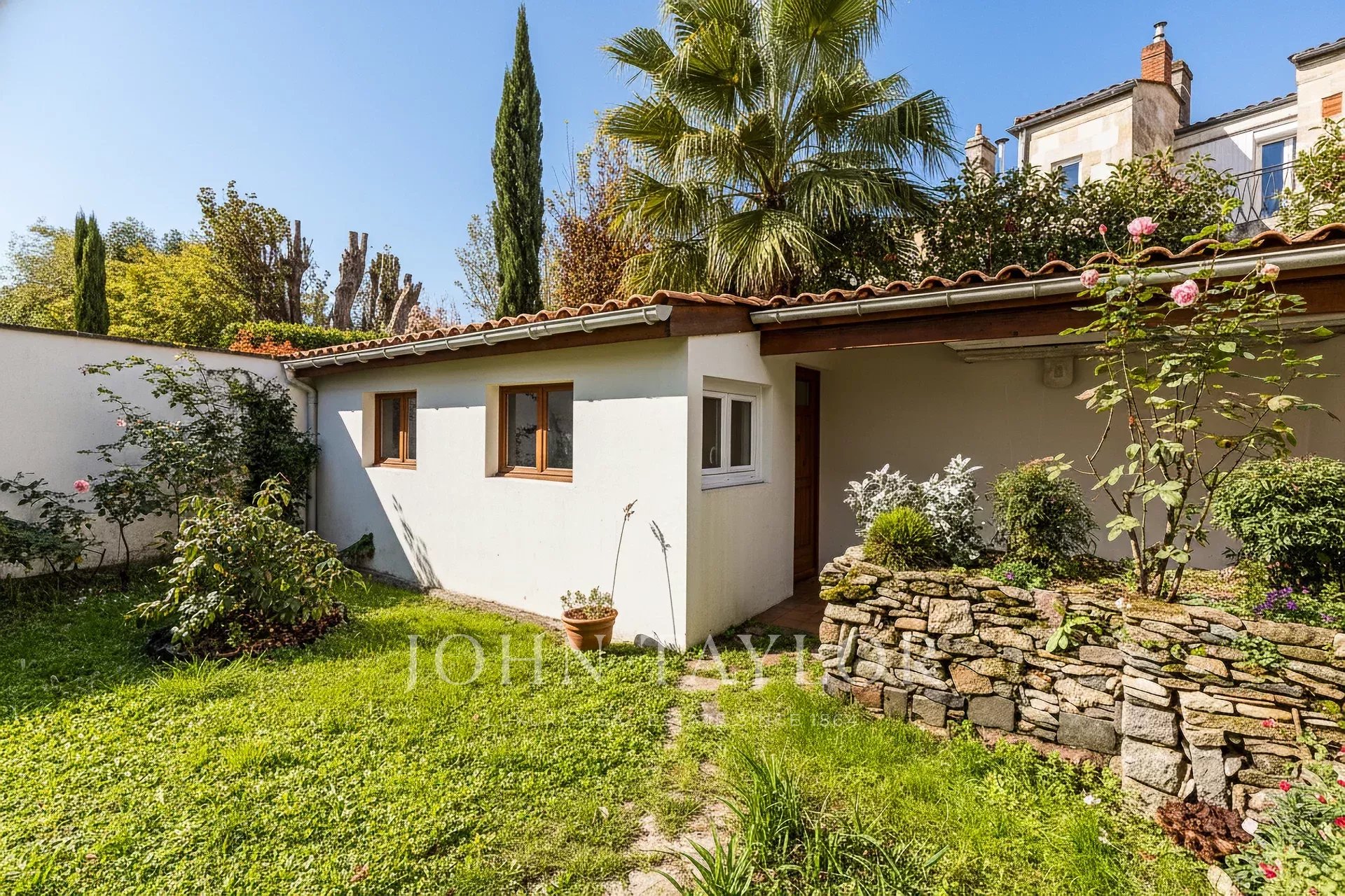 Il giardino soleggiato con piscina è molto ben curato. Beneficia di una terrazza ombreggiata con una nuova tenda da sole elettrica, un ambiente ideale per pranzare con la famiglia o con gli amici. In fondo al terreno, un annesso può essere trasformato a piacimento: cucina estiva, officina, grande cantina o pool house.