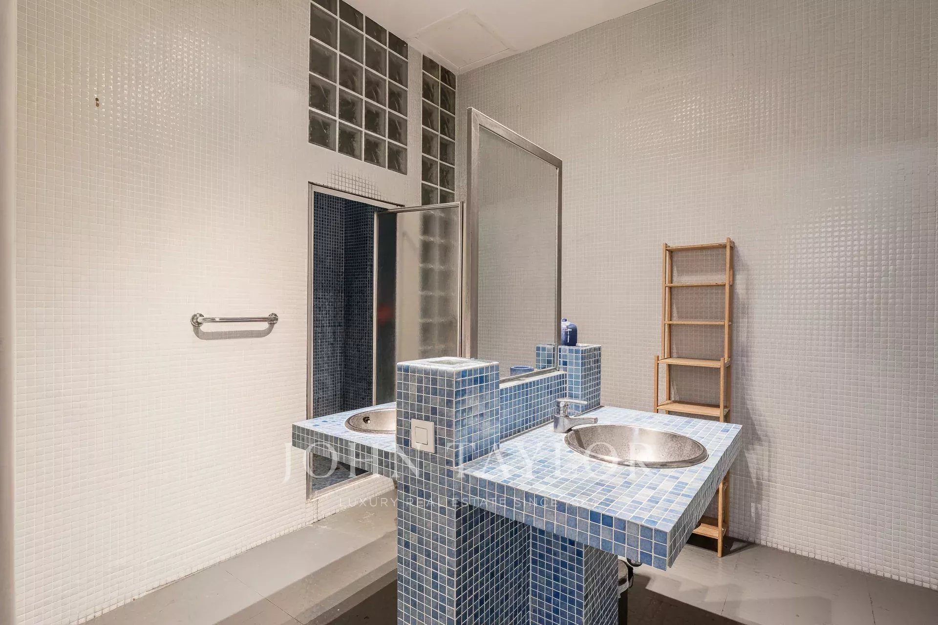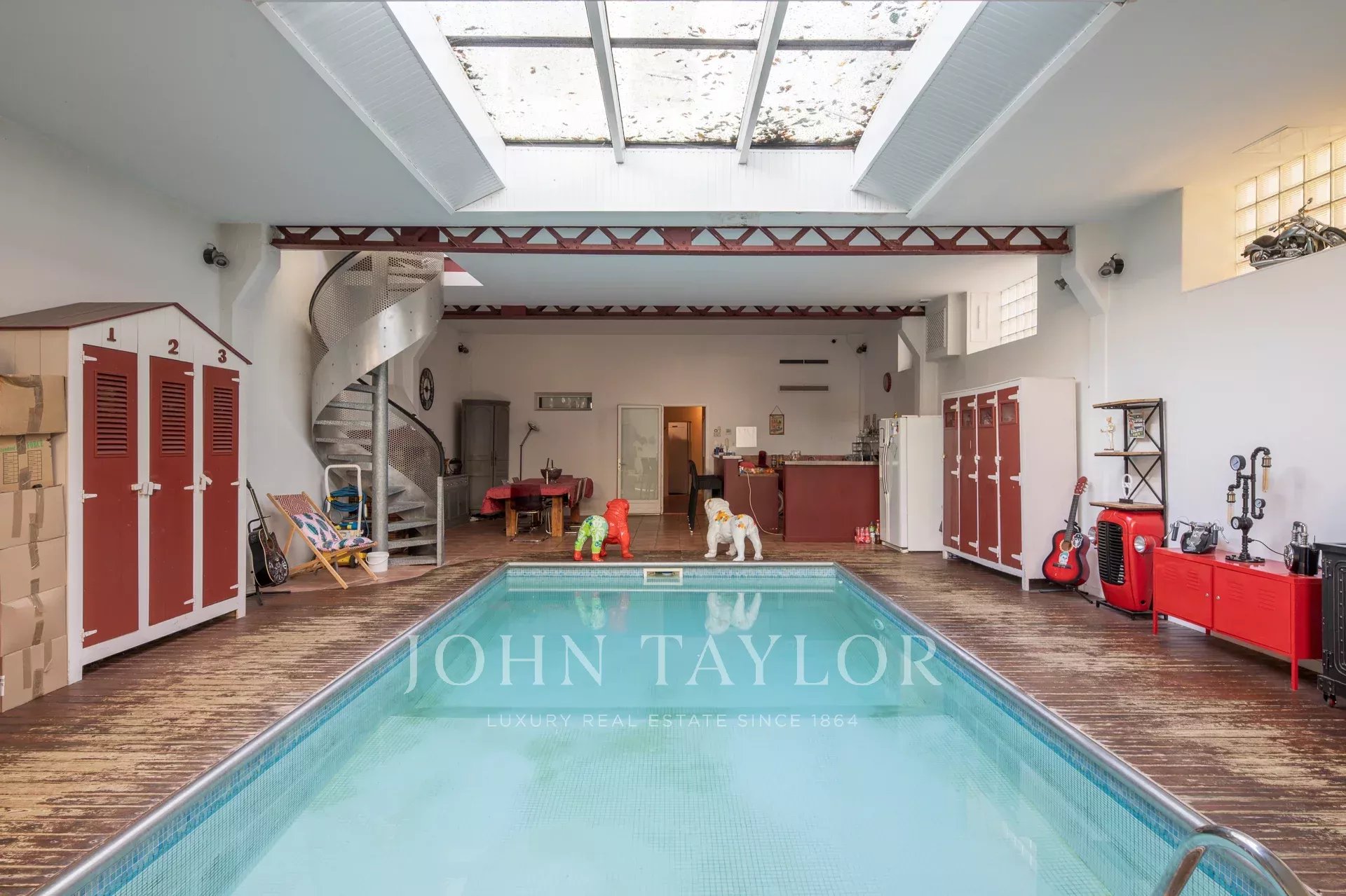 La caratteristica piscina interna è il punto focale della casa, situata in un ambiente luminoso grazie a grandi finestre scorrevoli. L'area intorno alla piscina è perfetta per il relax o per intrattenere gli ospiti, risultando in un mix ideale tra lusso e praticità. Gli elementi di design moderni si integrano con dettagli unici, conferendo al luogo un'atmosfera inconfondibile.