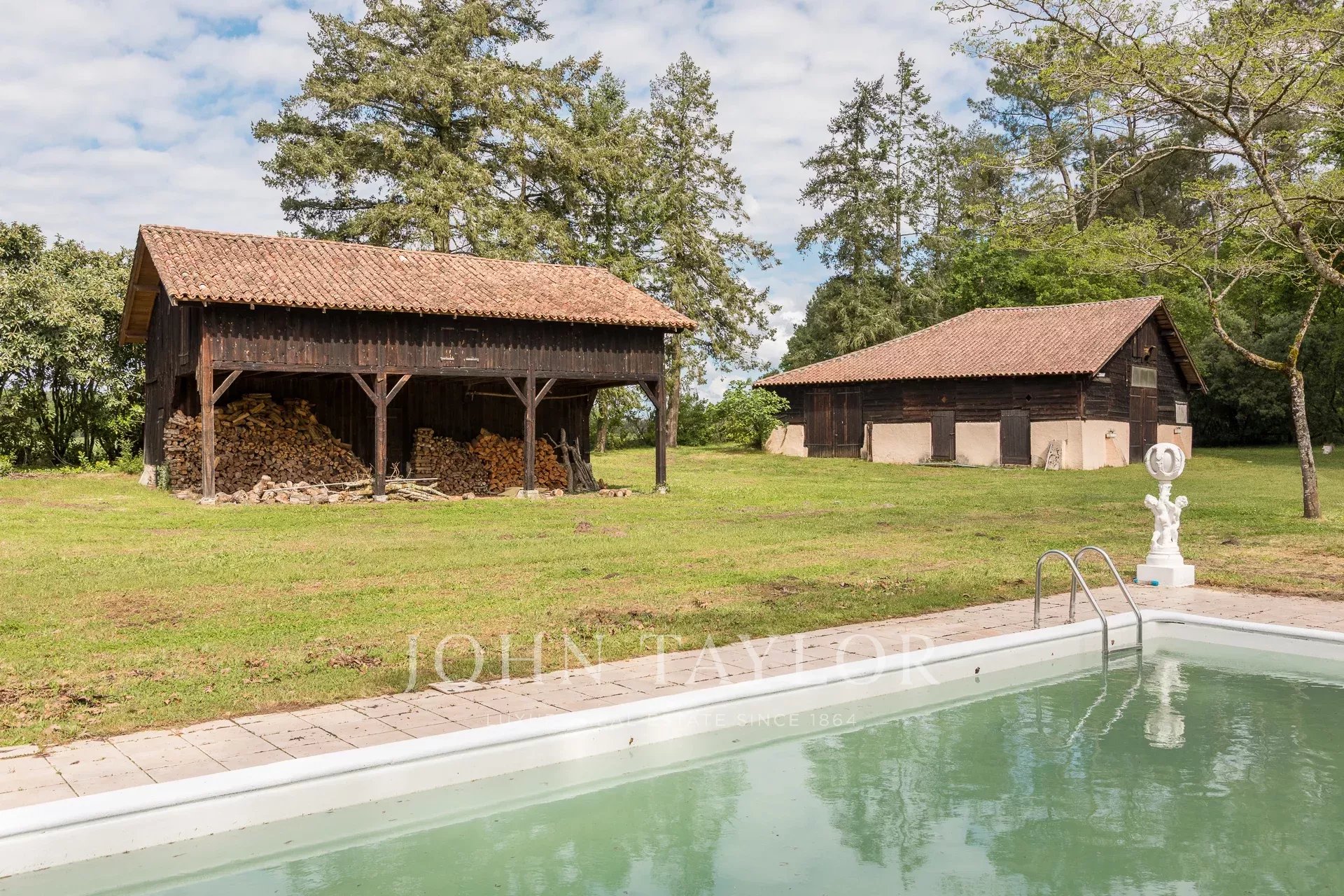 Immersa in oltre 3,5 ettari di terreno boscoso attraversato da un ruscello, comprende un'antica casa colonica tipica della regione delle Landes, con una casa principale di oltre 200 m², due vasti fienili di 140 m² e 180 m², un forno per il pane di 22 m² e un annesso di 16 m².