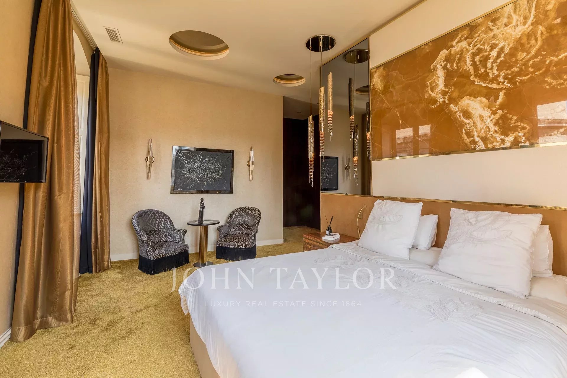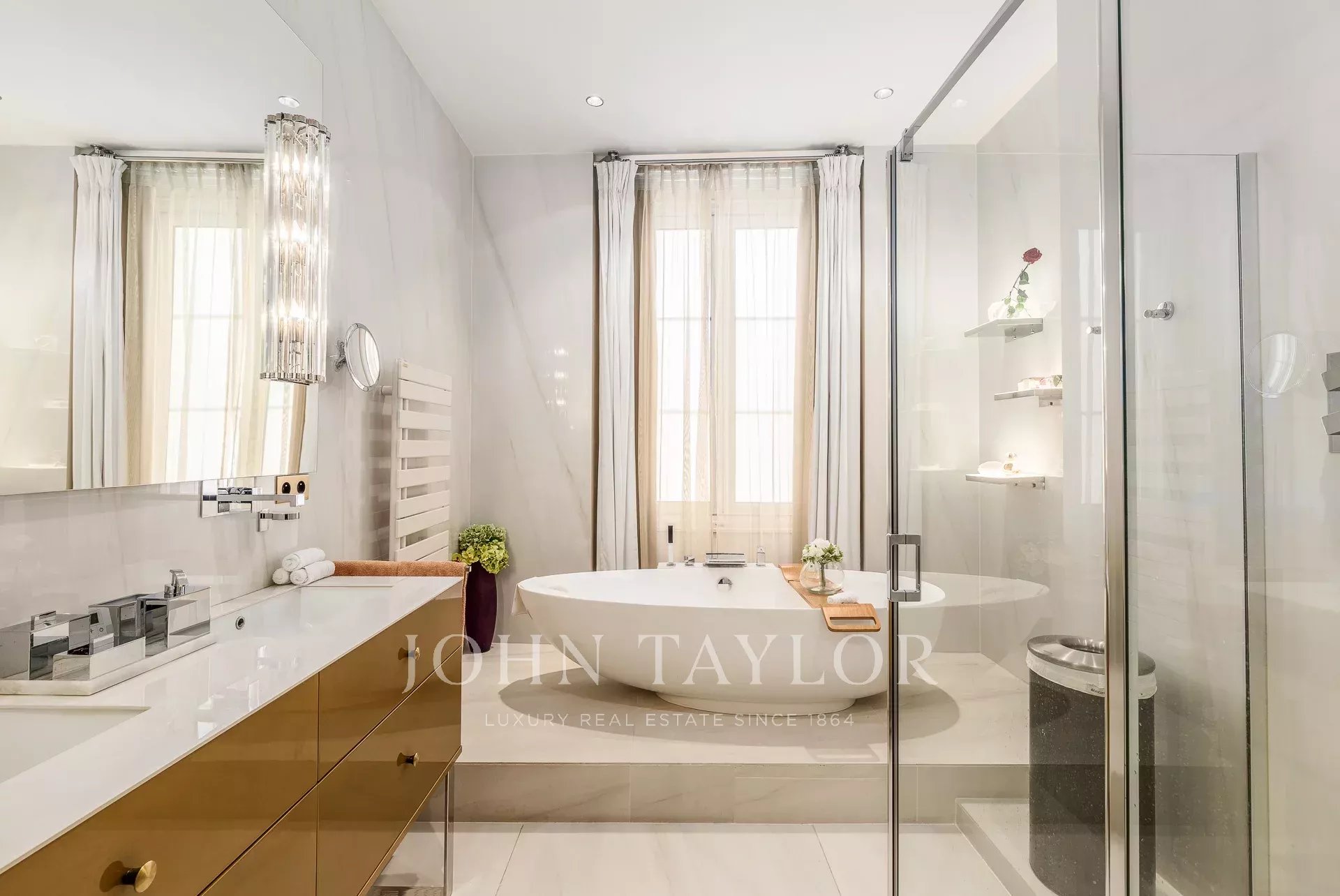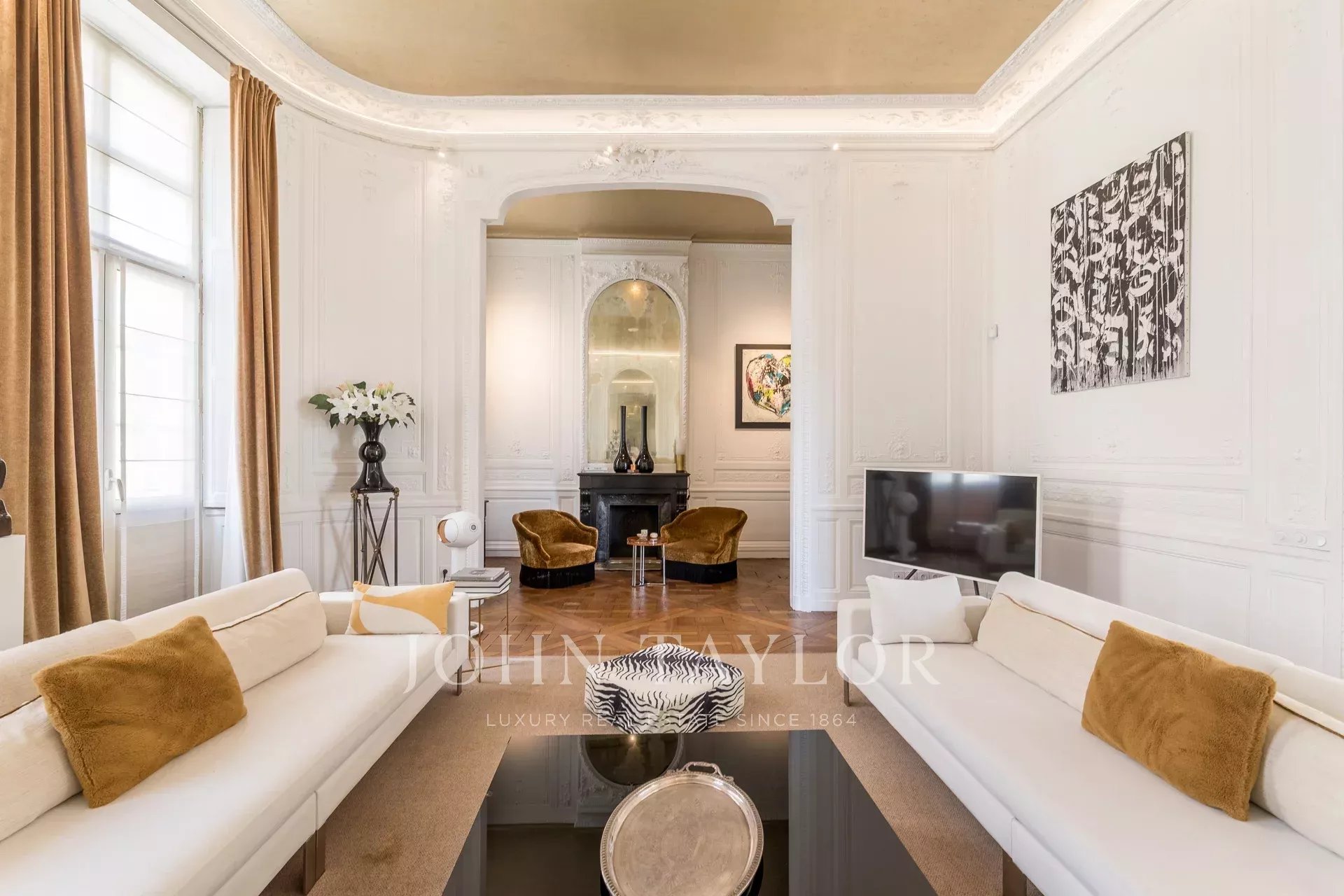 Al piano superiore, quattro camere da letto, tra cui una suite padronale con vista sul monumento dei Girondini, completano questa eccezionale proprietà.