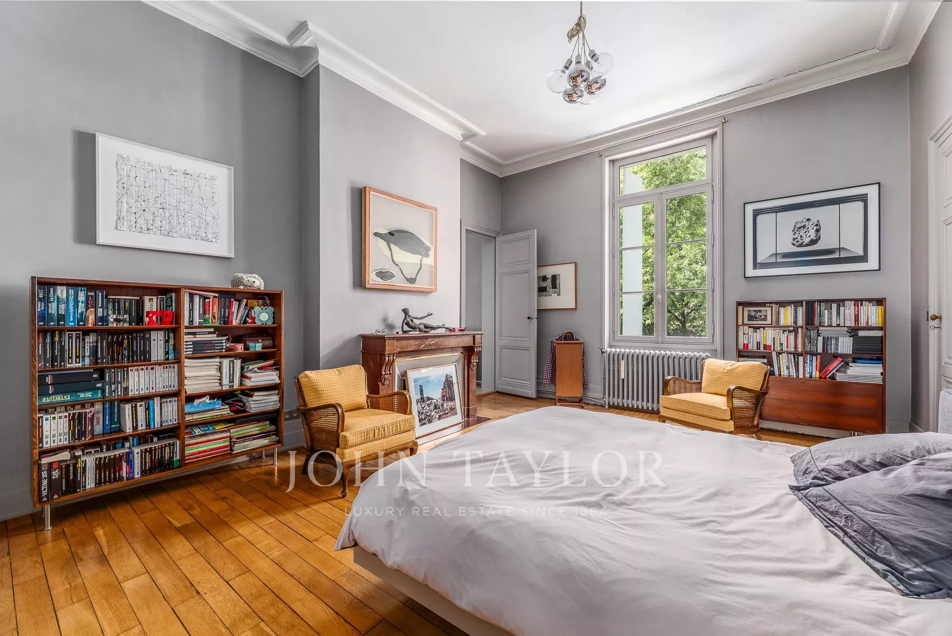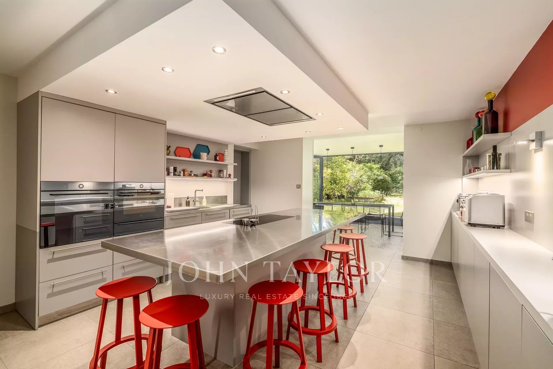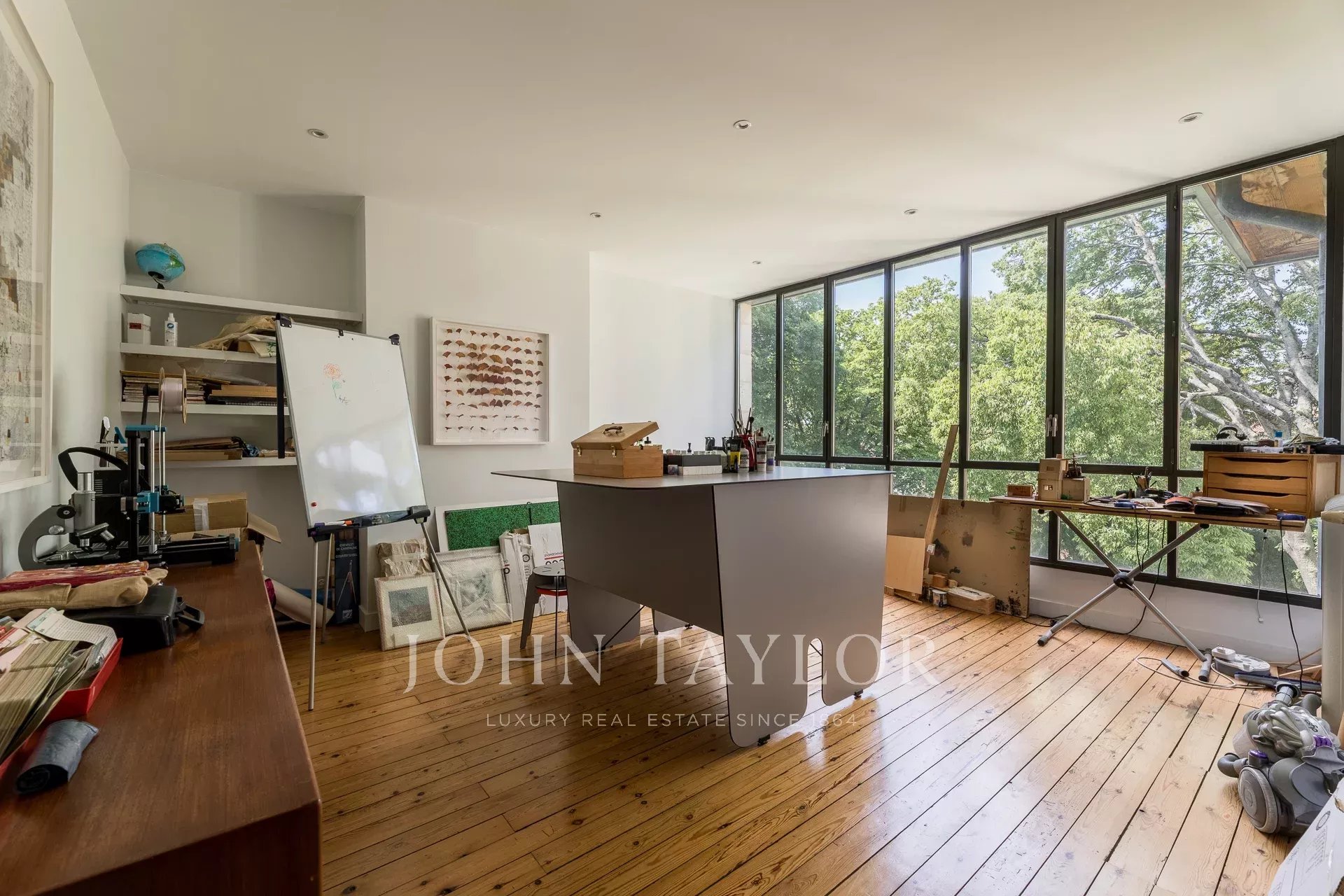 Al secondo piano, altre tre camere da letto e un laboratorio luminoso grazie al tetto in vetro che si affaccia sul giardino completano questa eccezionale proprietà.