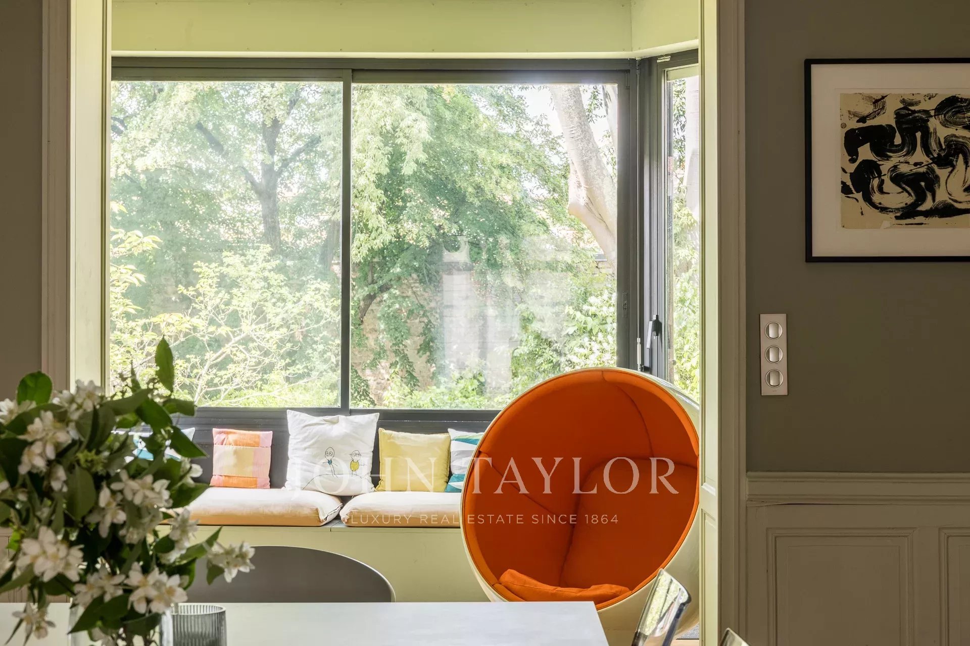 Appena entrati, un incantevole giardino di accoglienza dà il tono giusto. Al livello del giardino, un'ampia e luminosa cucina da pranzo si apre su un giardino alberato di 250 m², un'oasi di pace nel cuore della città.