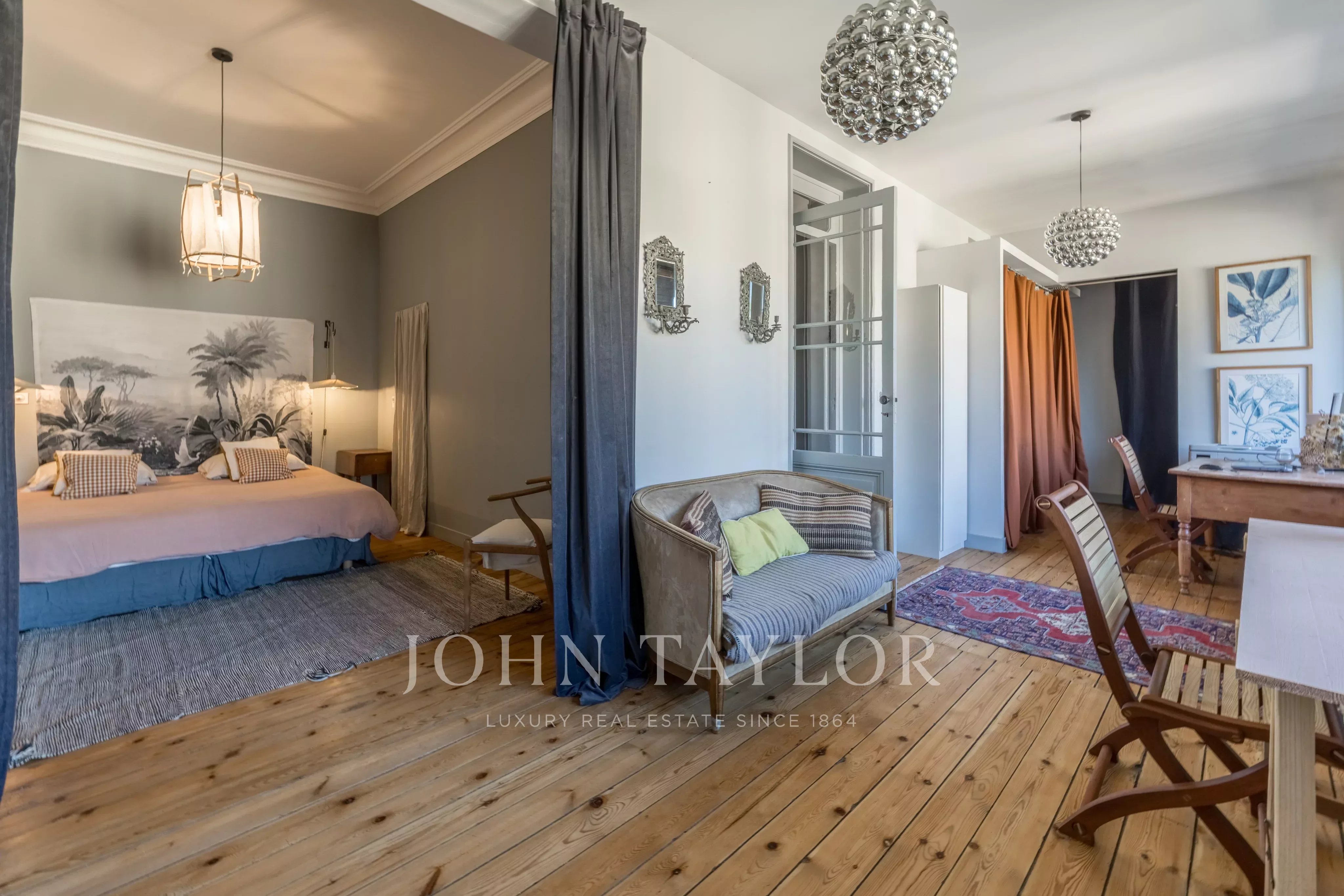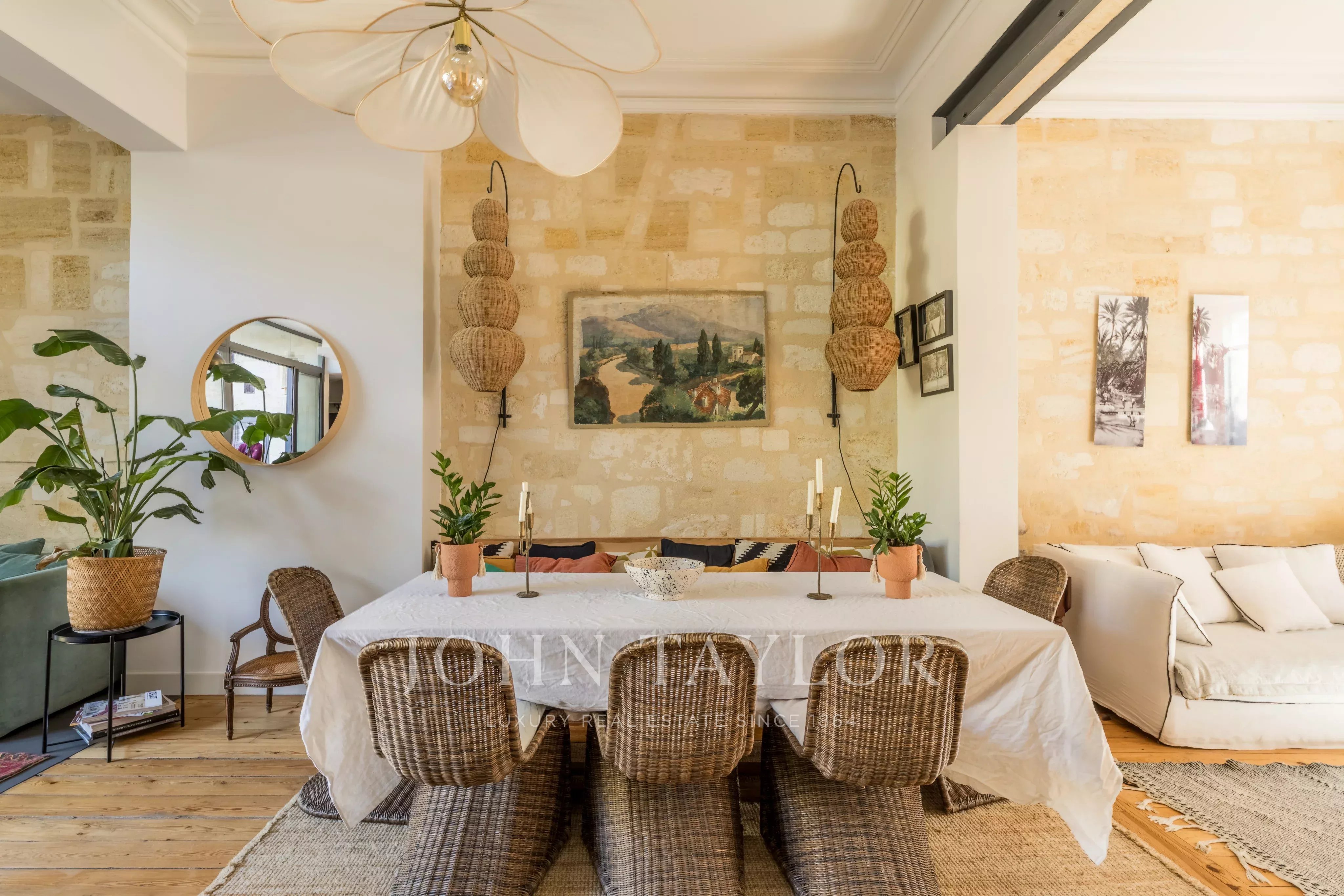 Molta eleganza e autenticità traspaiono da questa casa che ha saputo preservare tutto il fascino del passato: parquet, modanature, camini, piastrelle in cemento, pareti in pietra, soffitti alti e boiserie compongono un insieme straordinario.