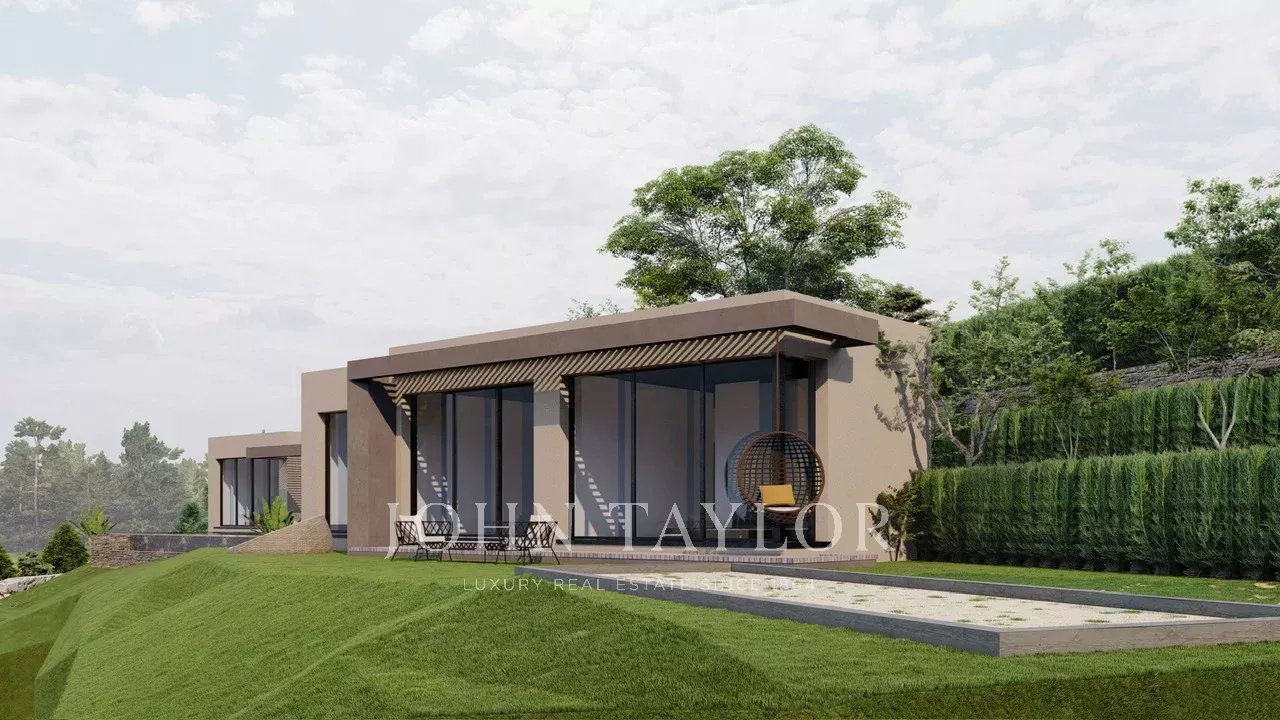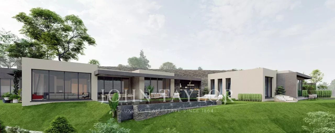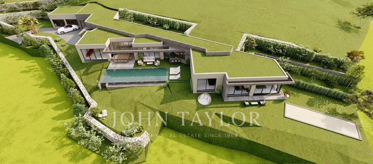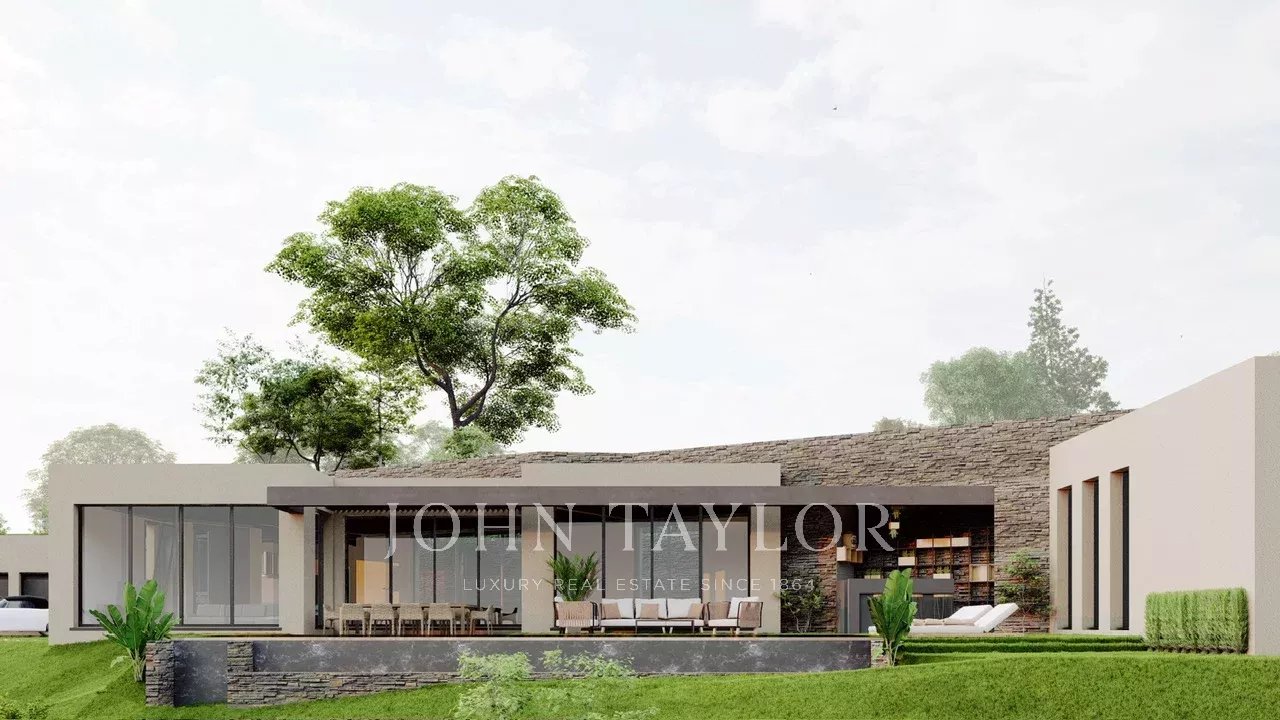 Concessione edilizia per una villa contemporanea a un piano con una superficie totale di 477 m2, piscina e garage per 3 auto annesso alla villa.