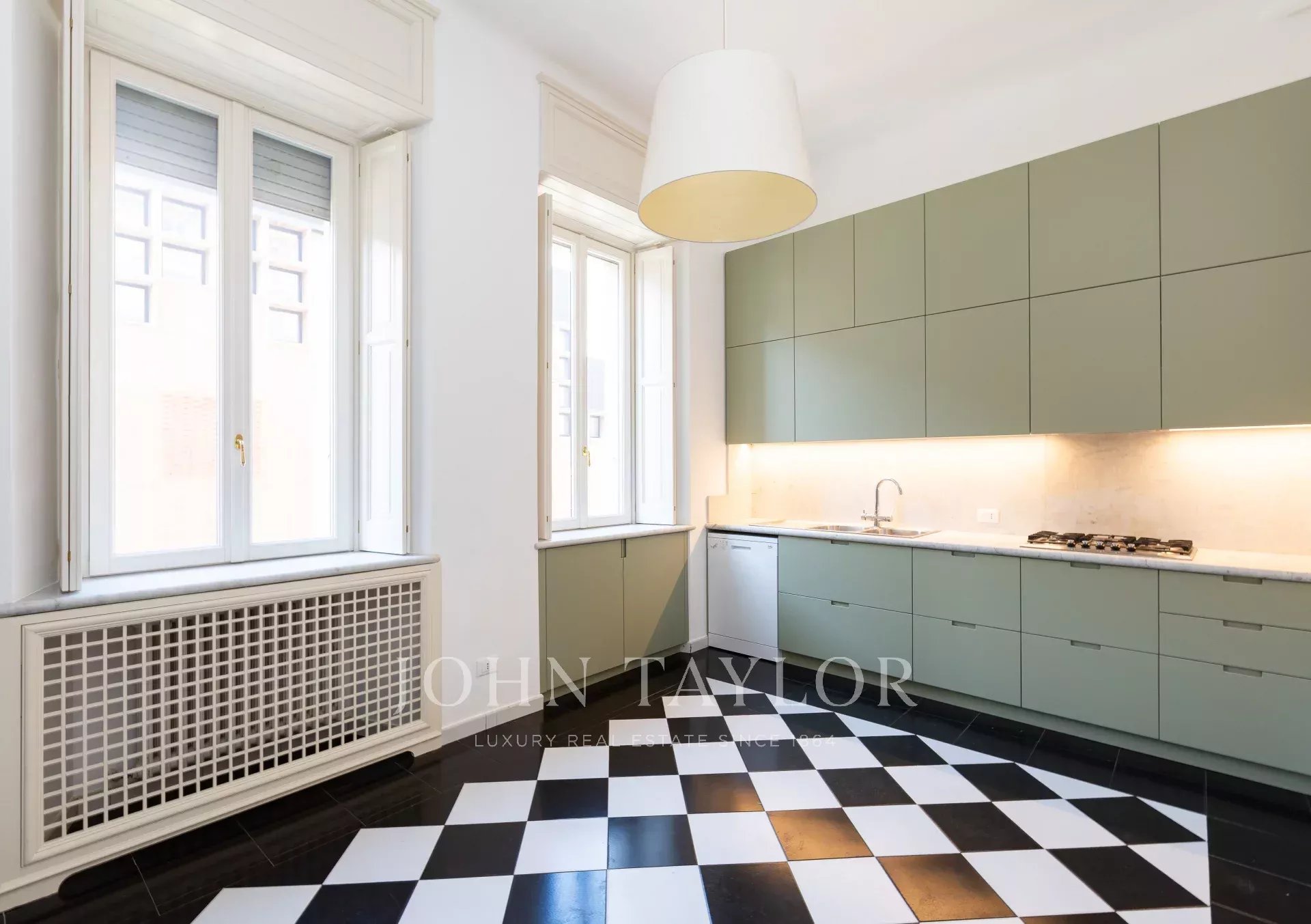 In an exclusive context of great historical value, residence with full day concierge, splendid apartment of great charm of approx. 185 sqm, very bright and quiet with splendid high ceilings, home composed of large entrance hall, double living room, dining room, large kitchen, 3 bedrooms, large ironing room and 3 bathrooms. Balcony. €5,900,00. INFORMATION IN OFFICE